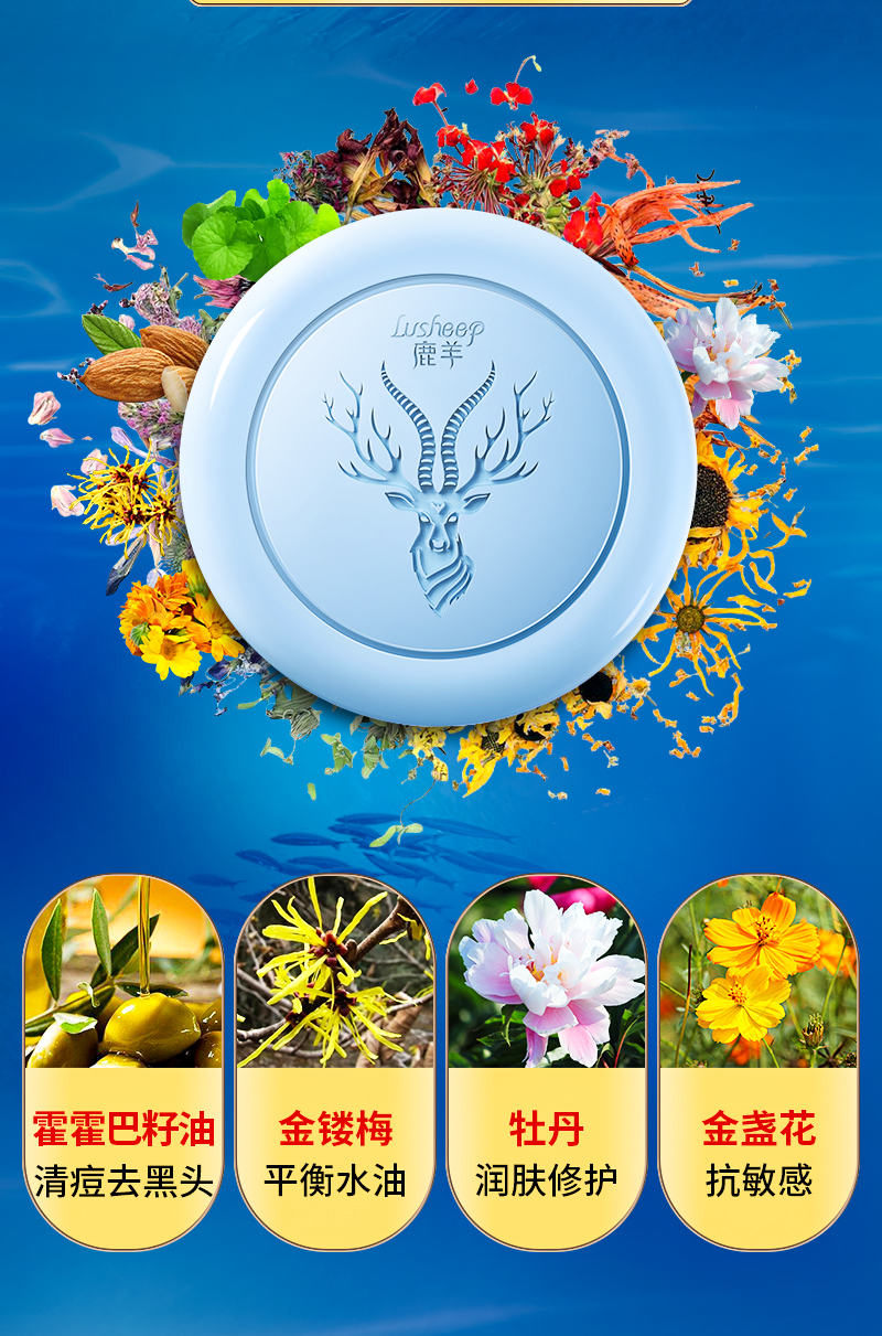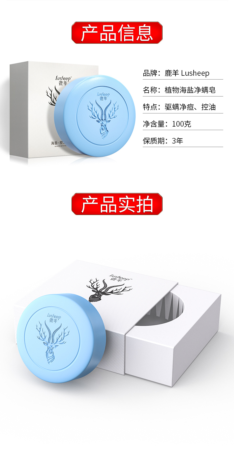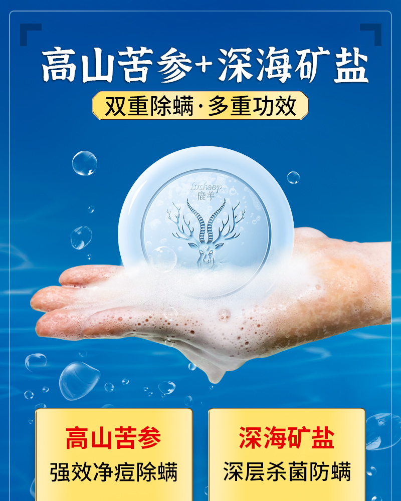 【鹿羊lusheep 海盐控油净螨皂】高山苦参+深海矿盐 双重除螨 专利配方 净螨清痘 清爽控油 温和0添加 沐浴洗脸洗手一块搞定 包装内送起泡网 100g/盒