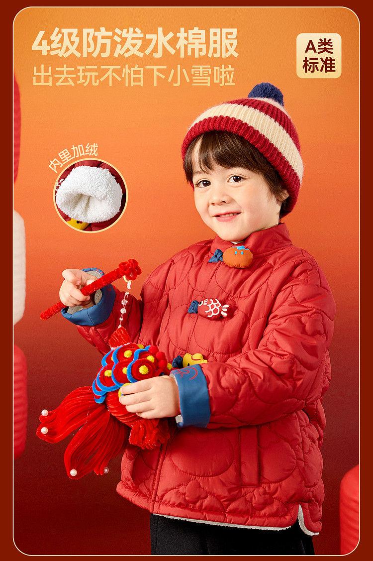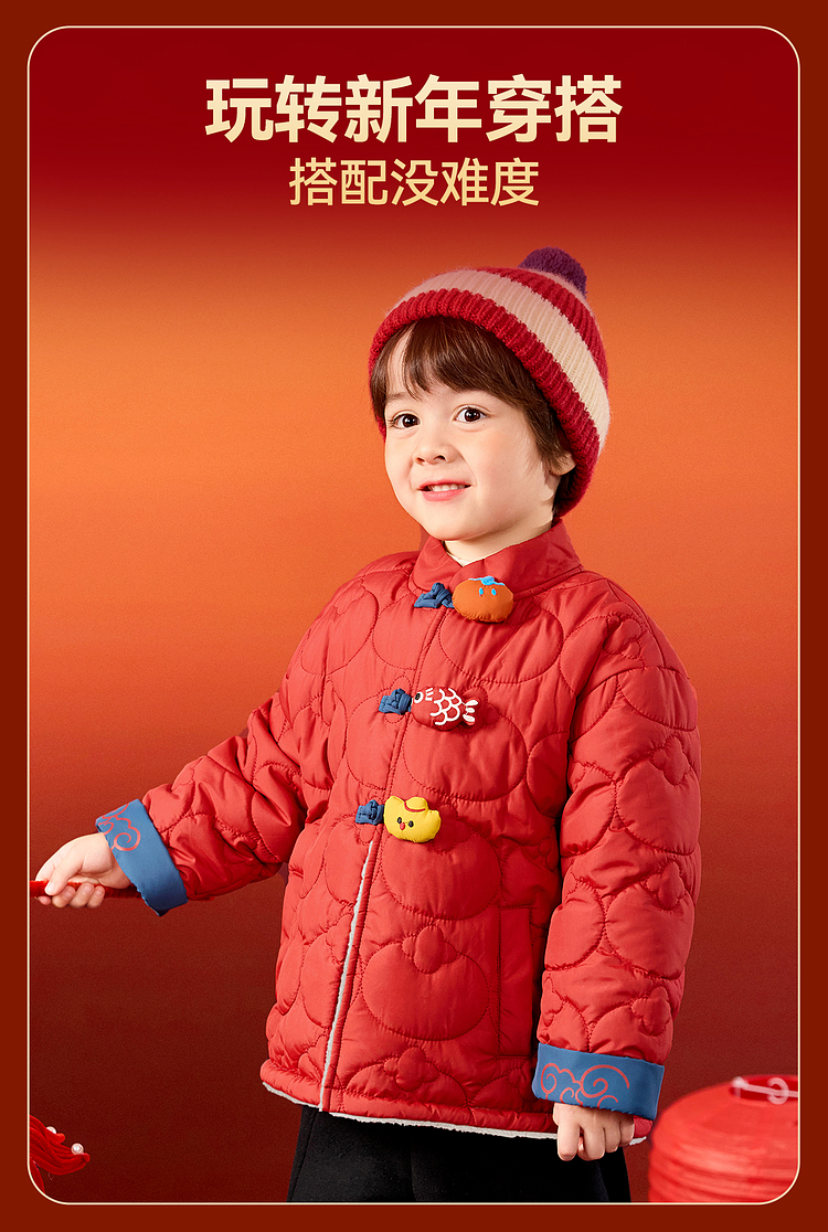 [防泼水]嘟嘟家宝宝唐装棉服冬季儿童拜年服男童新年棉袄喜庆冬装