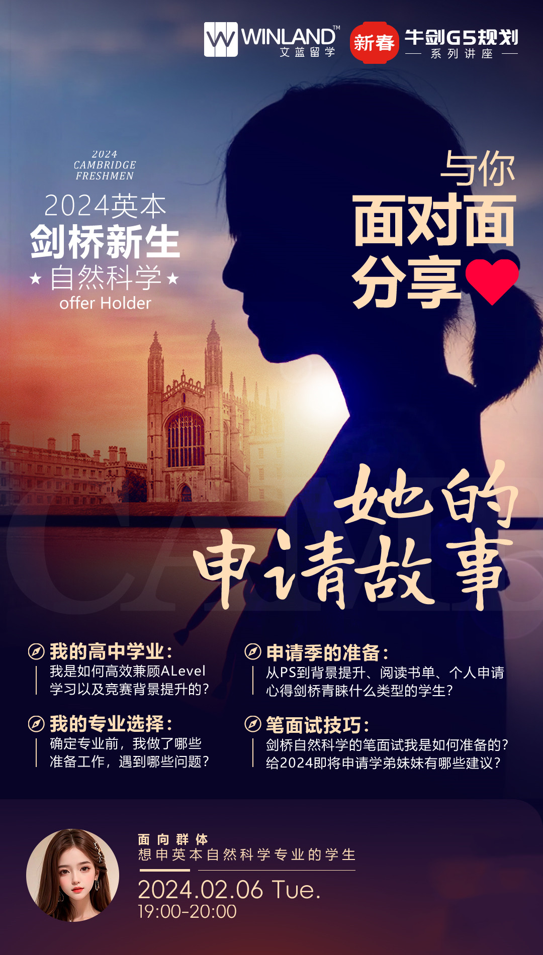 【新春牛剑G5规划系列讲座】 2024英本剑桥新生自然科学 offer Holder , 与你面对面分享她的申请故事 !