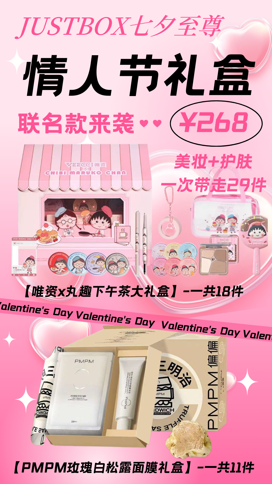 Justbox七夕礼盒(veecci唯资×樱桃小丸子丸趣礼盒+pmpm白松露礼盒)