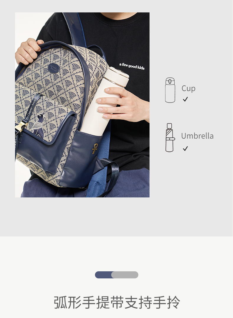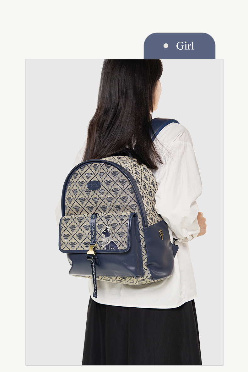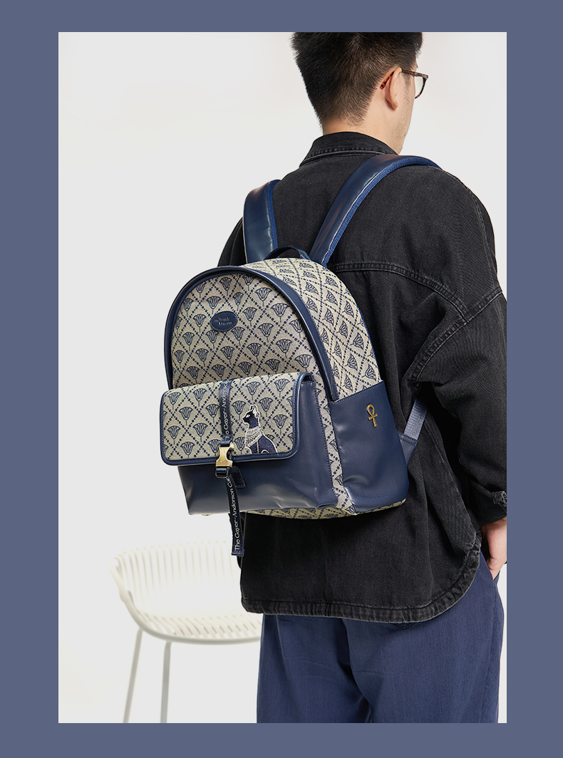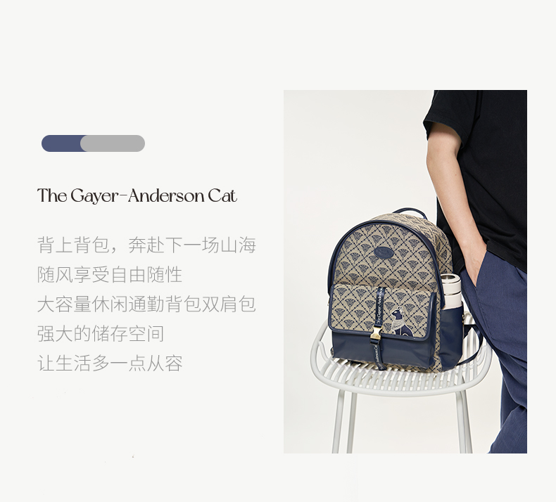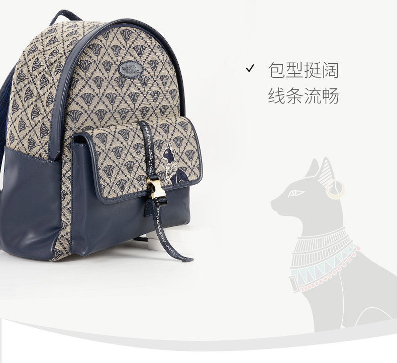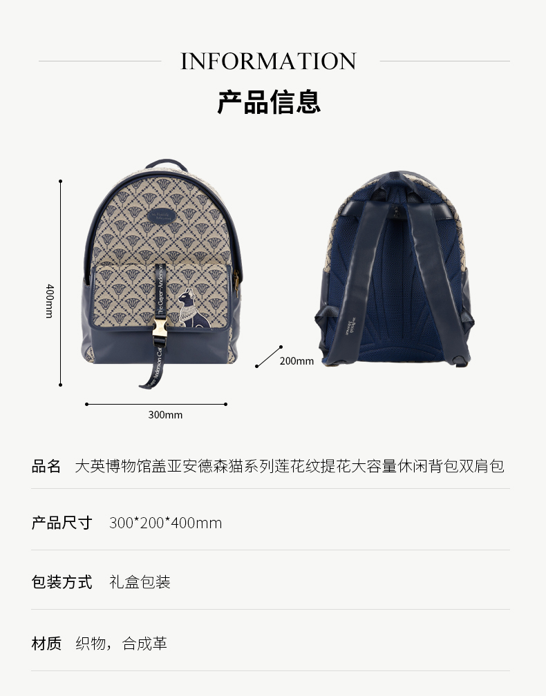 大英博物馆盖亚安德森猫系列莲花纹提花大容量休闲背包双肩包