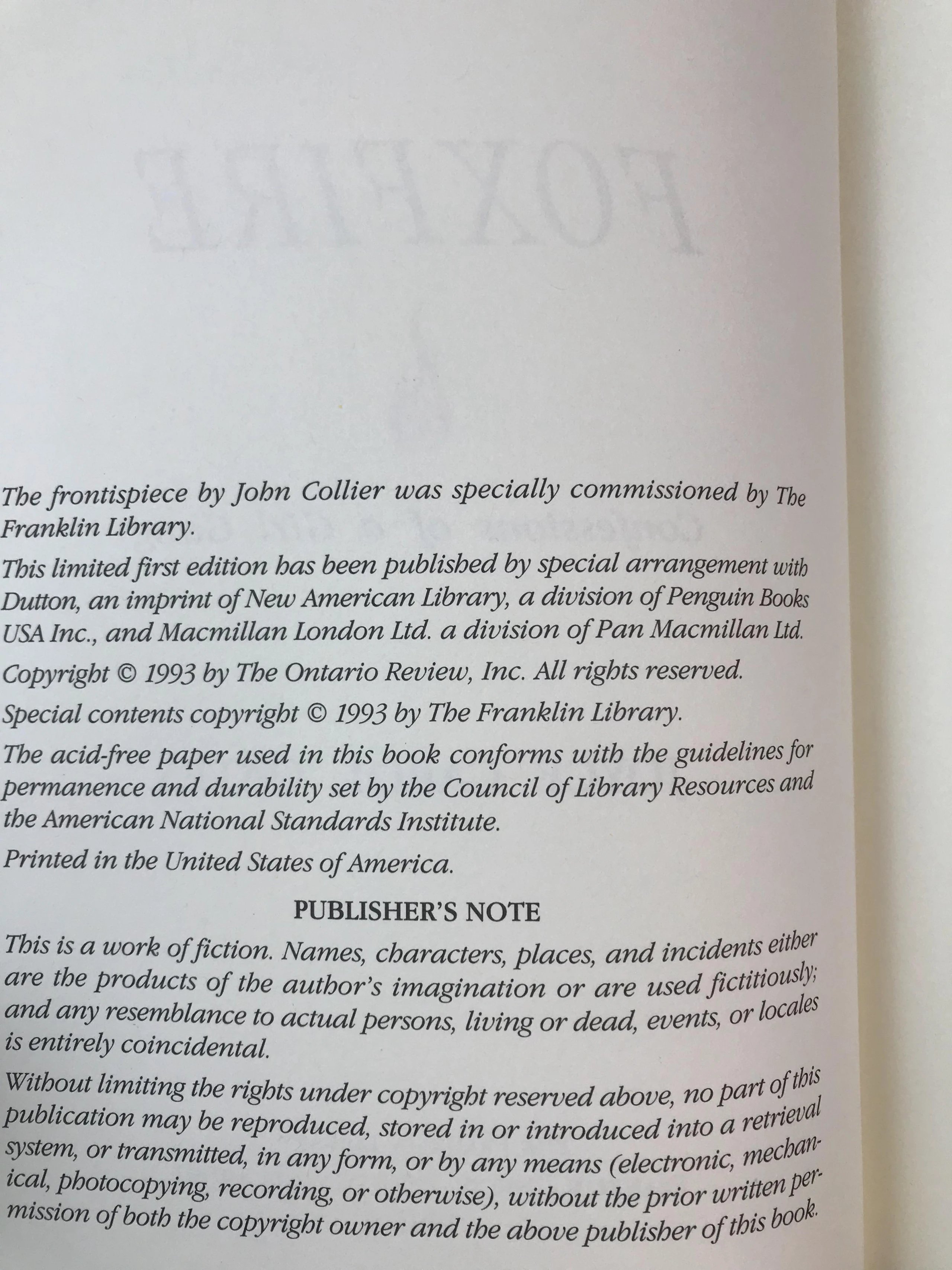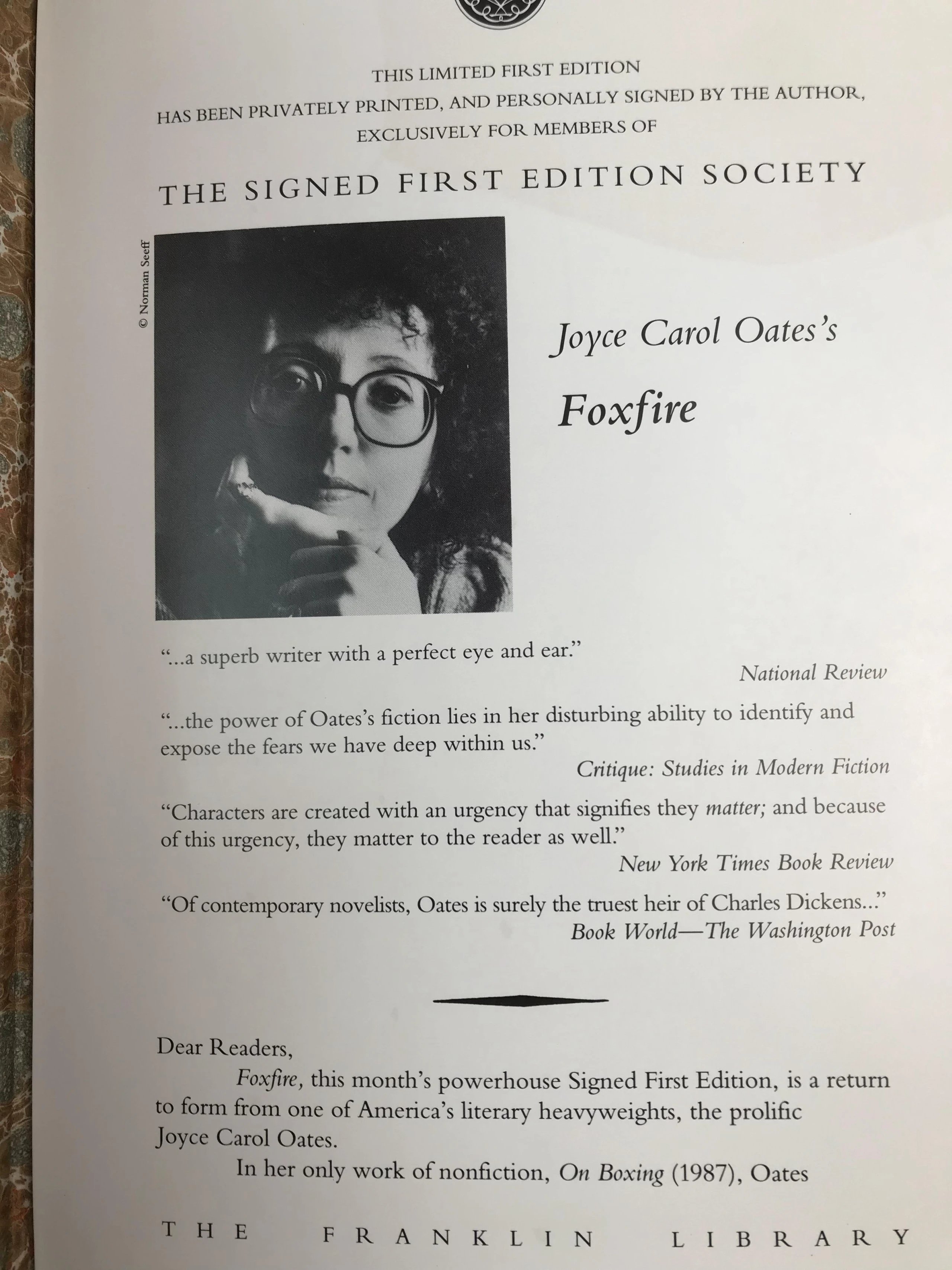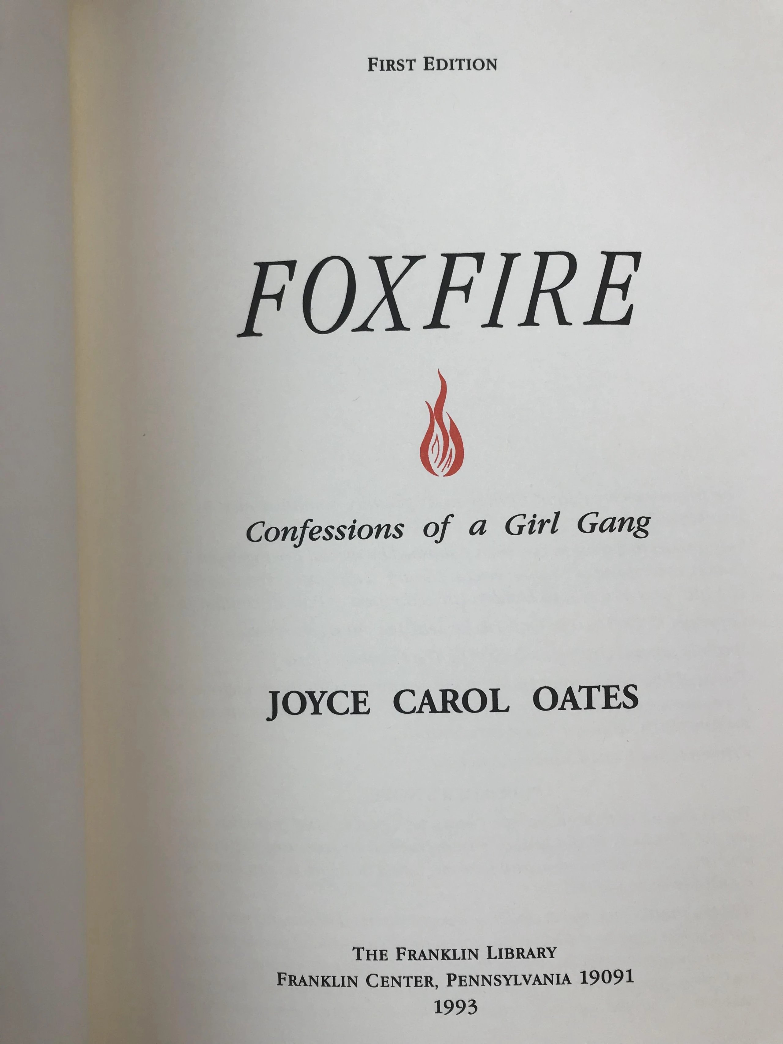 签名首版!乔伊斯・卡罗尔・欧茨《狐火:少女帮派的自白》 富兰克林图书馆豪华皮装本