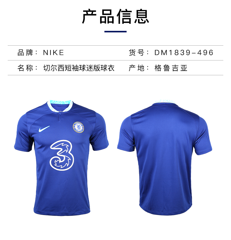 NIKE/耐克 CFC M NK DF STAD JSY SS HM 22-23赛季切尔西主场短袖球衣球迷版DM1839496