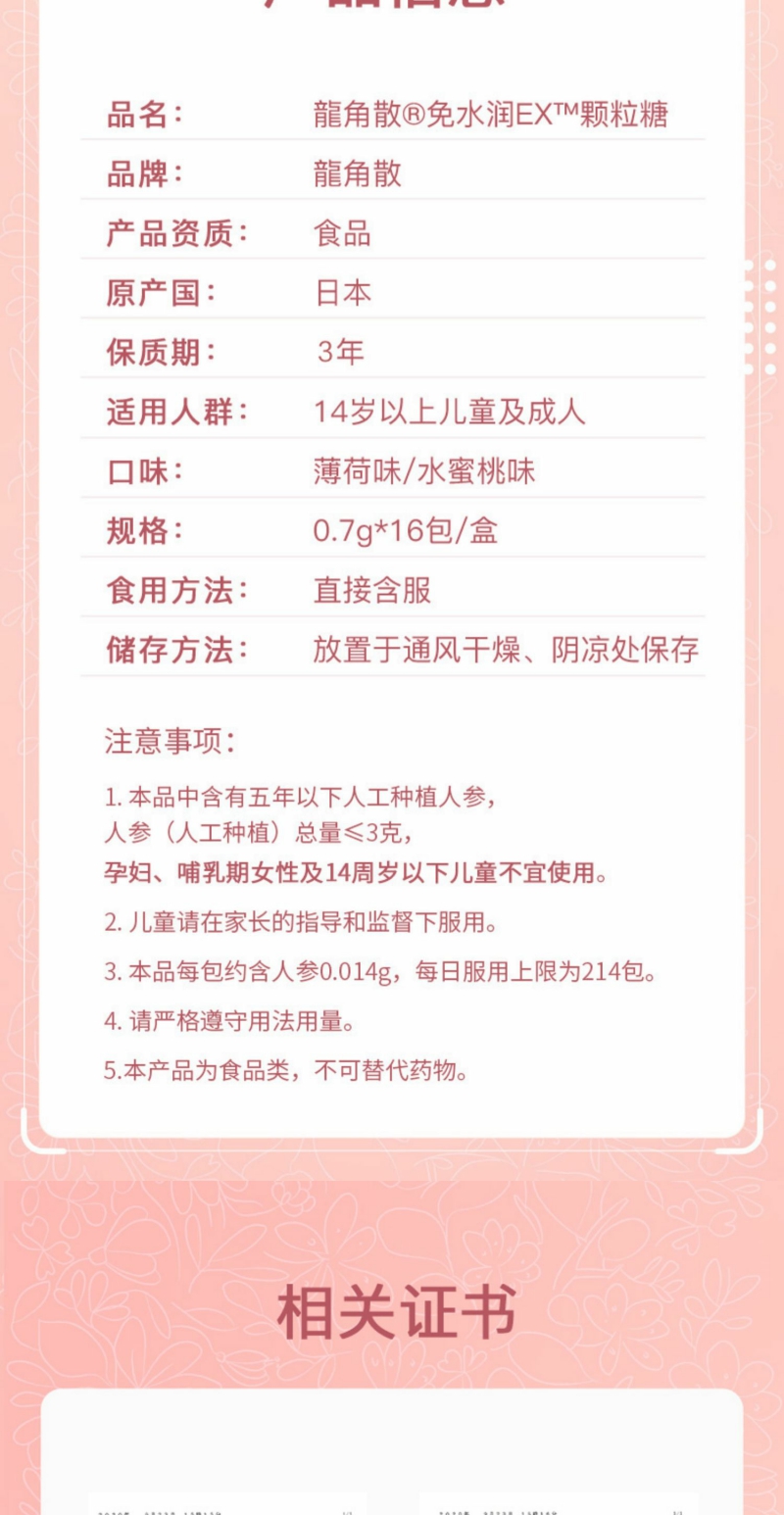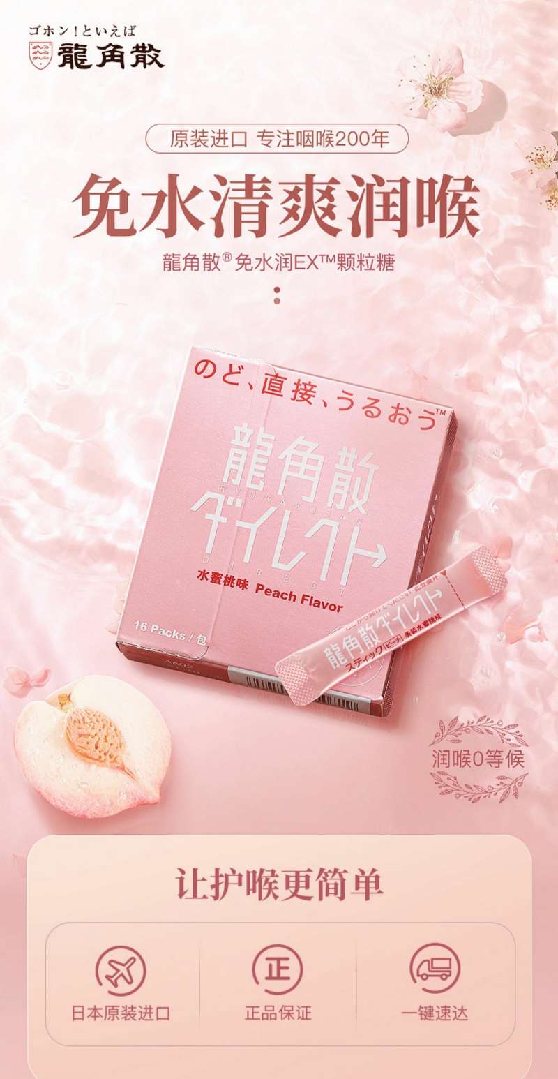【YZ】龙角散日本进口护嗓免水润喉糖颗粒薄荷味+水蜜桃味16包/盒装低糖