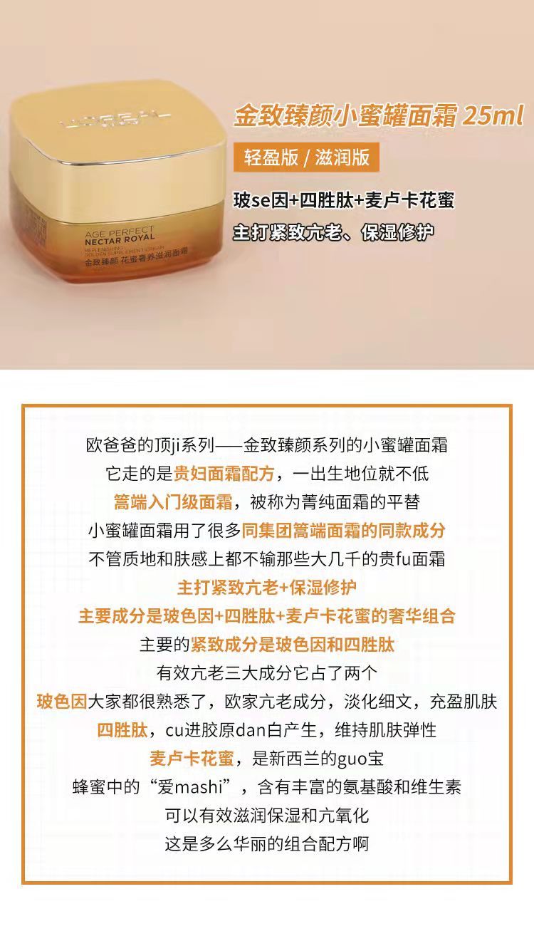 【爆款超低价预售 急单慎拍】欧莱雅小蜜罐金致臻颜花蜜奢养面霜干皮油皮补水抗皱紧致淡纹抗老