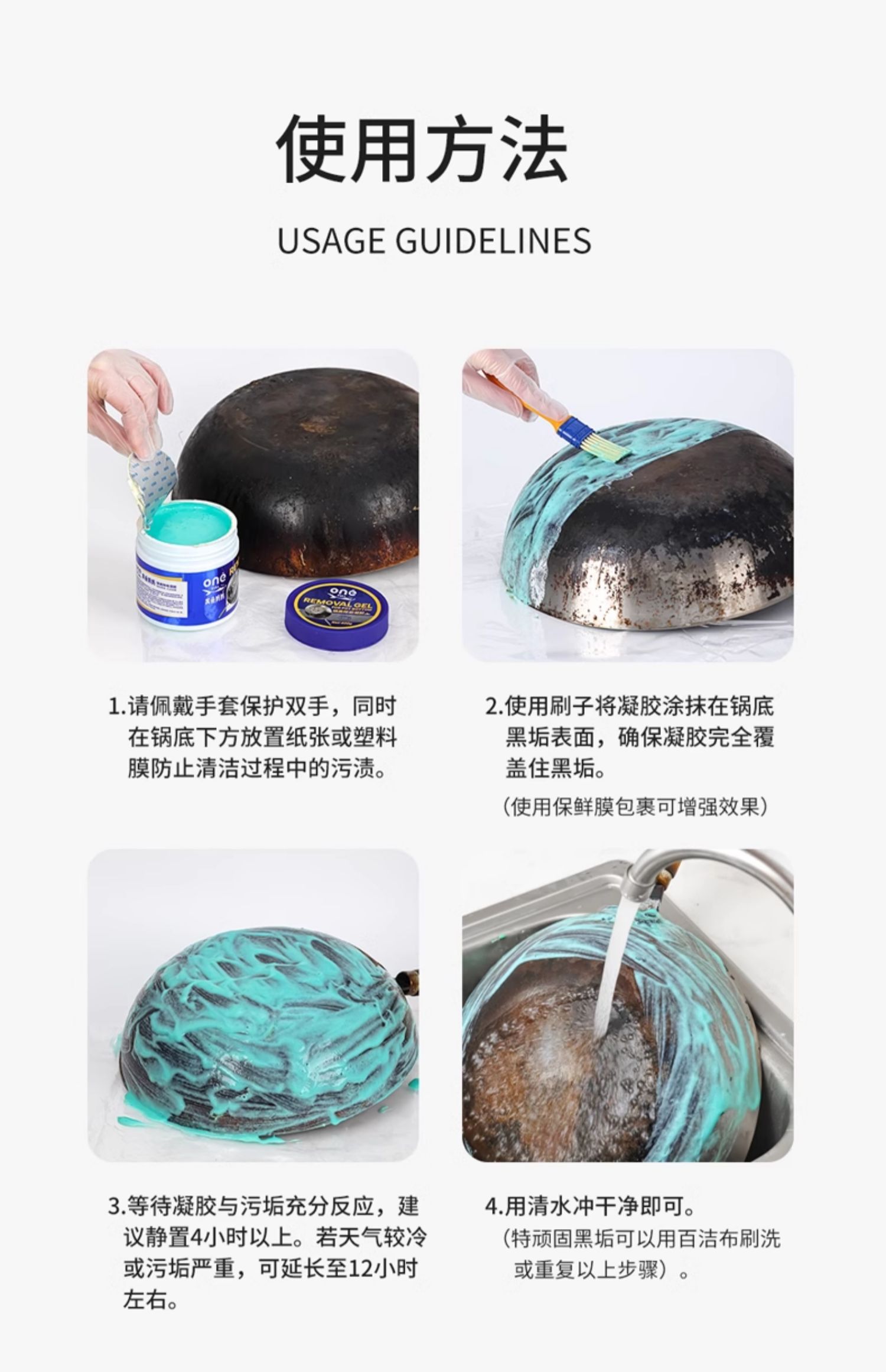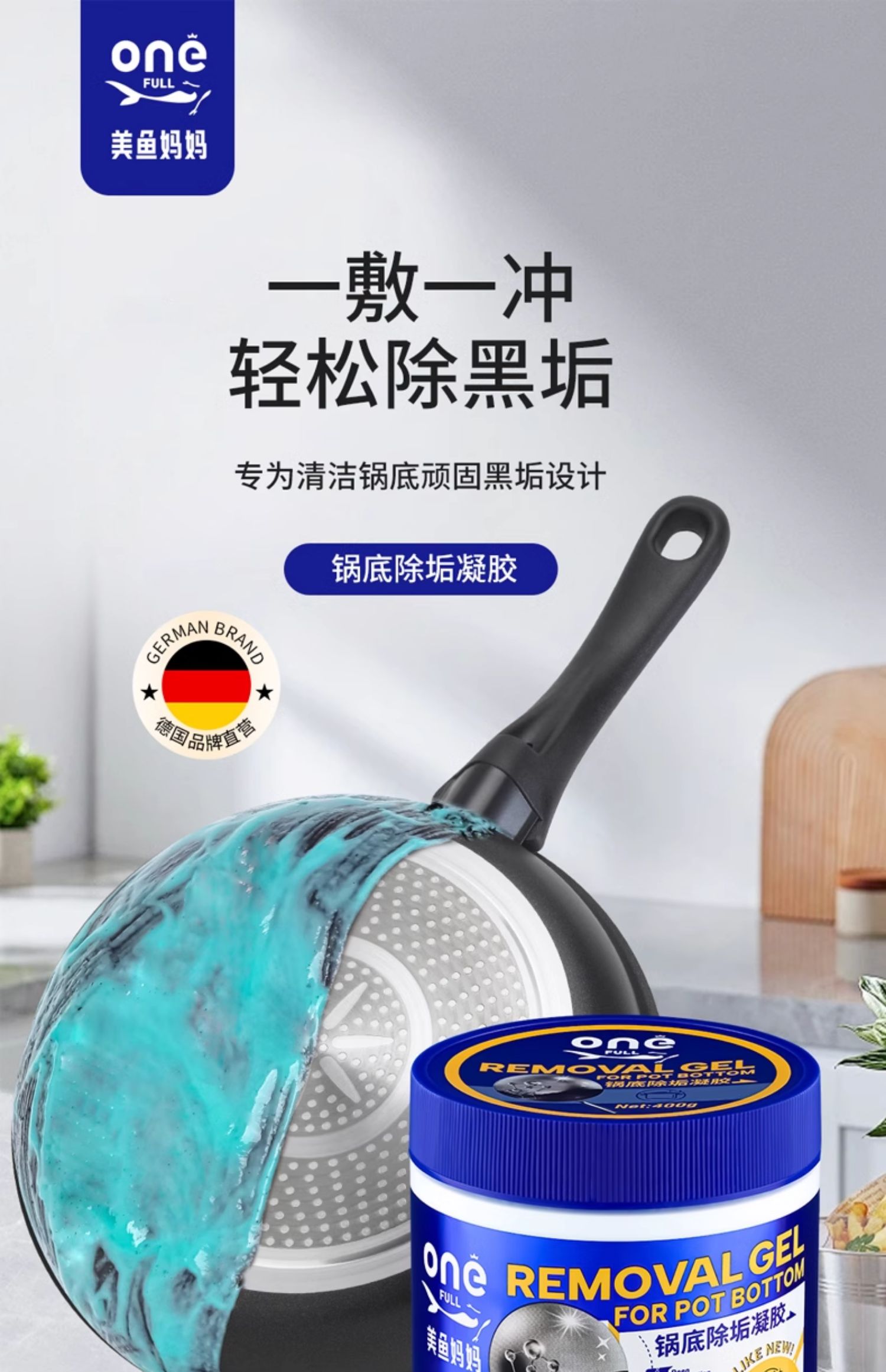 ONEFULL 美鱼妈妈 锅底除垢凝胶 400g*3瓶 不锈钢清洁凝胶 强力去污除黑焦铁锅具 深层清洁不伤锅具