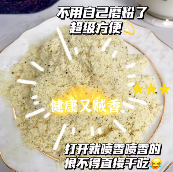 12%八谷之冠黑芝麻 开盖就有一股很香的芝麻味!! 就是外面现炒现磨的那种香味,很有食欲,温水冲泡不会结块,粉粉很细腻,冲出来很浓稠,喝起来口感很绵密 英贝健家的产品都有专业营养师把控🔘 保证是你喝过原料最纯,口感最好的黑豆粉‼ 乌发养发、生发、拯救脱发 从喝纯天然营养黑豆粉开始‼‼