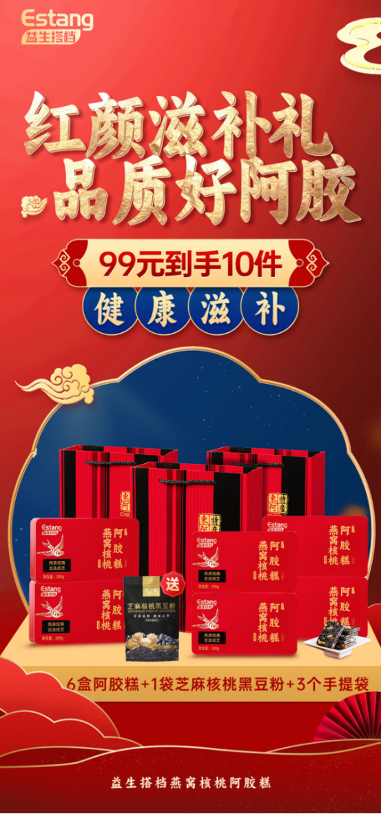 添加了燕窝的阿胶糕对女人保养太好了,这才是高端养生局💥送啥不如送健康❗ “母亲节走心好礼”,不到百元的价格,却是千元的配置‼ ❾❾元抢❻盒💥足足2.4斤狠有分量!! 高大上的包装,太有心了💕送婆婆送妈妈,大姑大姨、都要夸爆,满满好评反馈~