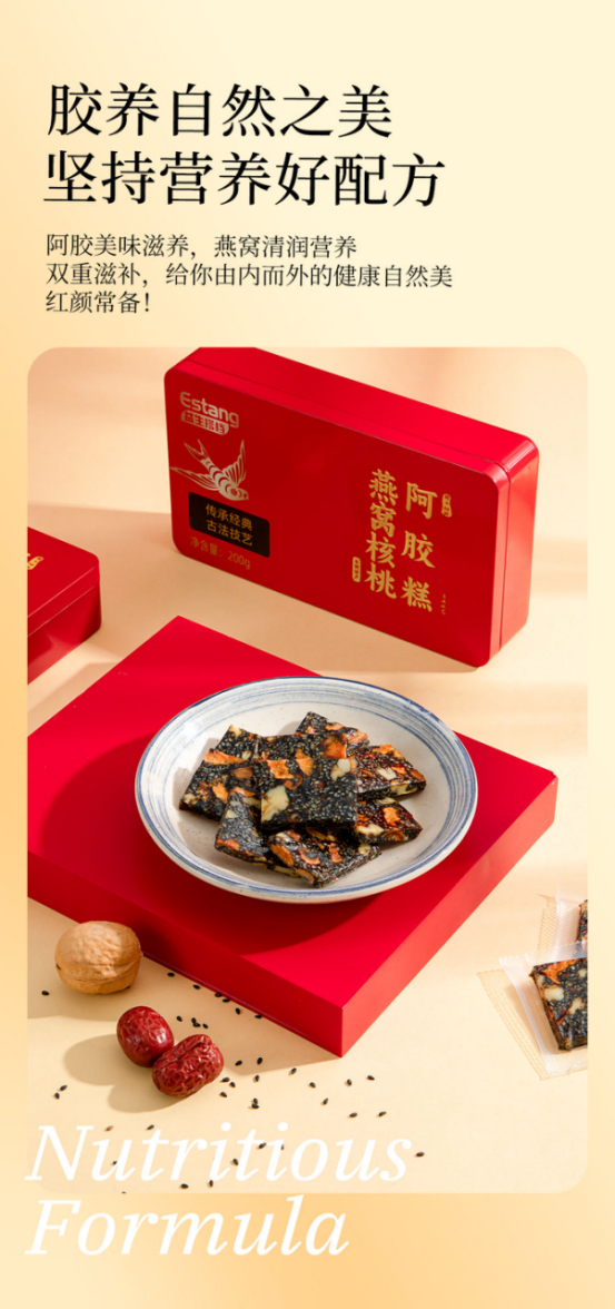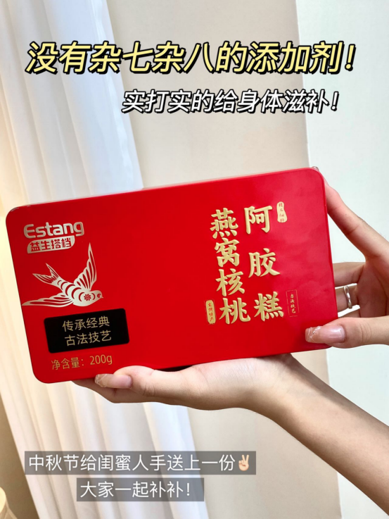 不想早早变成老阿姨,内补气血真的很重要🩸 阿胶是女人必吃的滋养补品💥中秋就送它‼‼ 阿胶天花板——益生搭档·燕窝核桃阿胶糕❗ 多少护肤品都换不回这1块阿胶的滋补! 添加马来西亚100%进口燕窝,比普通阿胶好 地道·东阿阿胶❗整张黑驴皮熬制 10种食材看的一清二楚😋😋 食药同源满满真材实料入口软糯醇香,料足营养丰富每天坚持吃两片气色足,精神好~