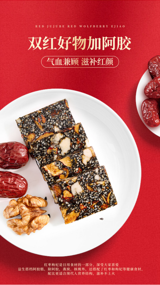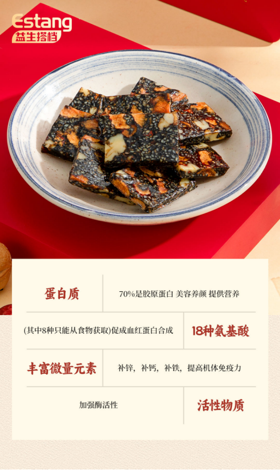 女生的回血包❗ 一片阿胶糕蕴含的能量超乎想象💥 补气血的阿胶、美容的燕窝 滋养五脏的黄精、补元气的人参 健脑的核桃仁、乌发的黑芝麻……于一体✅ 聚集多重营养,一片满足你所有的需要 每天吃阿胶,好气色好到人见人夸!!!