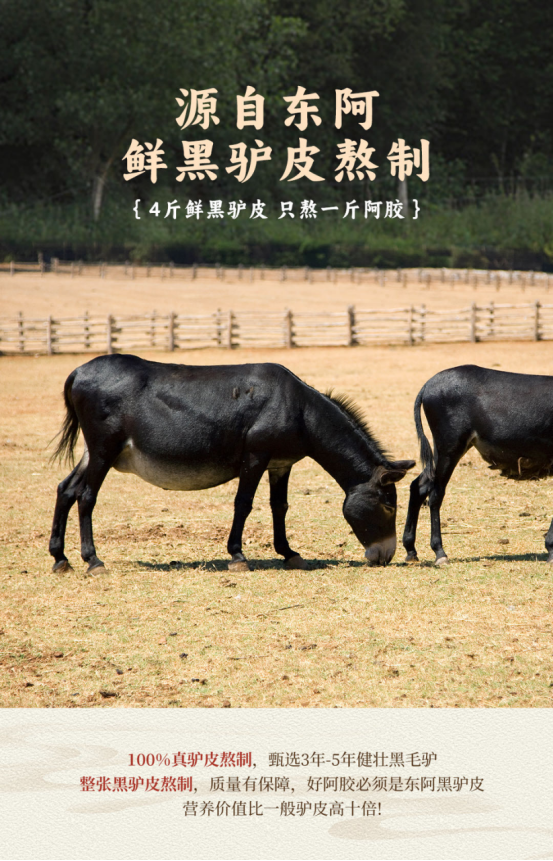 4斤鲜黑驴皮熬一斤阿胶⭐ 好阿胶必须是东阿黑驴皮✅ 营养价值比一般驴皮高十倍‼ 甄选上品纯黑驴皮⚫阿胶添加量18%