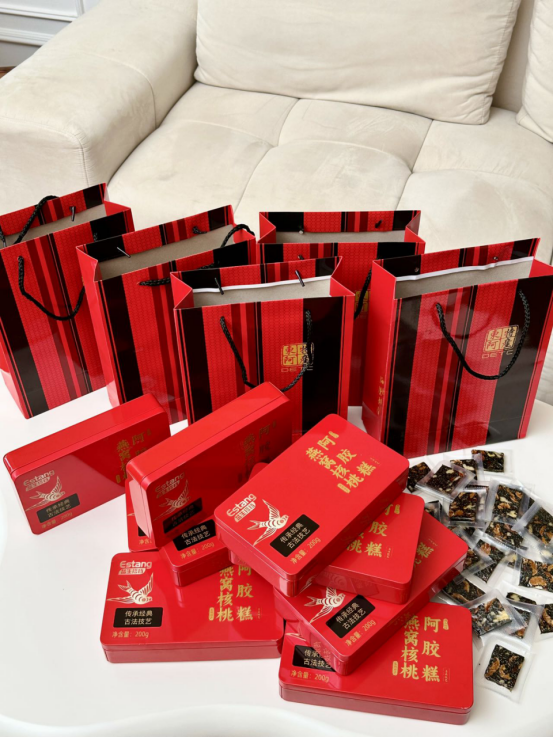 豪华配方❗甩市面上普通的阿胶糕十条街 ❶马来西亚🇲🇾进口高品质燕窝,瀑布级促进胶原蛋白!! ❷只用东阿镇产的阿胶,铁元素含量更高 ❸只用长白山产的5年人参,人参皂苷含量达到峰值