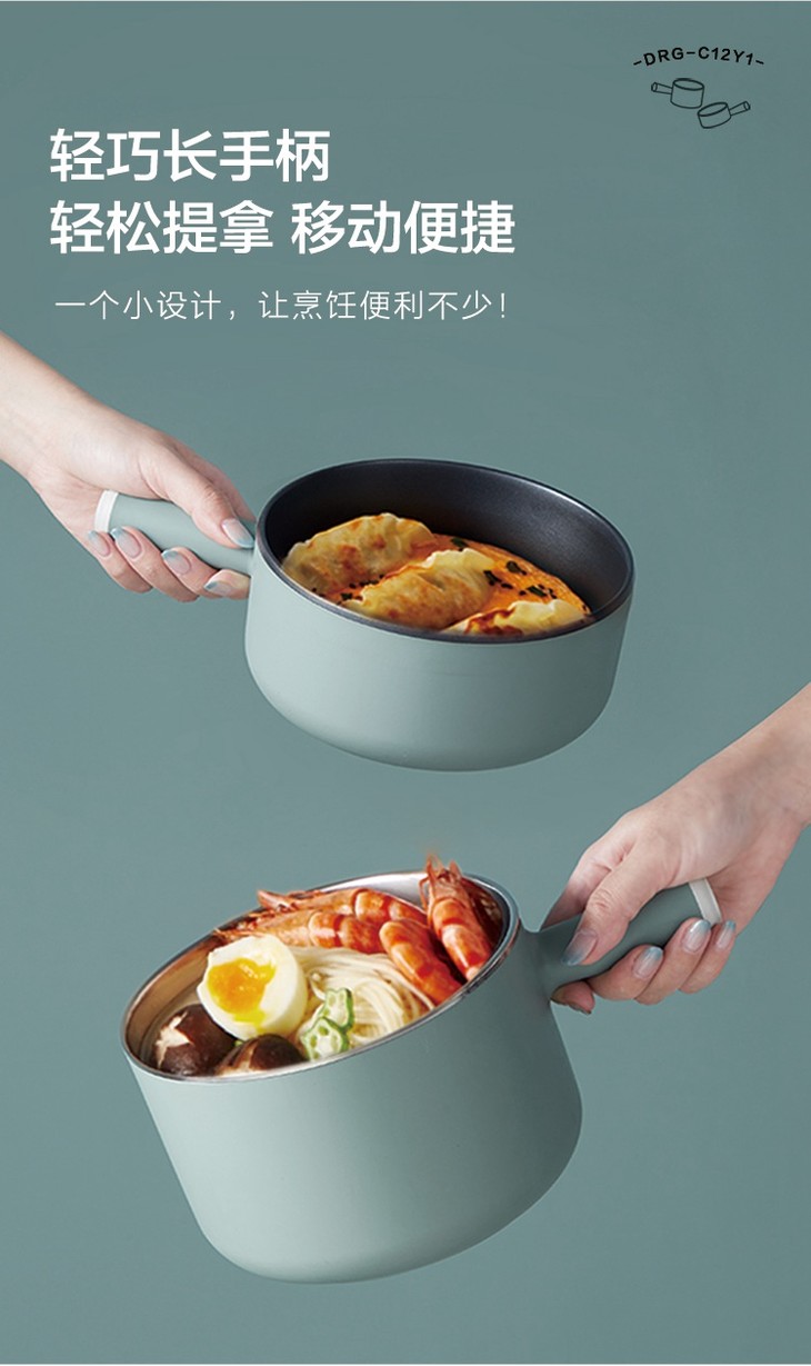 小熊(Bear)电热锅多功能电煮锅电蒸锅电火锅锅分体式多用途料理锅电煎锅宿舍智能迷你小电锅DRG-C12Y1产地直发