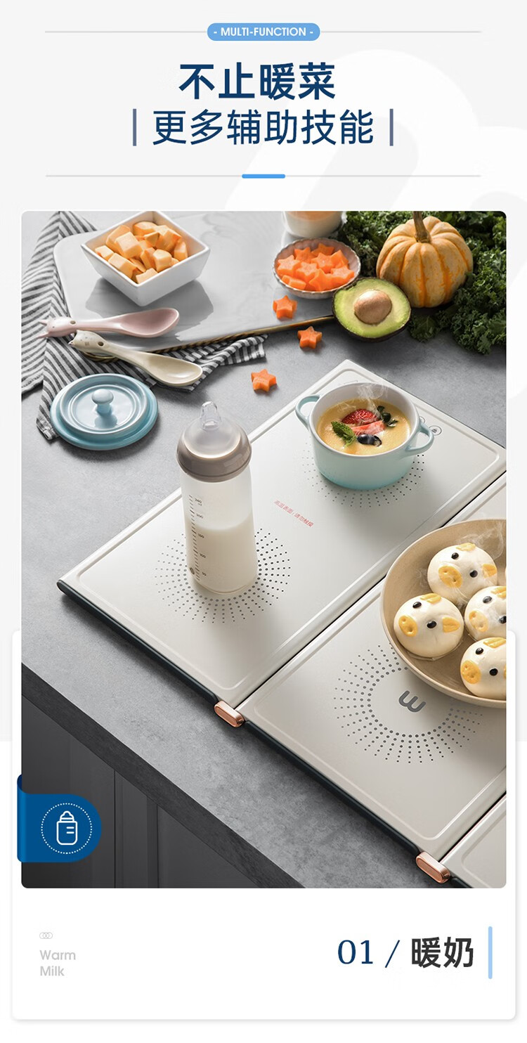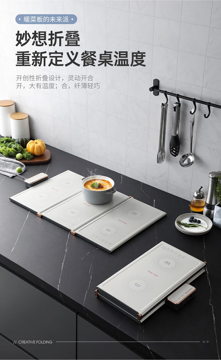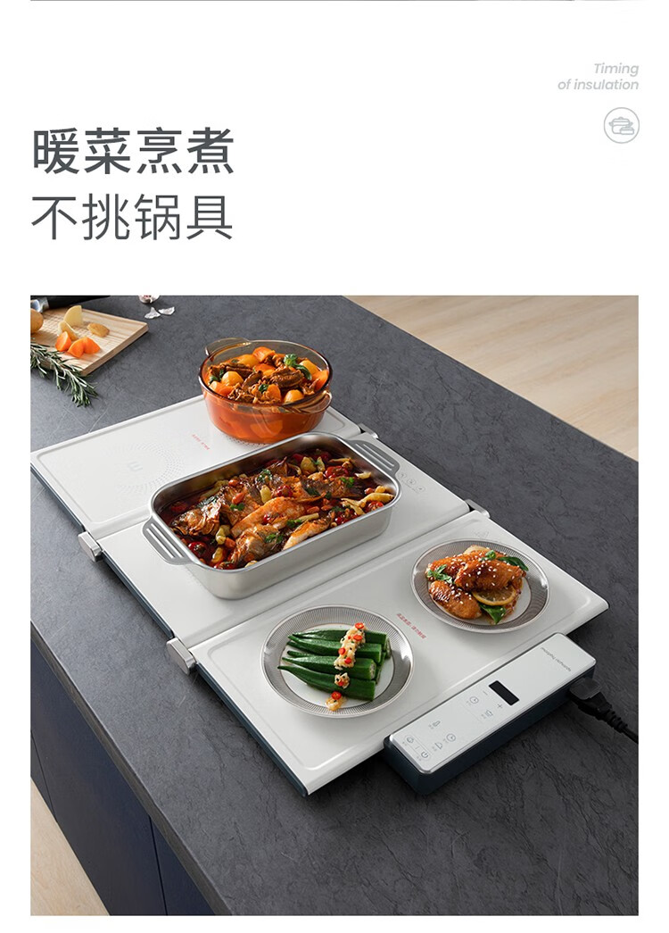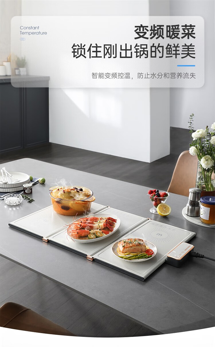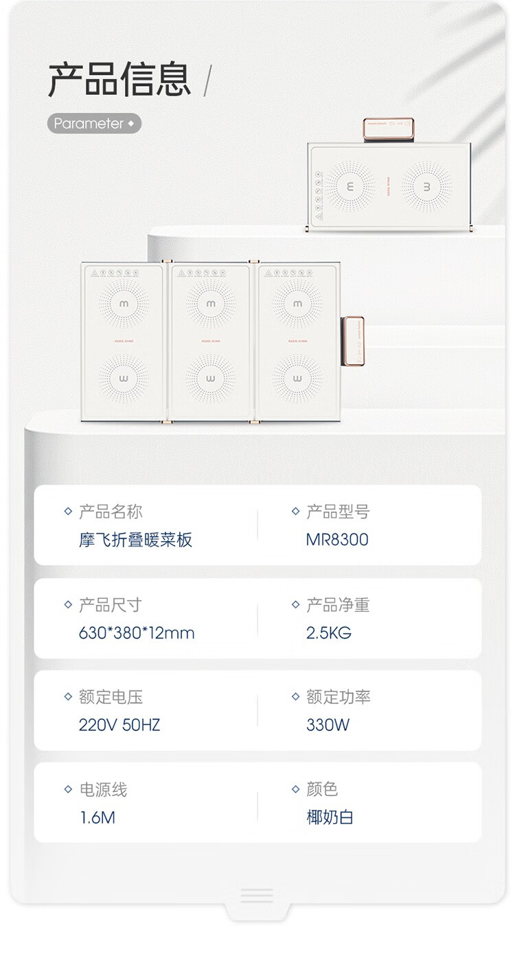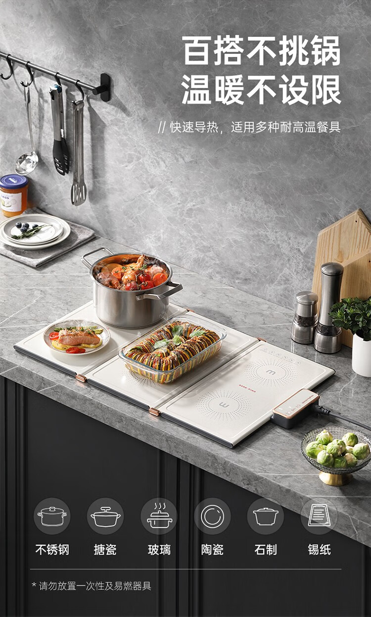 摩飞电器(Morphyrichards) 折叠暖菜板热菜板多功能家用饭菜保温板方形暖菜垫MR8300 椰奶白MR8300