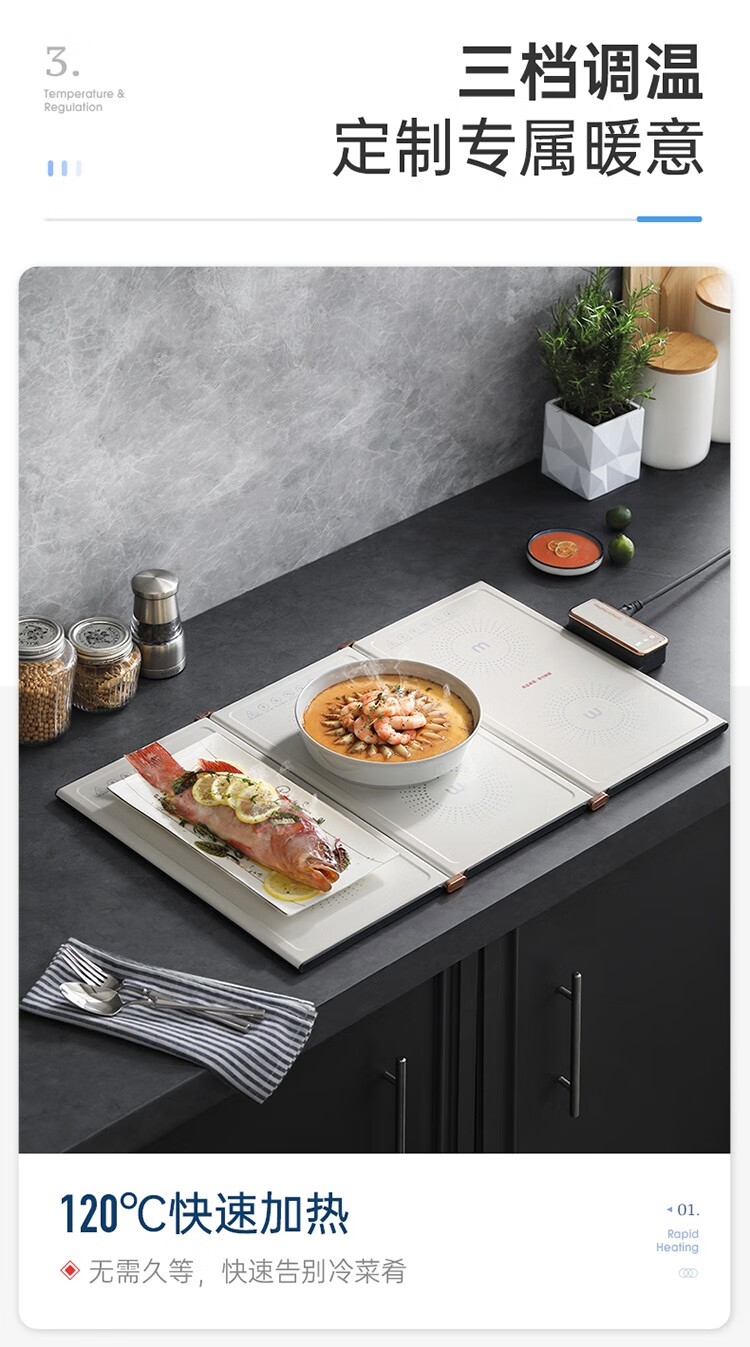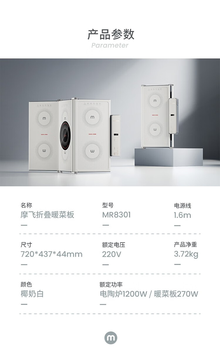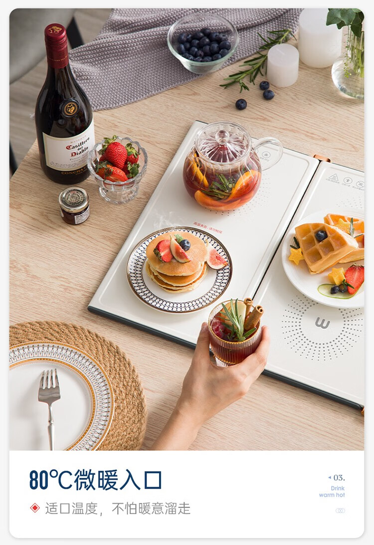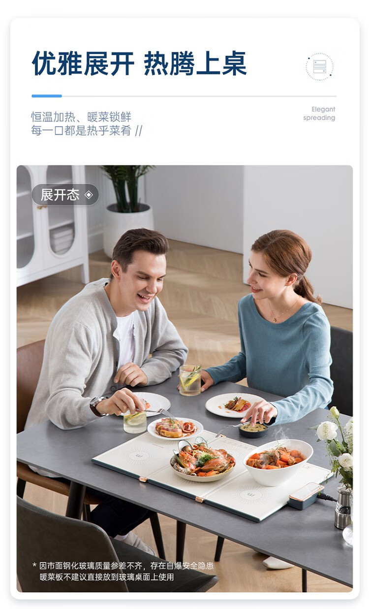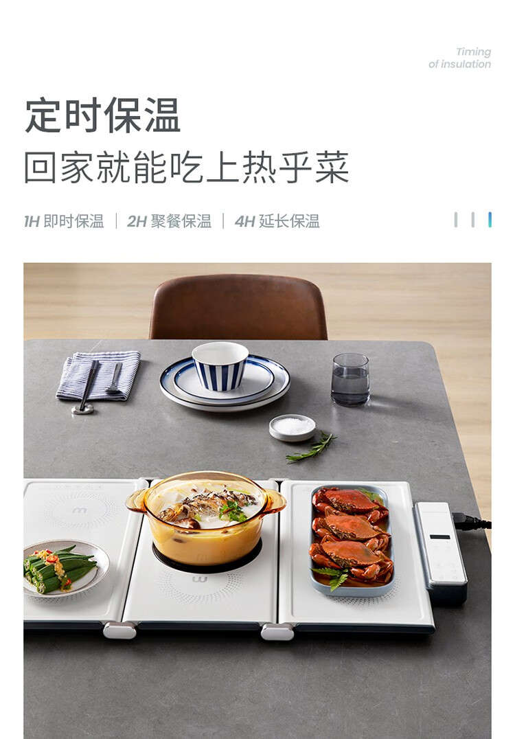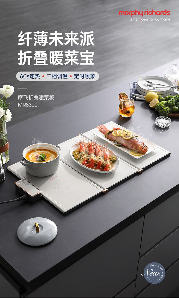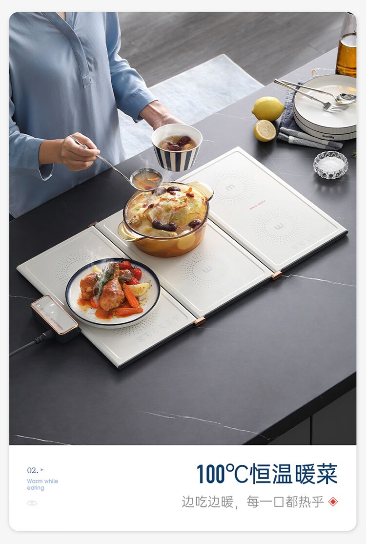 摩飞电器(Morphyrichards) 折叠暖菜板热菜板多功能家用饭菜保温板方形暖菜垫MR8300 椰奶白MR8300