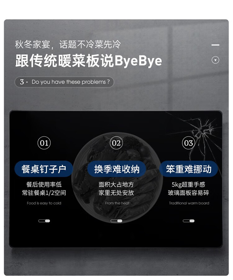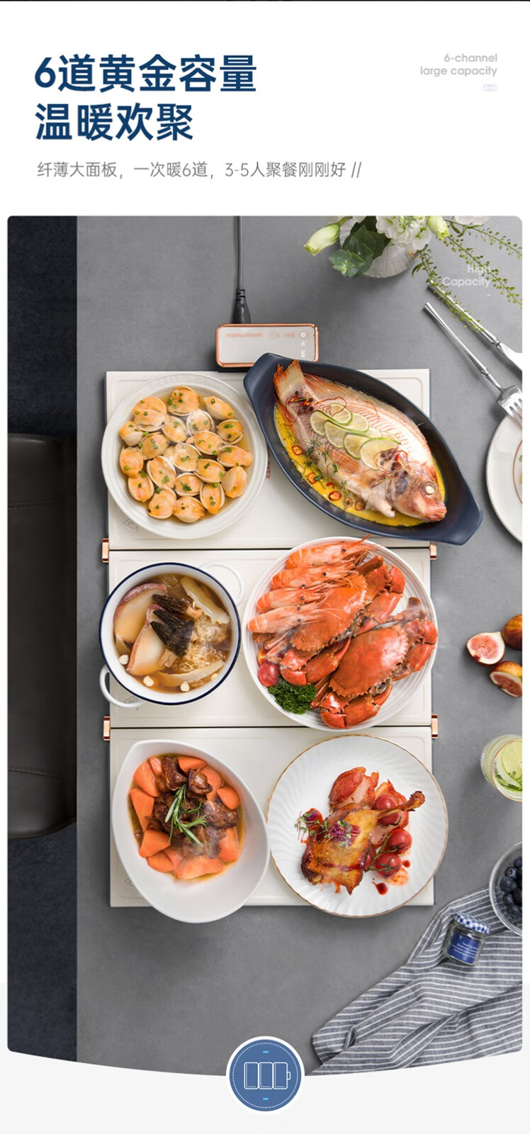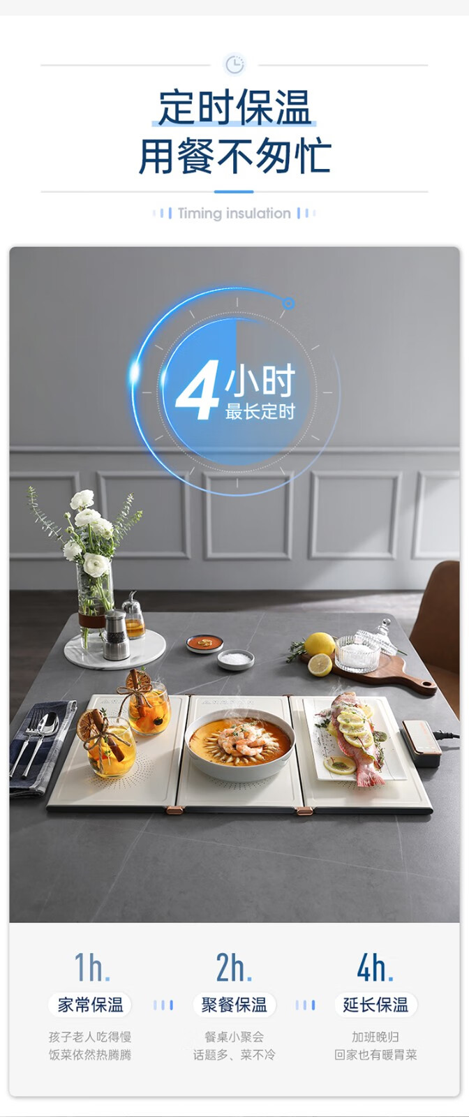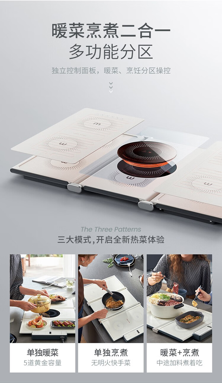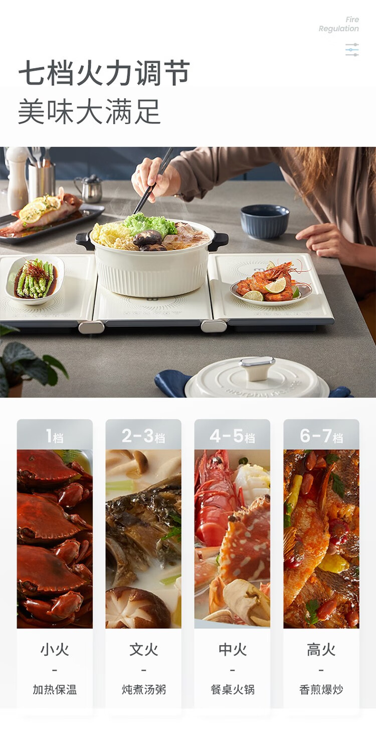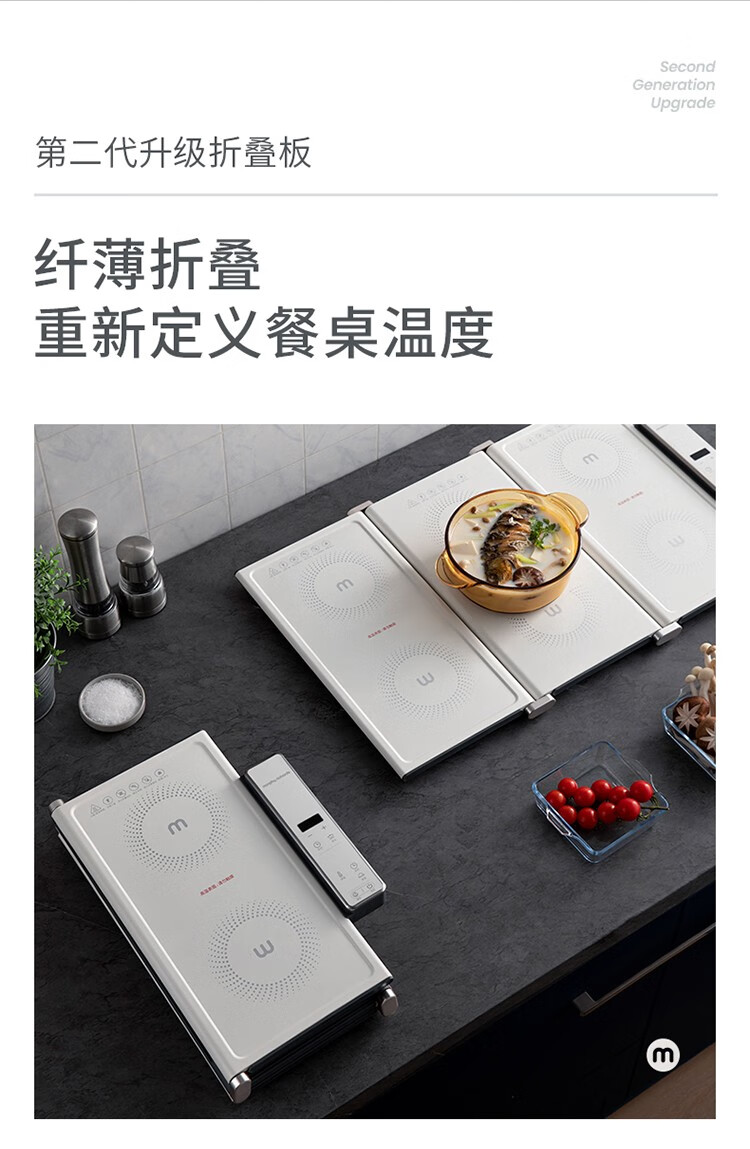 摩飞电器(Morphyrichards) 折叠暖菜板热菜板多功能家用饭菜保温板方形暖菜垫MR8300 椰奶白MR8300