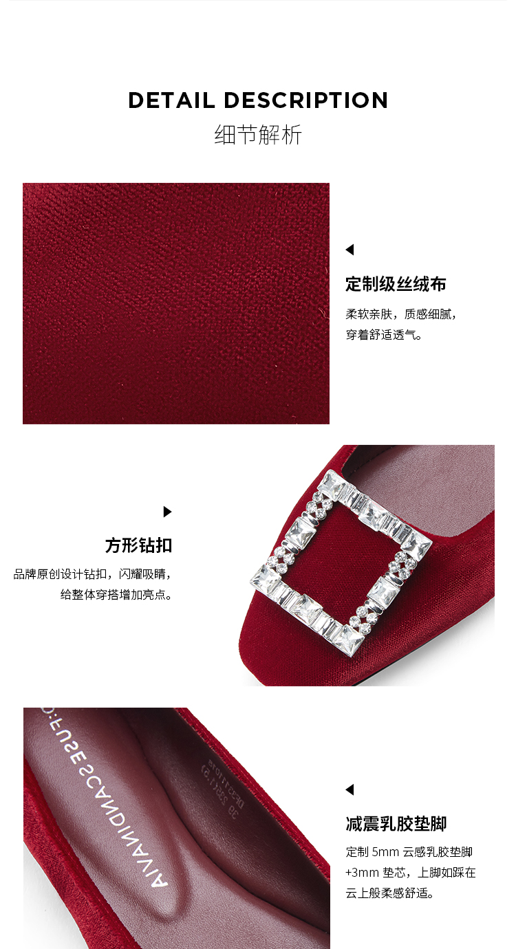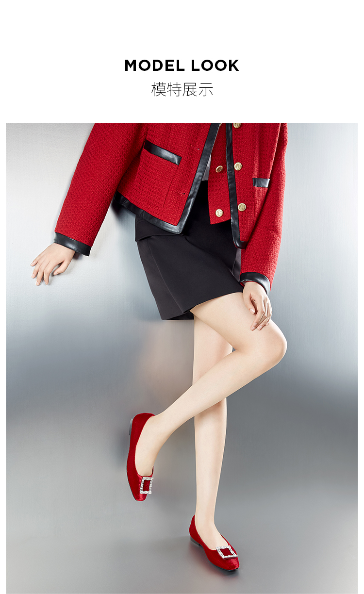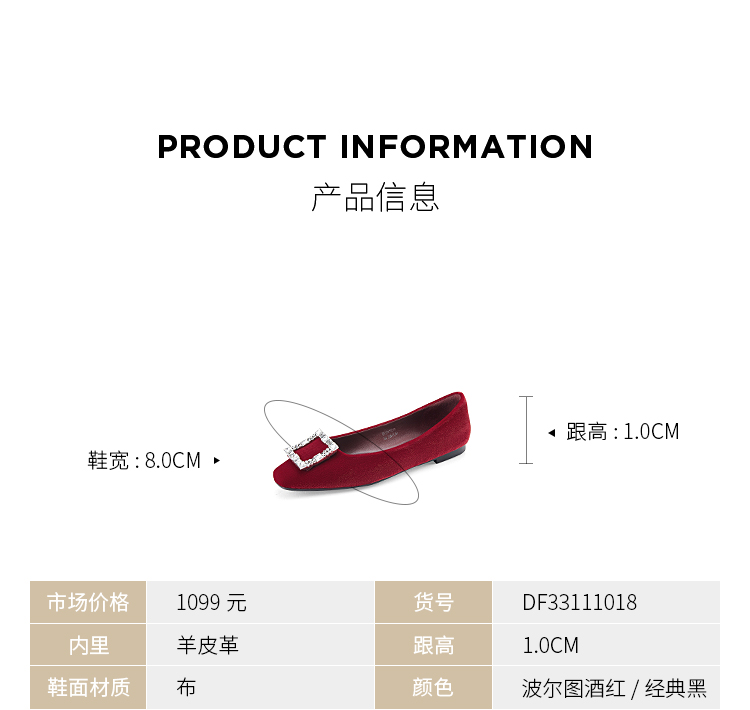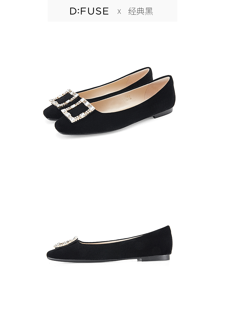 D:FUSE迪芙斯秋款单鞋女丝绒布优雅方头钻扣平底鞋女鞋DF33111018
