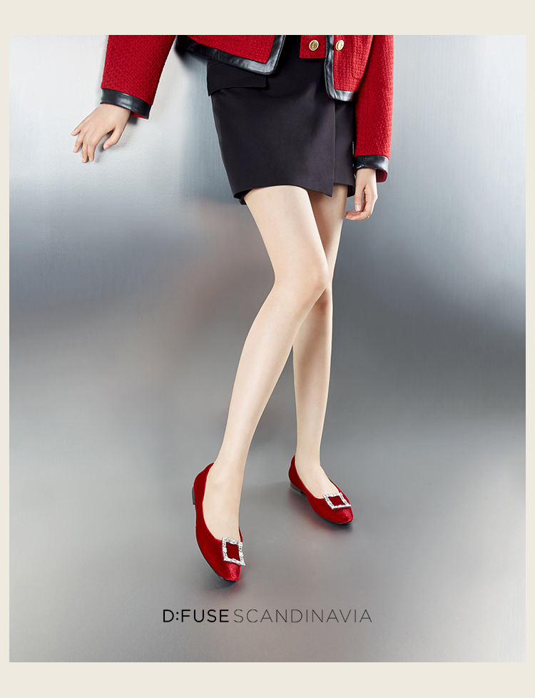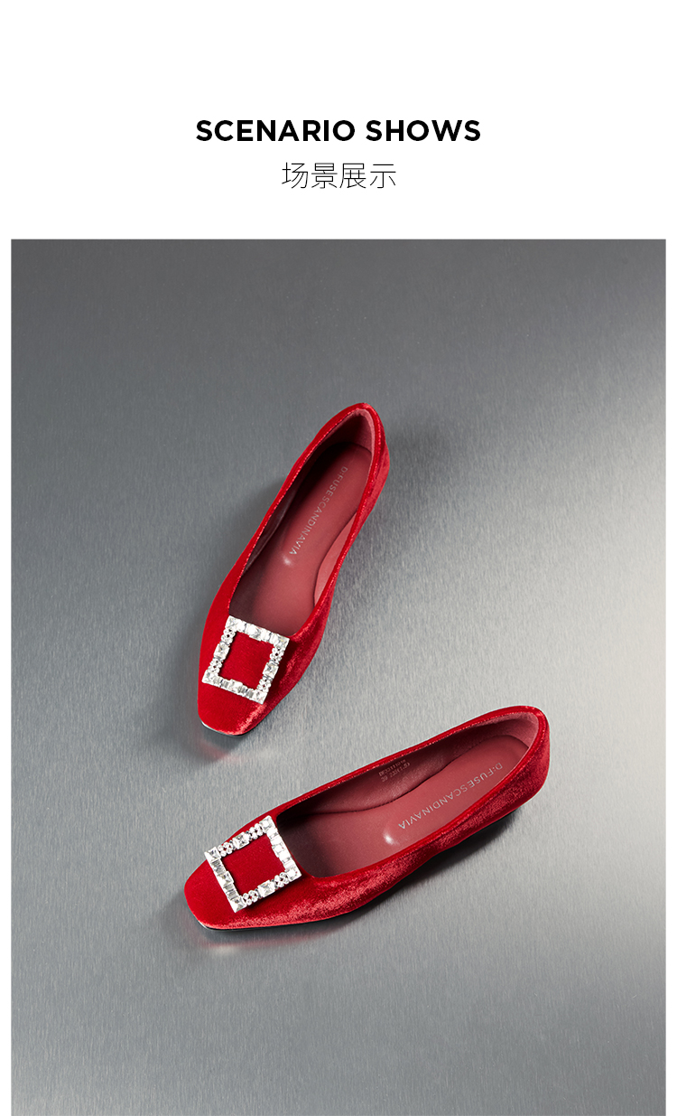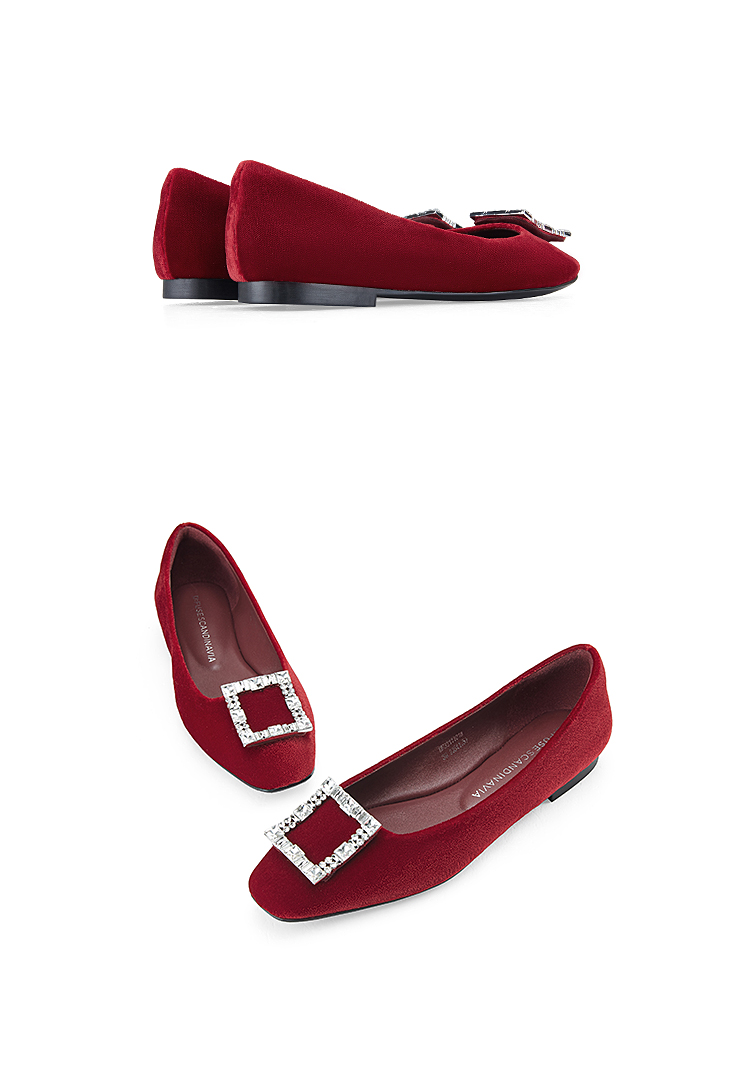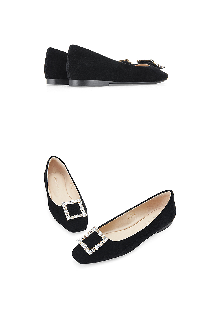 D:FUSE迪芙斯秋款单鞋女丝绒布优雅方头钻扣平底鞋女鞋DF33111018