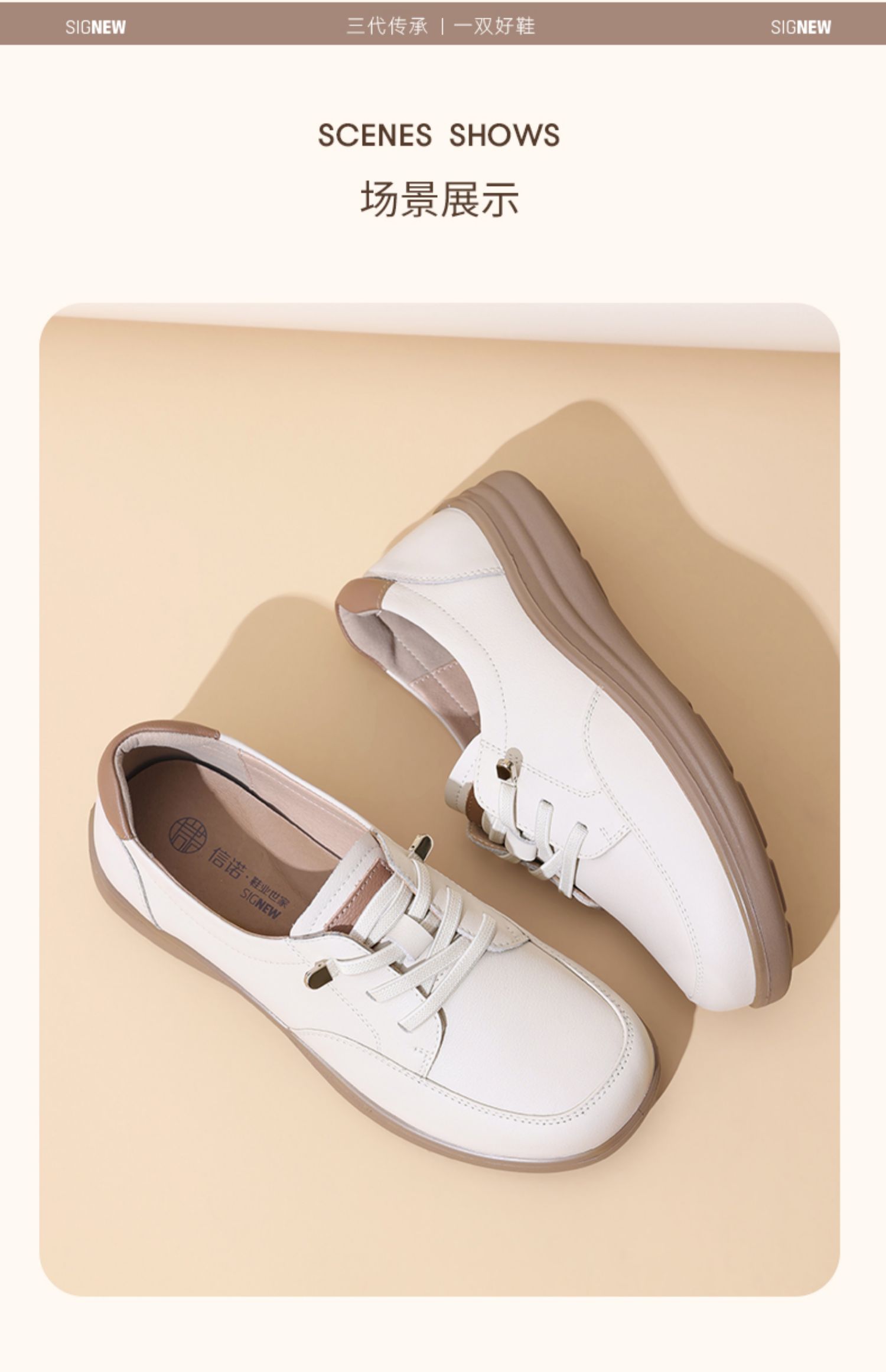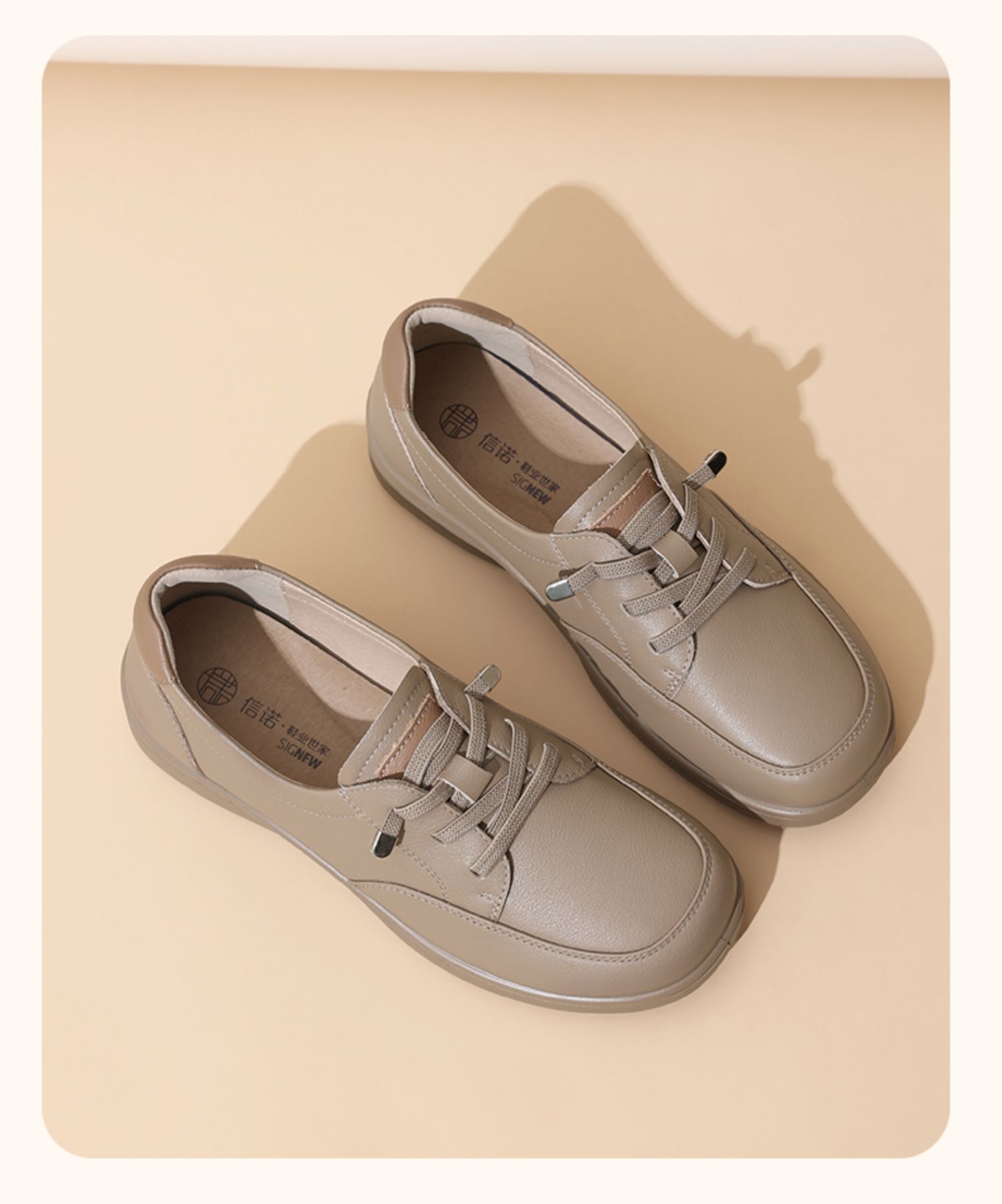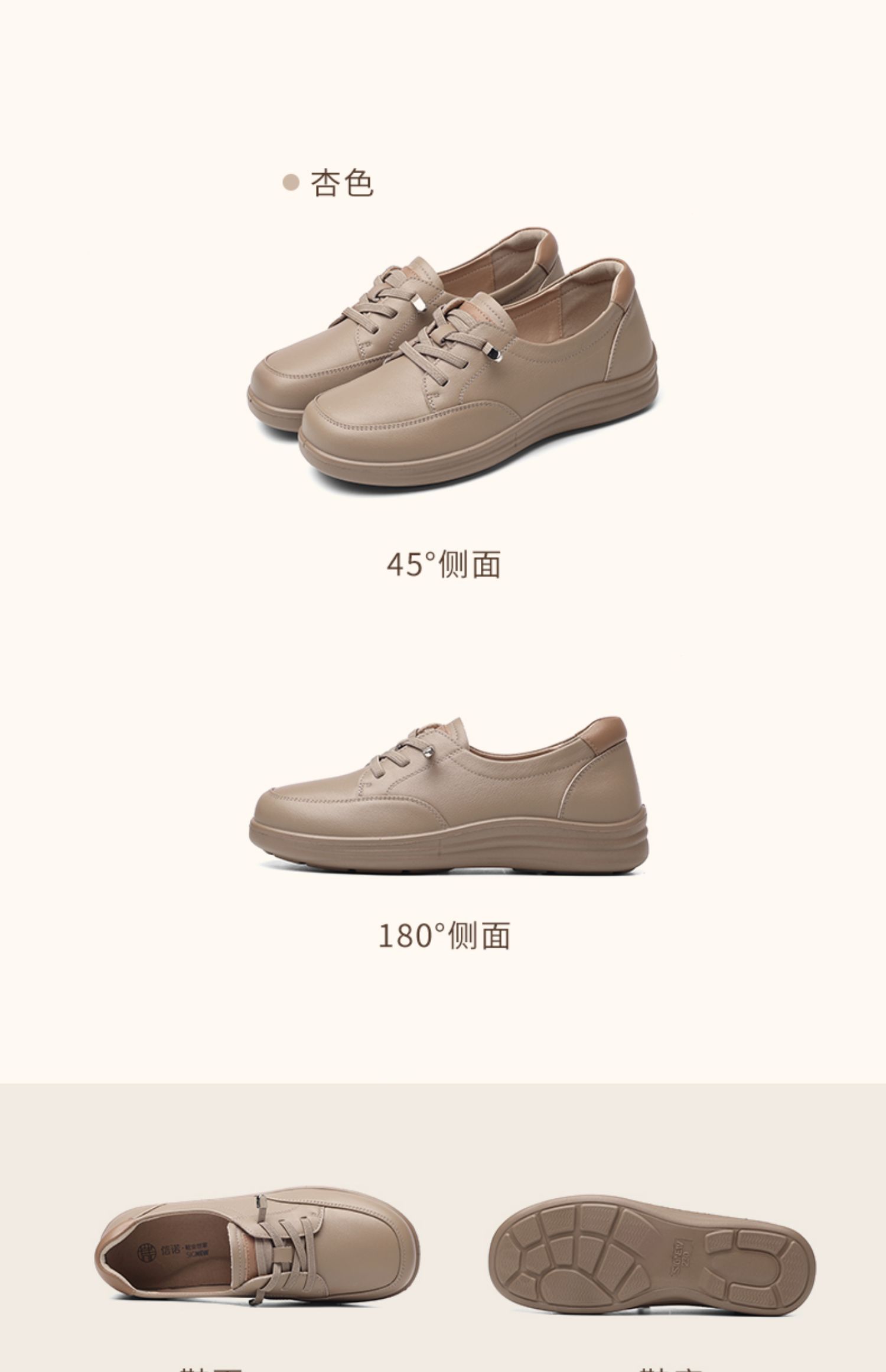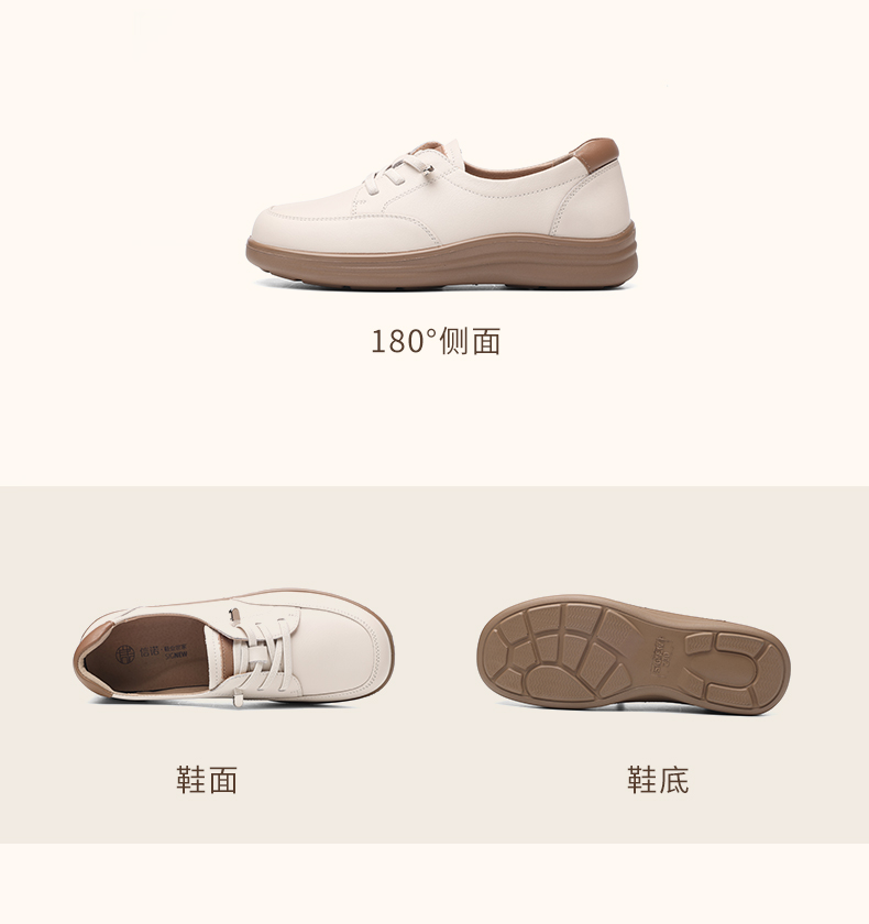 信诺真皮妈妈鞋子2025新款春季平底舒适软底中老年不累脚休闲单鞋5C8166-12