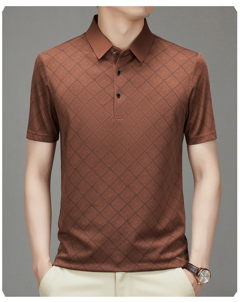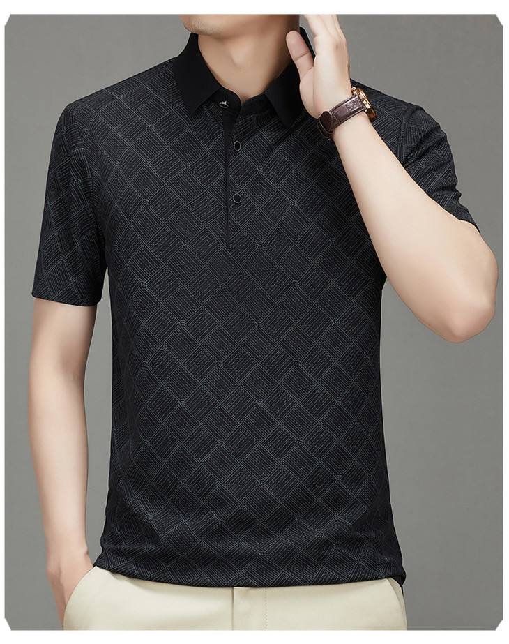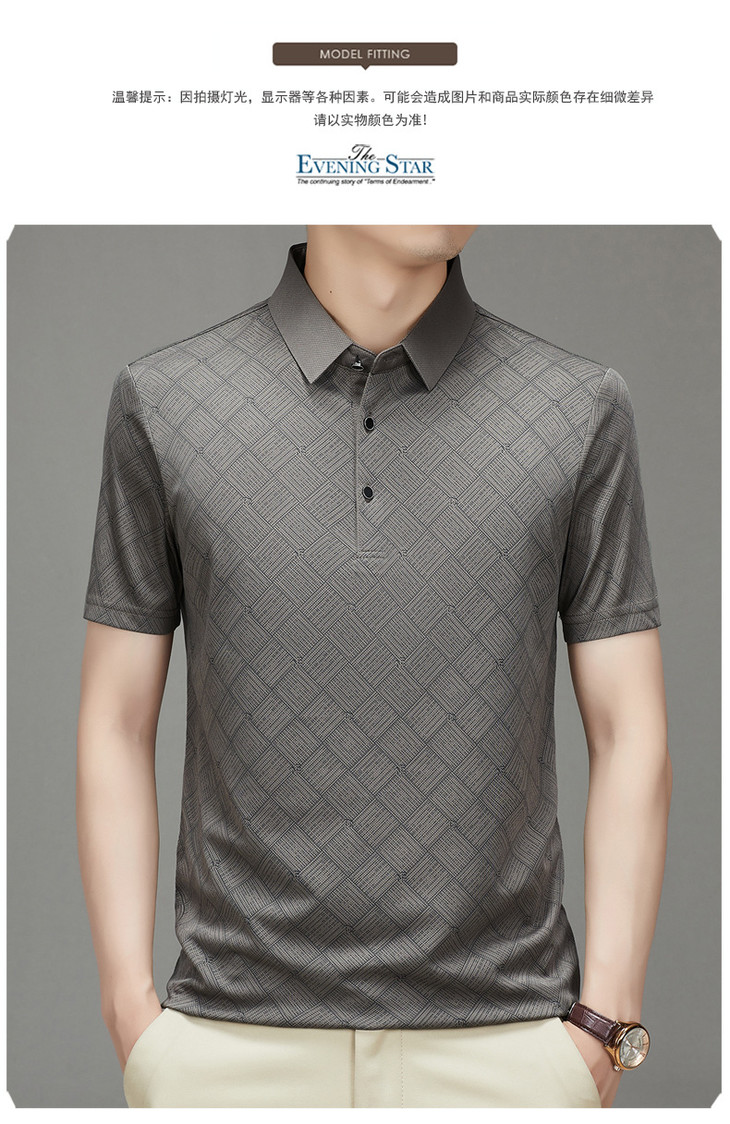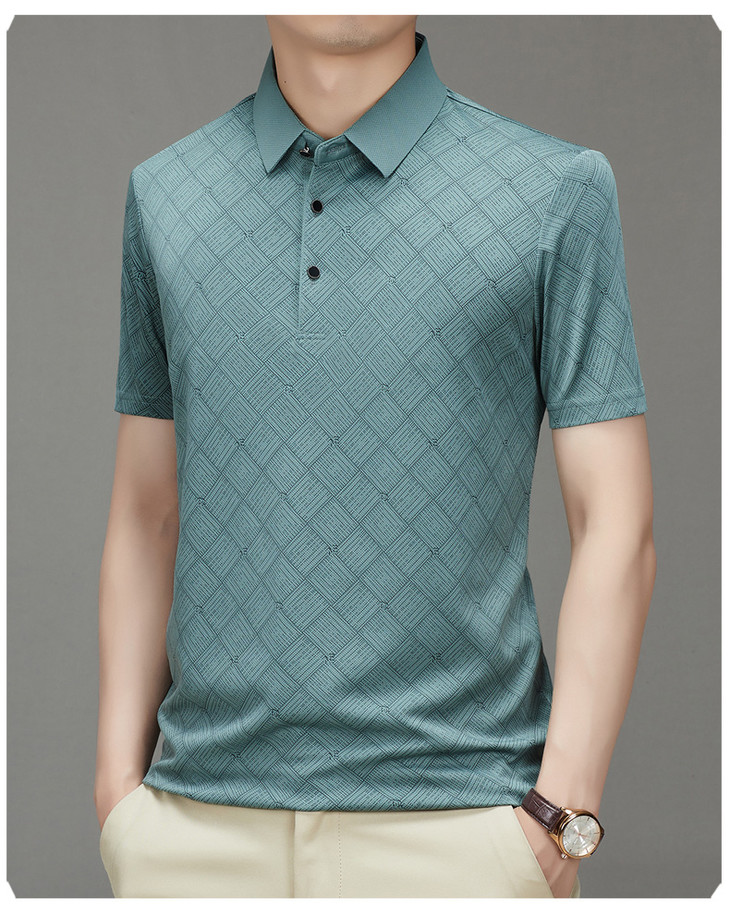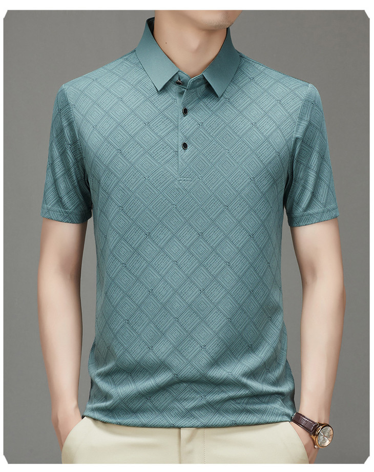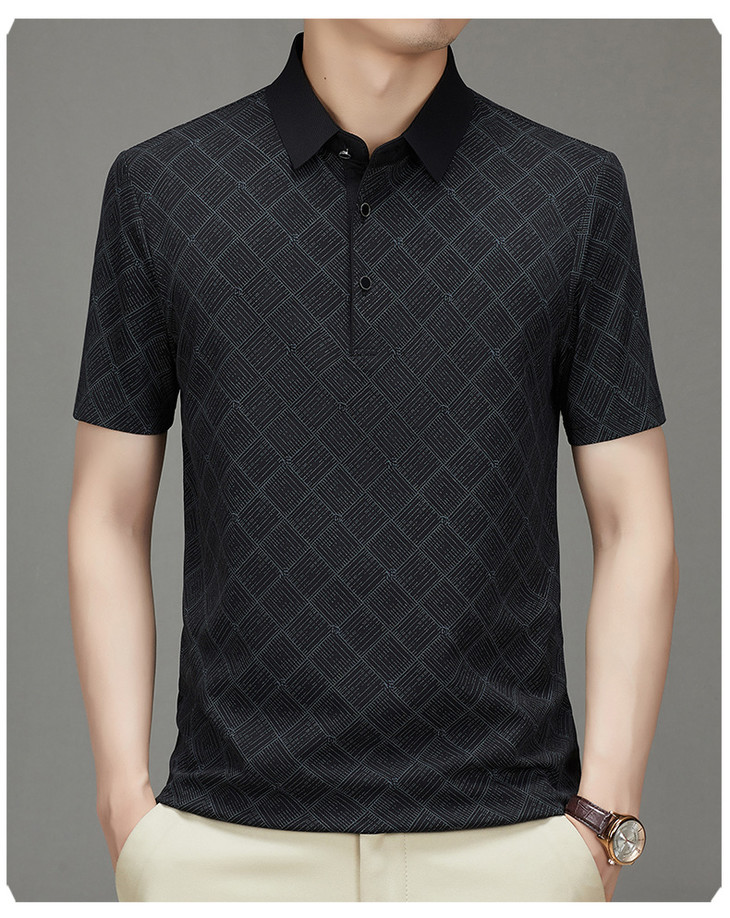 夏季男士短袖提花降温翻领冰丝中年透气亲肤宽松时尚衫短袖t恤男
