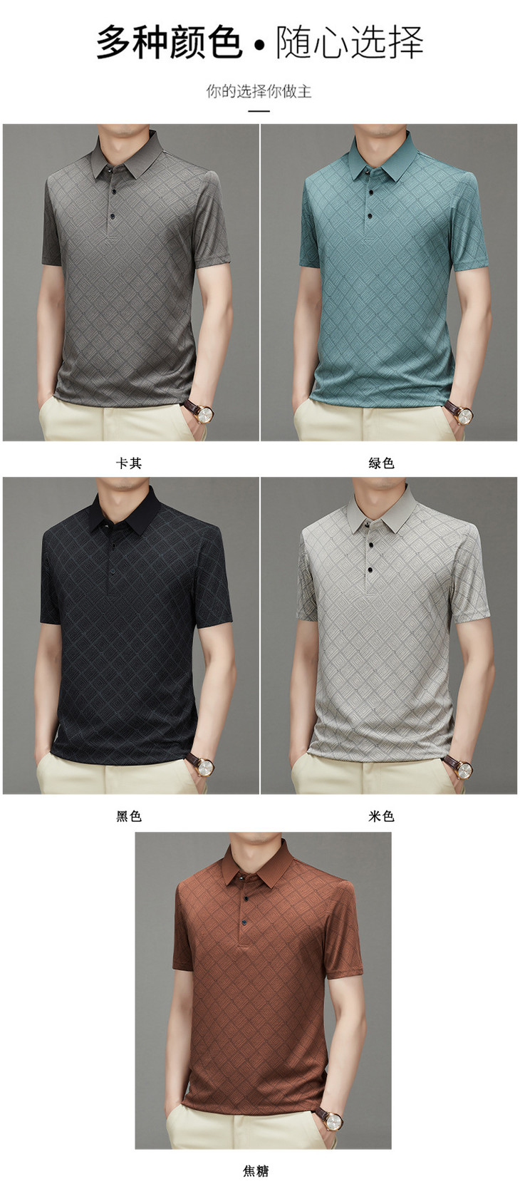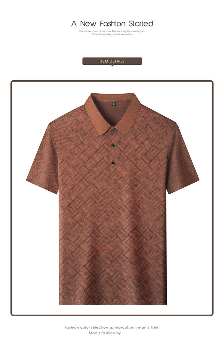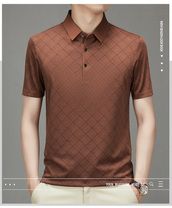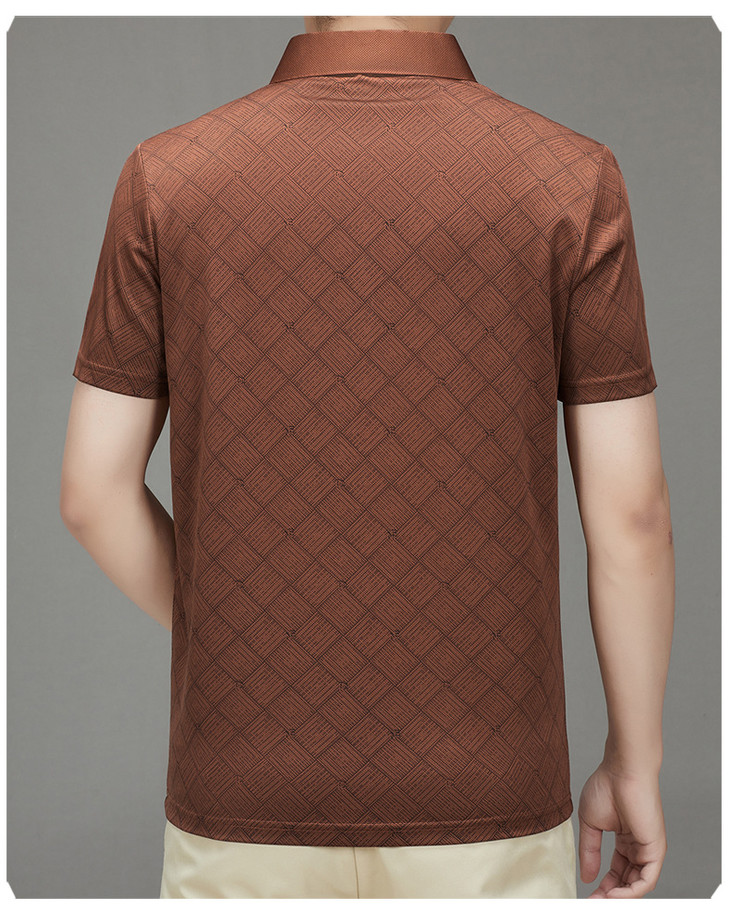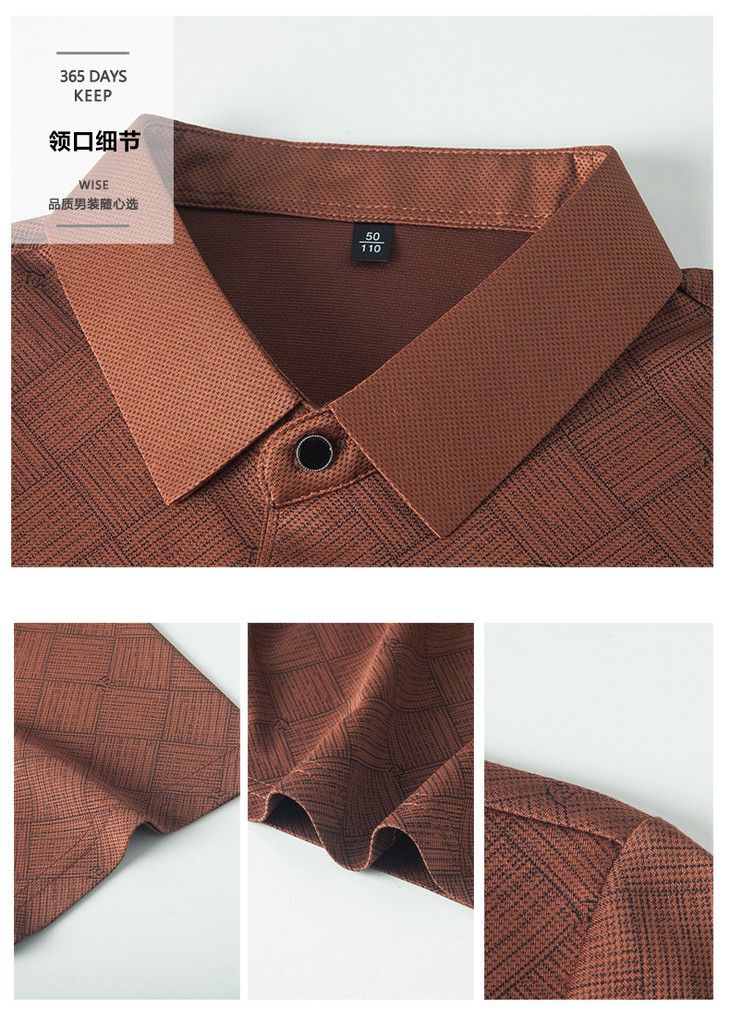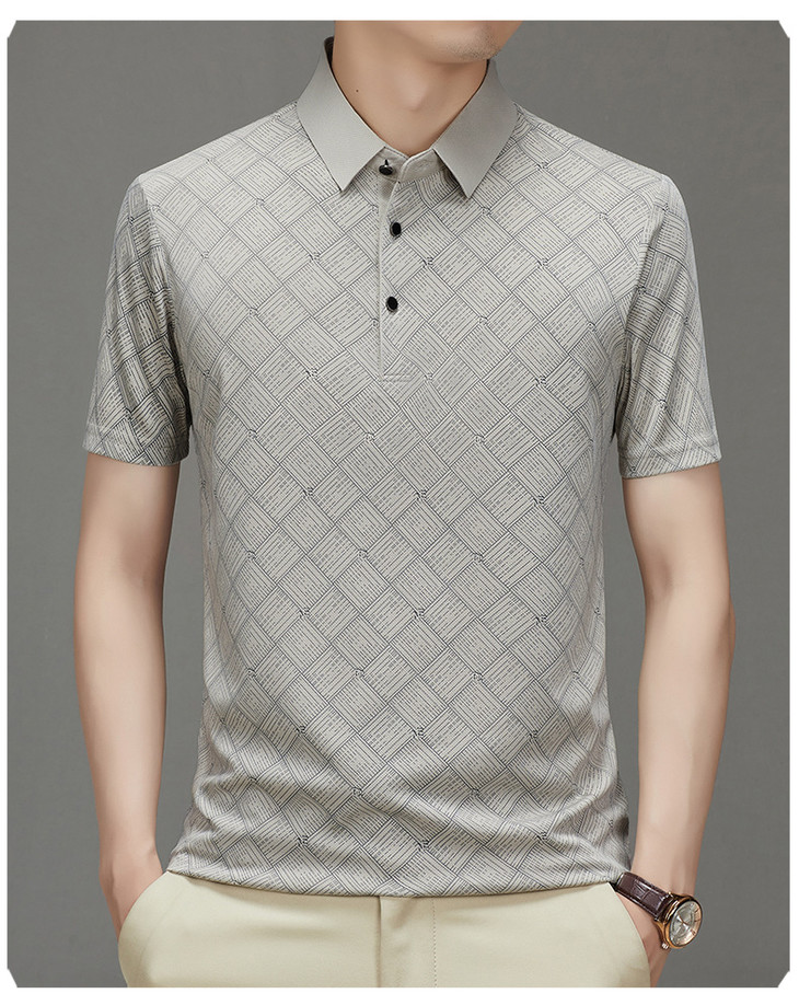 夏季男士短袖提花降温翻领冰丝中年透气亲肤宽松时尚衫短袖t恤男