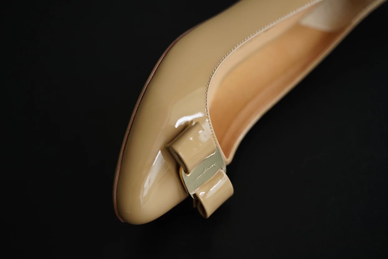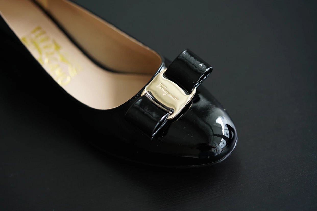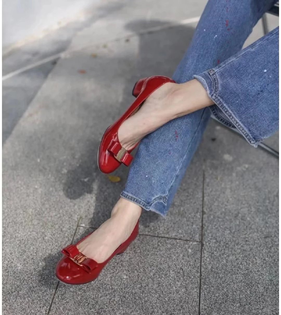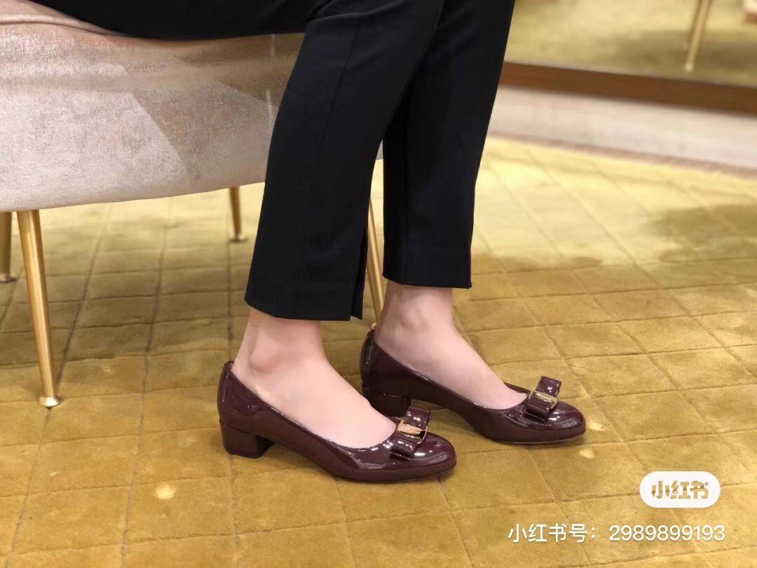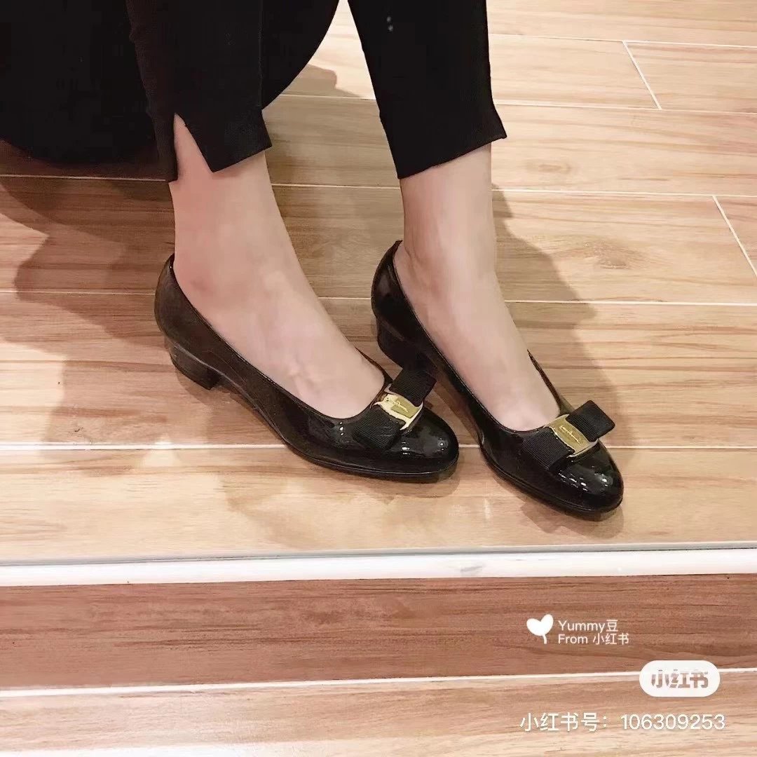 万年经典 独加私渠 Vara蝴蝶结皮扣中跟单鞋 软漆皮单鞋