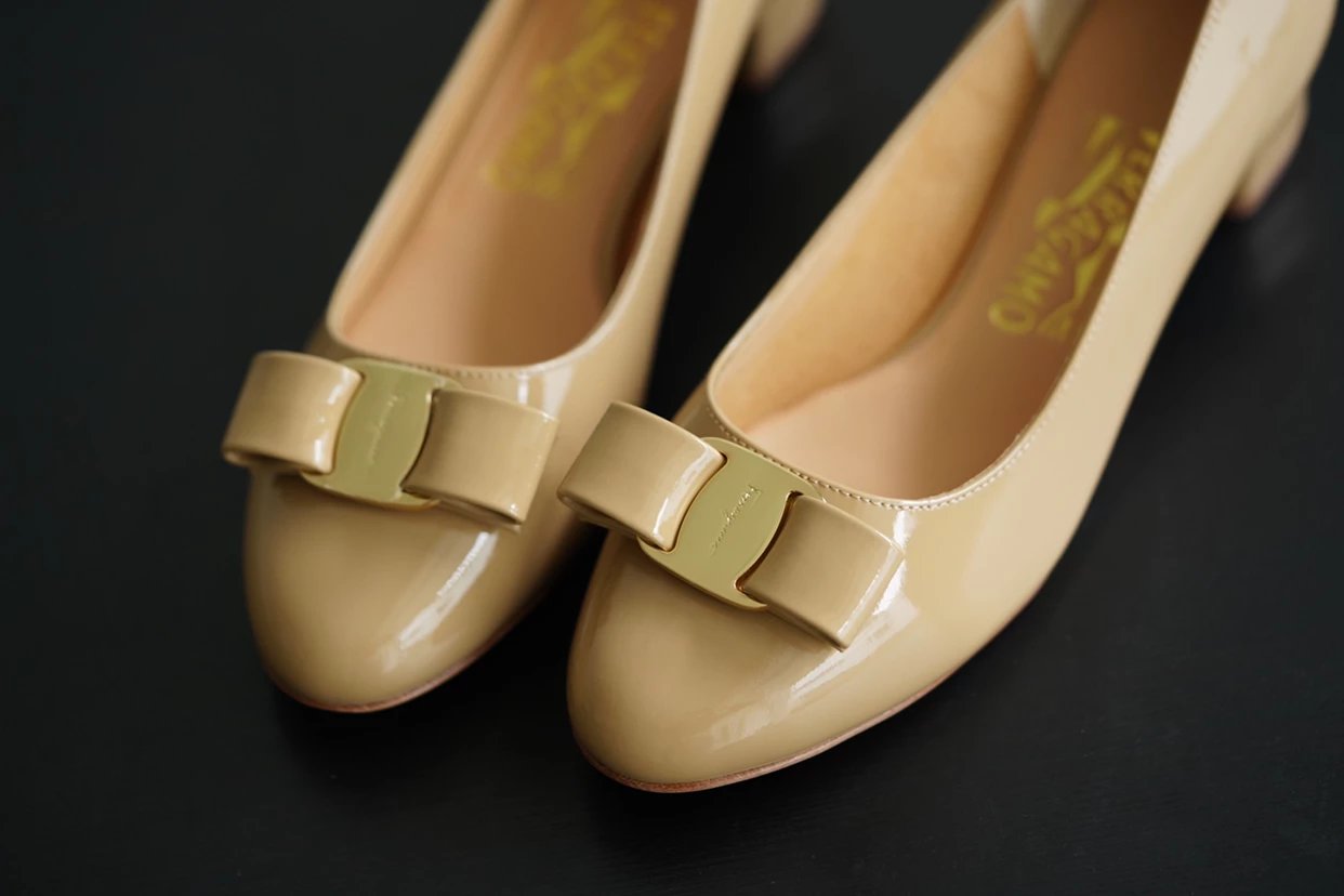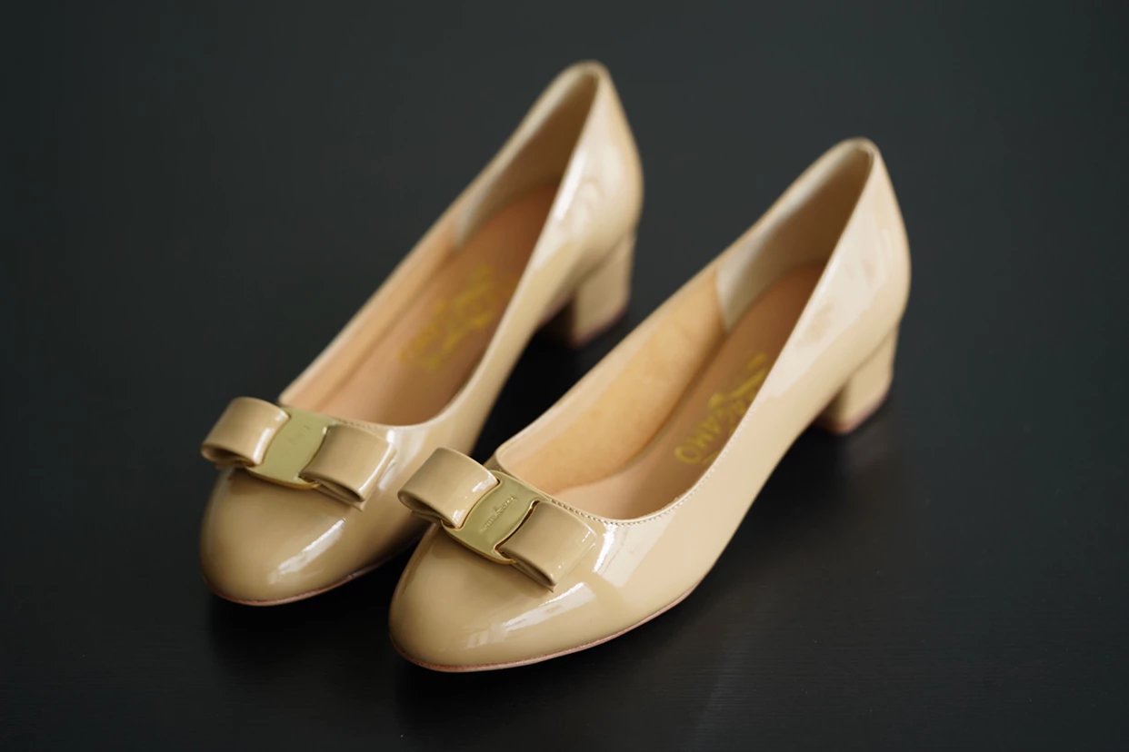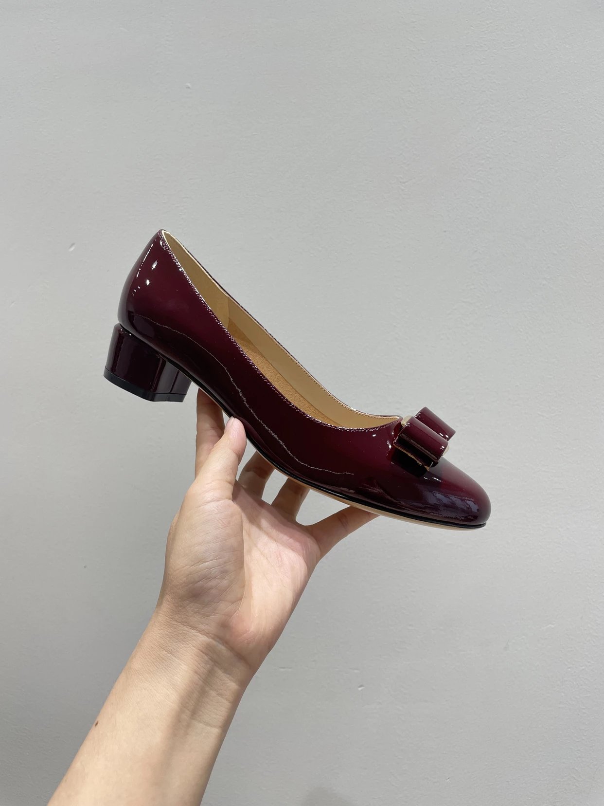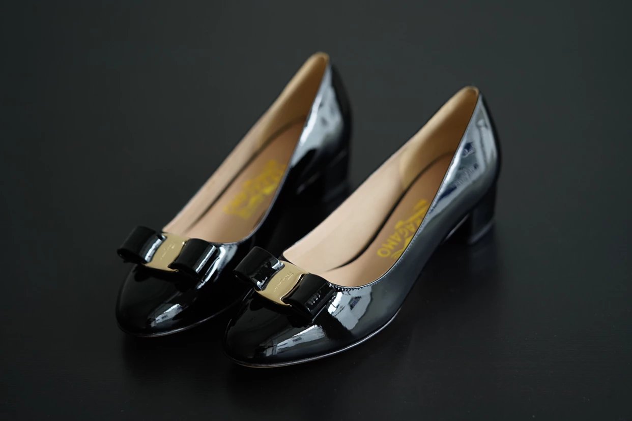 万年经典 独加私渠 Vara蝴蝶结皮扣中跟单鞋 软漆皮单鞋
