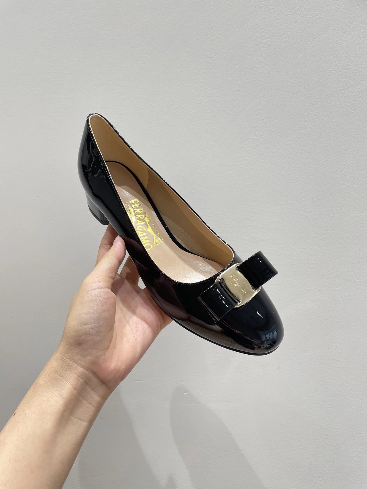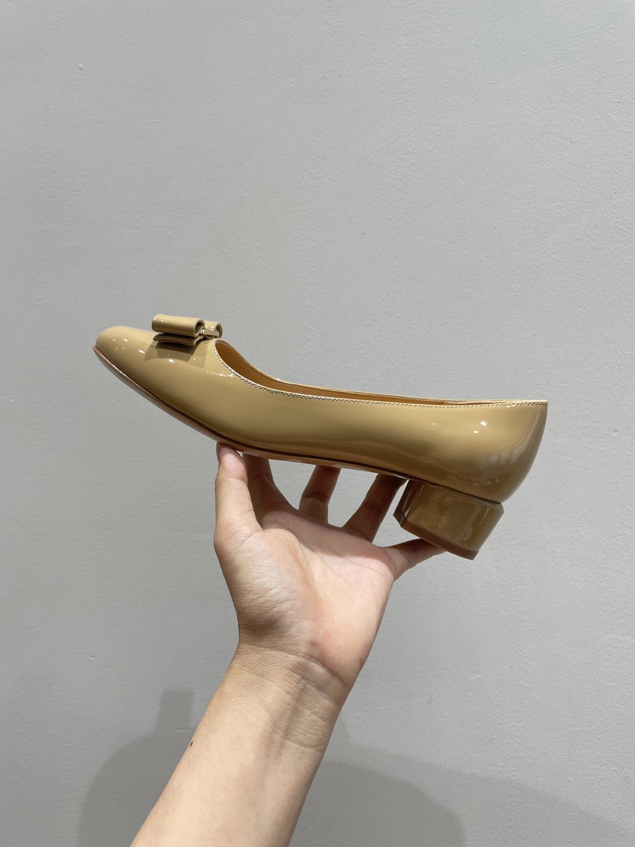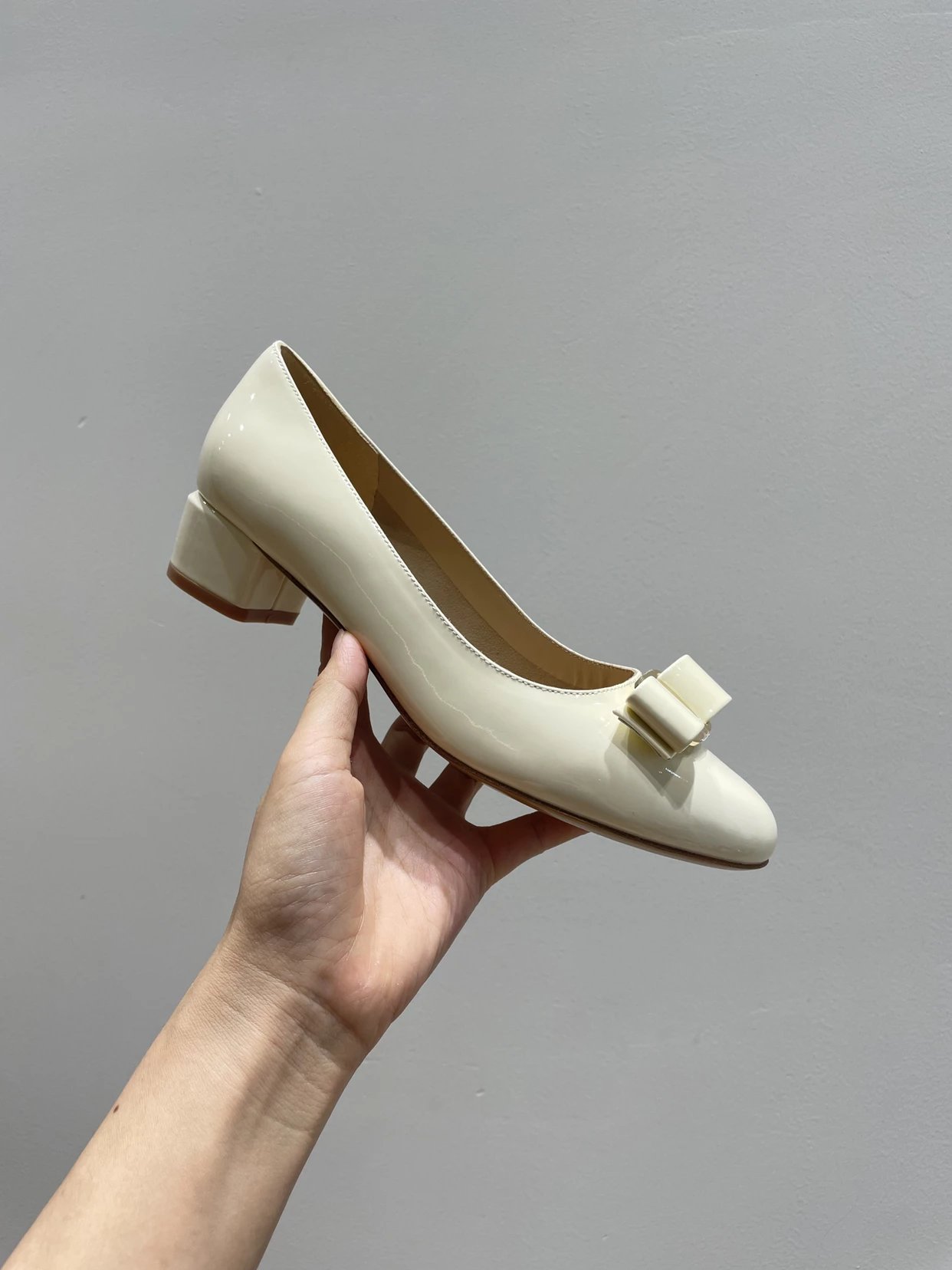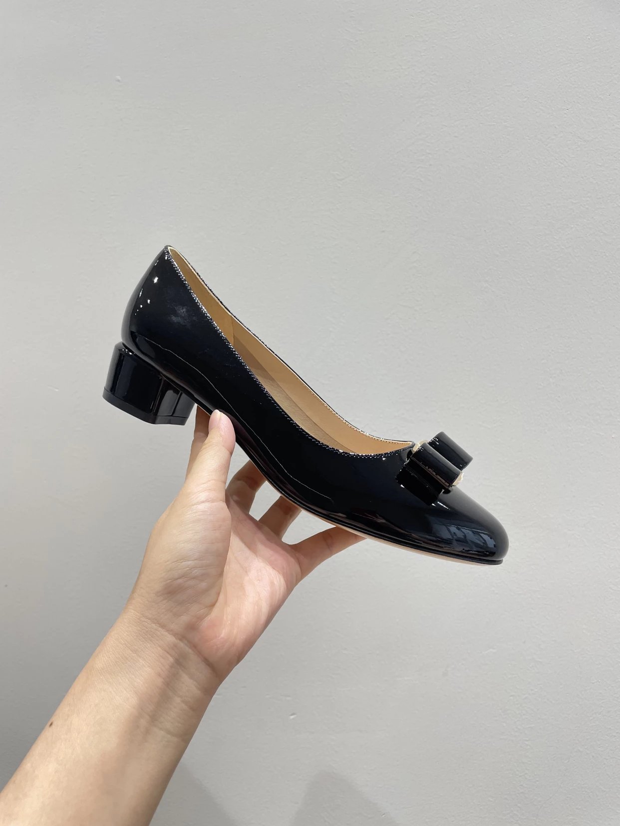 万年经典 独加私渠 Vara蝴蝶结皮扣中跟单鞋 软漆皮单鞋