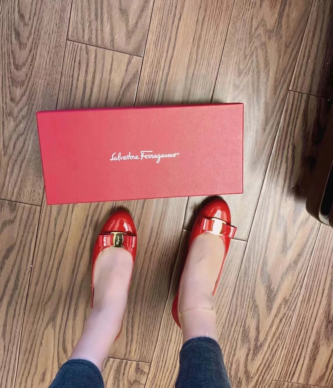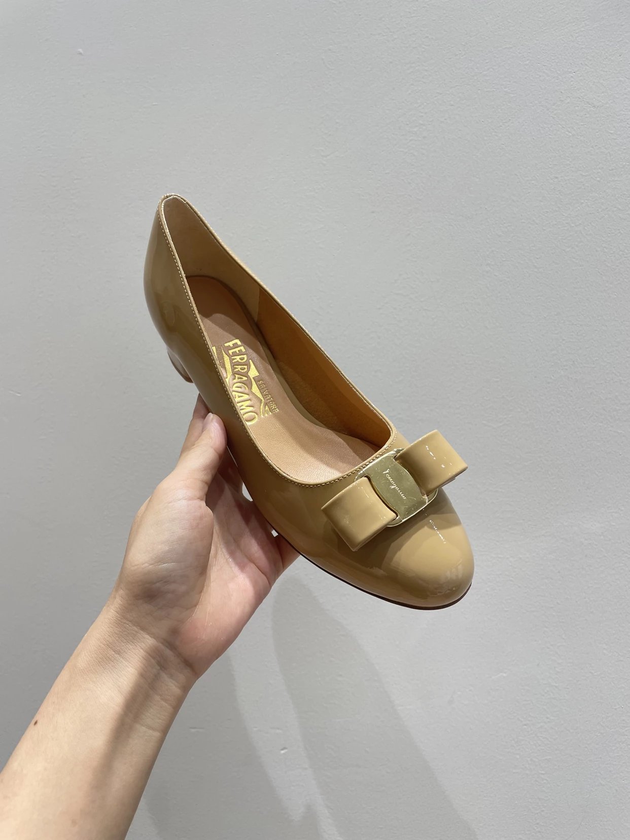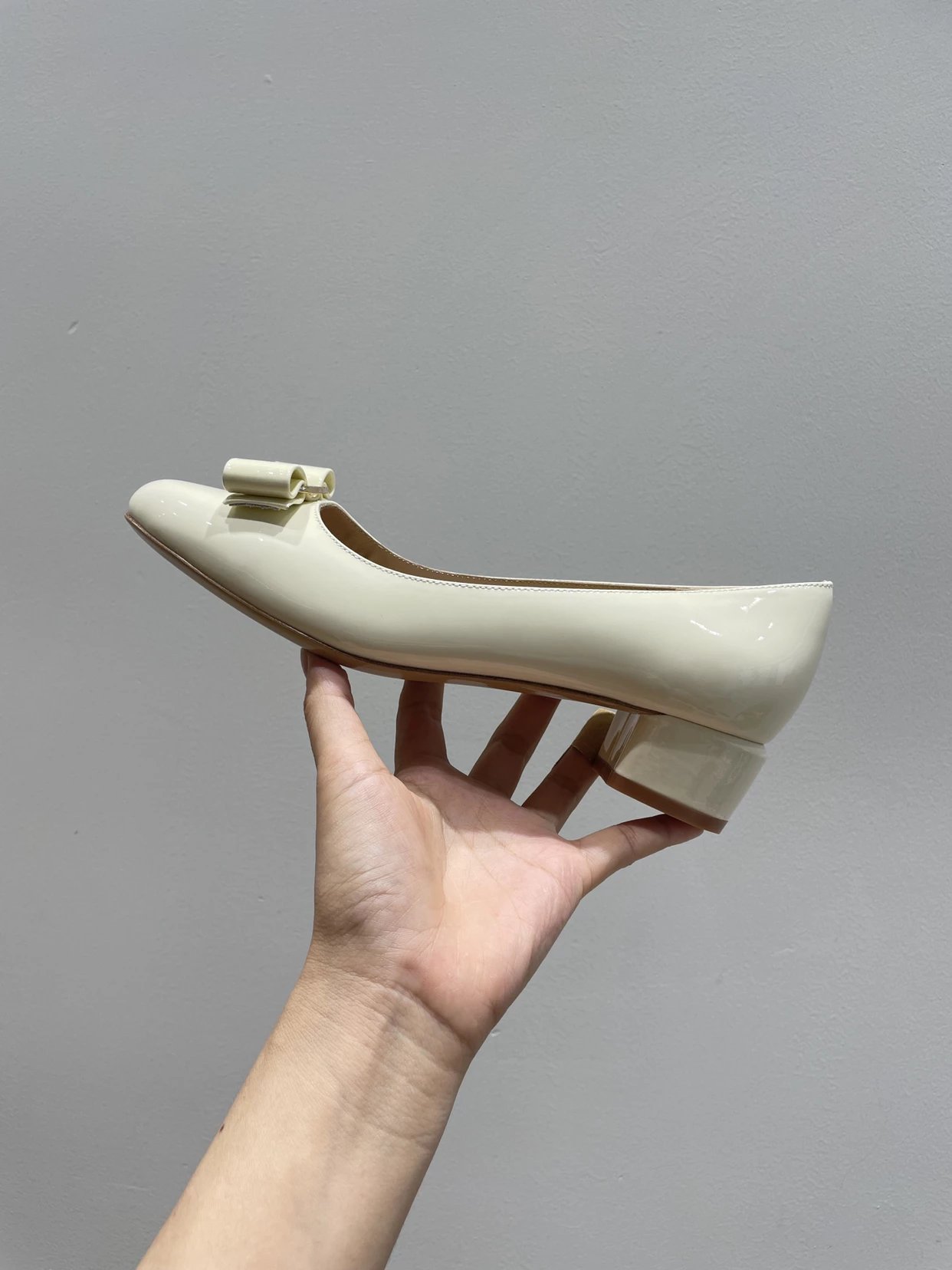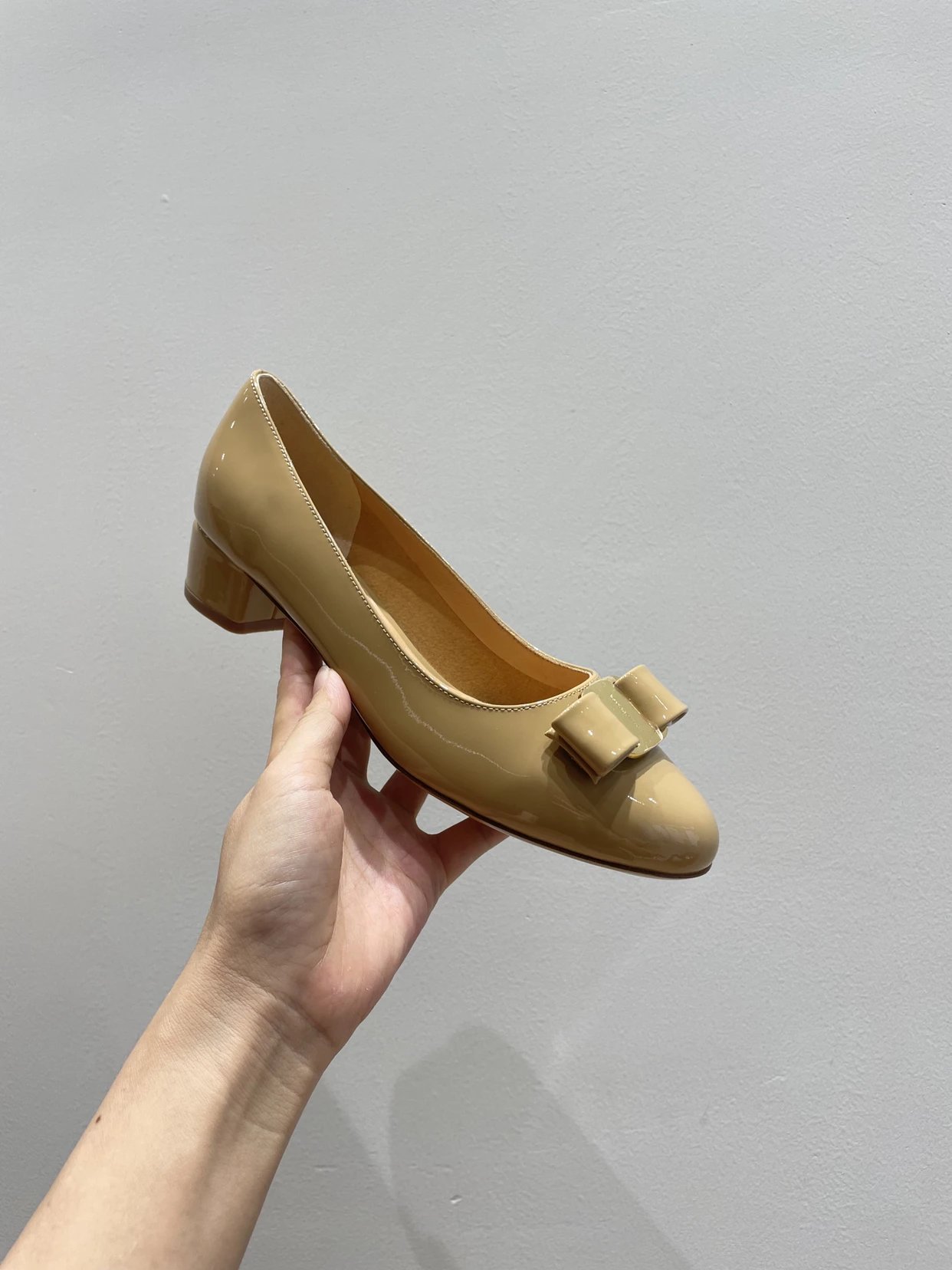 万年经典 独加私渠 Vara蝴蝶结皮扣中跟单鞋 软漆皮单鞋