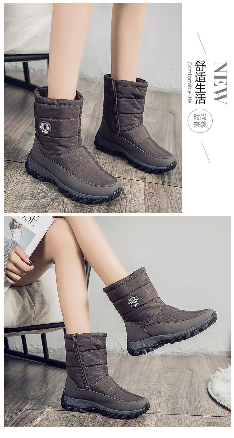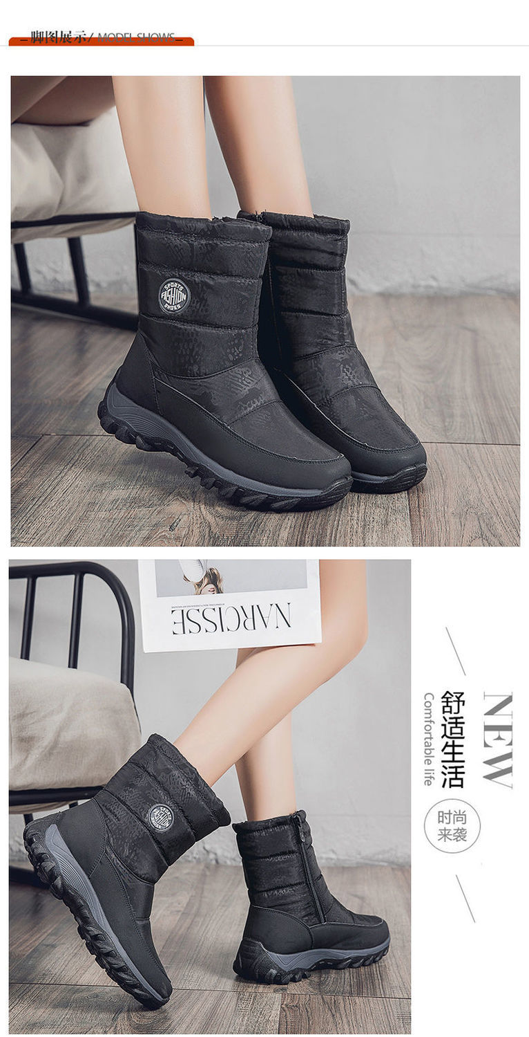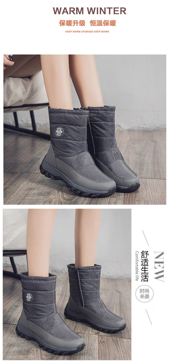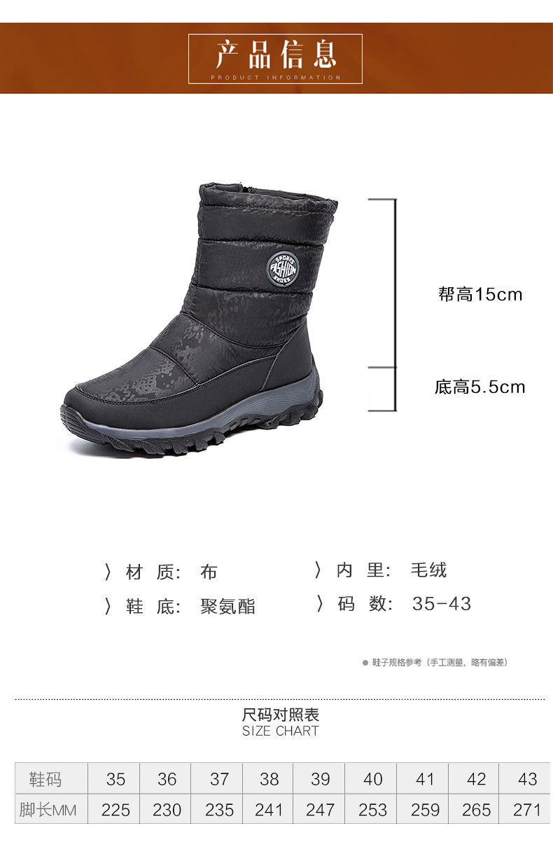冬季保暖加绒雪地靴平跟中筒棉鞋防滑平跟大码时尚舒适防水淑女靴