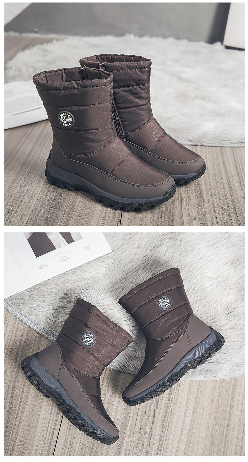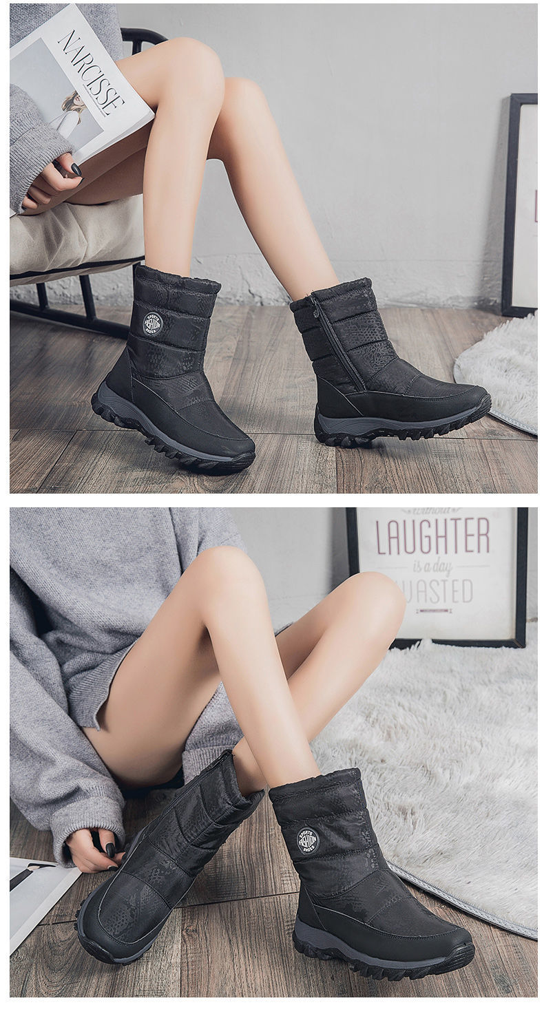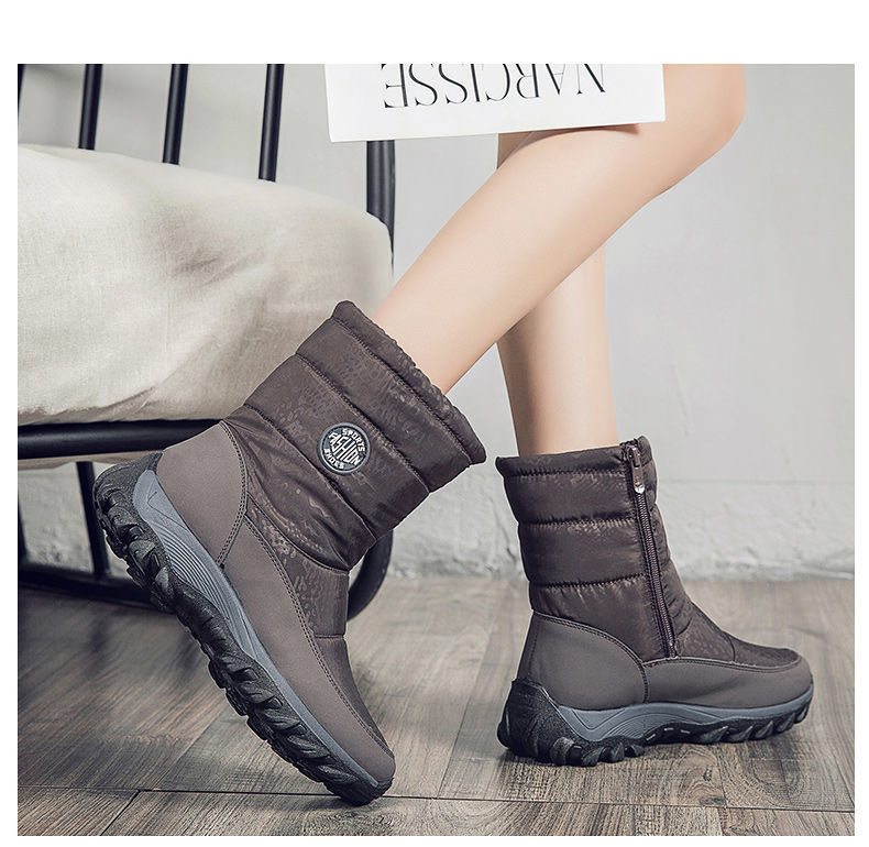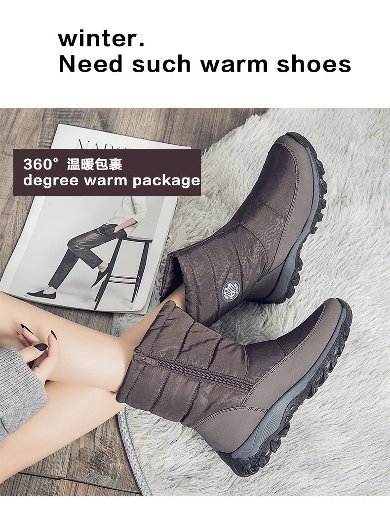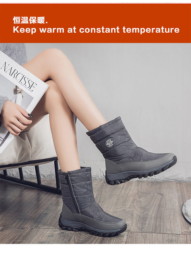 冬季保暖加绒雪地靴平跟中筒棉鞋防滑平跟大码时尚舒适防水淑女靴