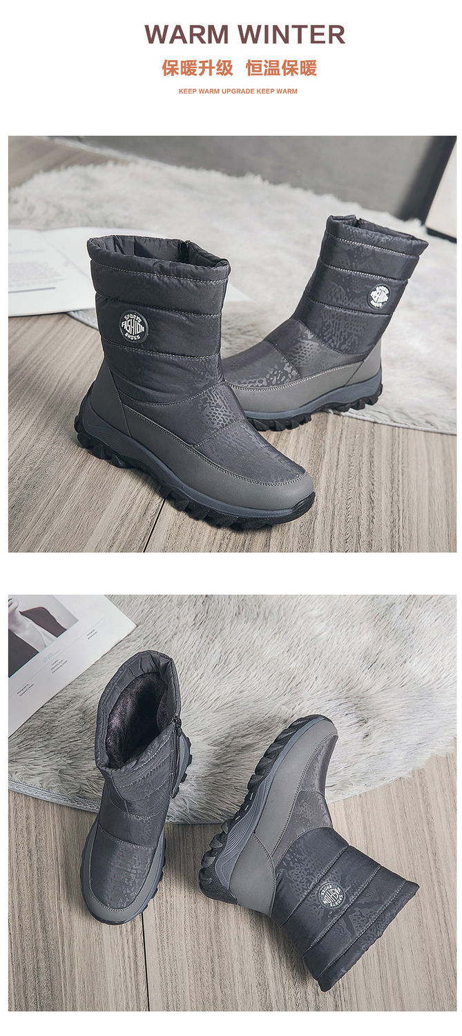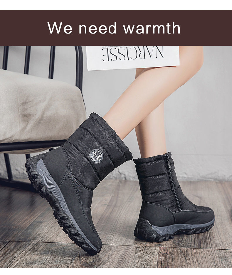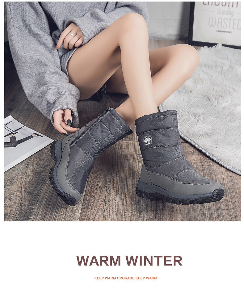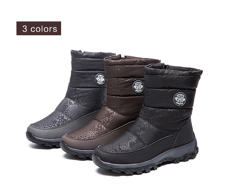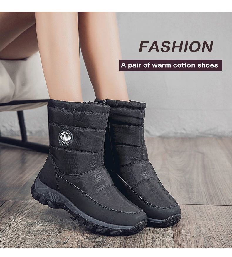 冬季保暖加绒雪地靴平跟中筒棉鞋防滑平跟大码时尚舒适防水淑女靴