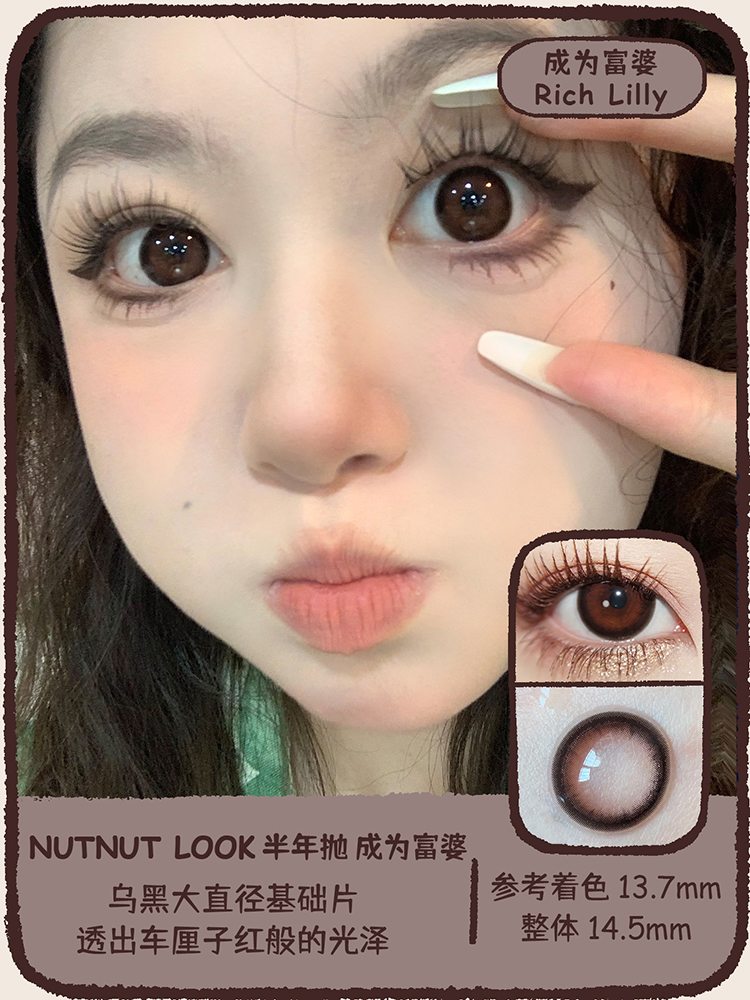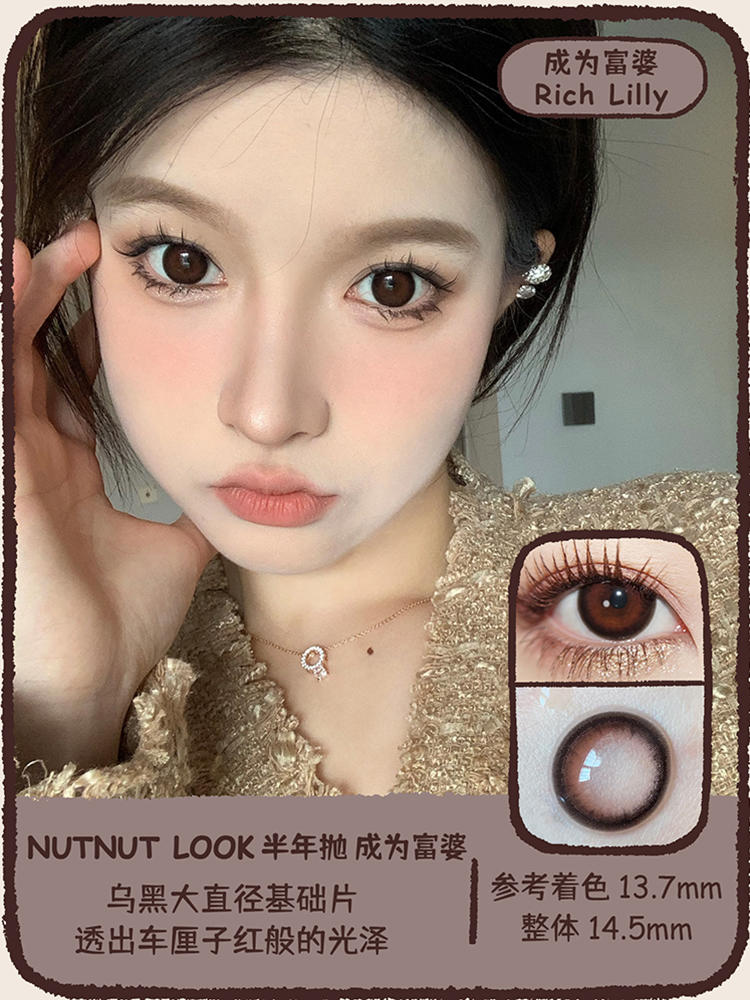 坚果力NUTNUTLOOK成为富婆 14.5mm大直径美瞳隐形眼镜 白狮旗下自营品牌赠送伴侣盒 半年抛2片