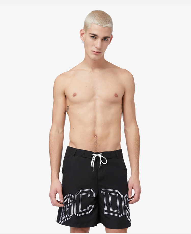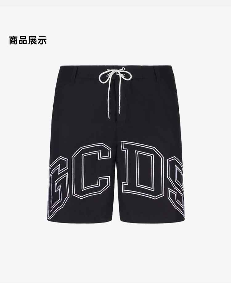 GCDS 男士字母徽标刺绣棉质休闲短裤 黑色 A1CM3905TC599