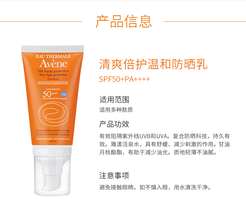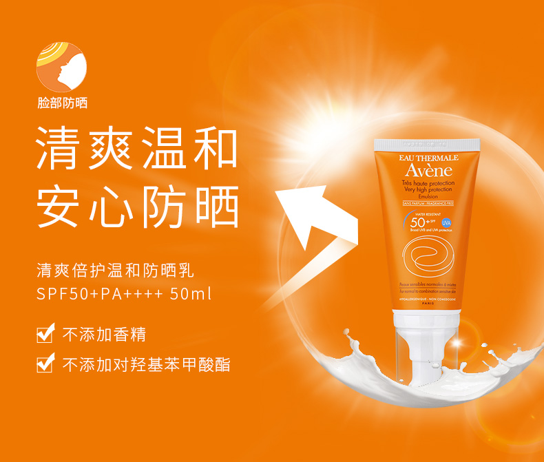 雅漾清爽倍护温和防晒乳SPF50+PA++++50ml防晒隔离紫外线乳液JPY带授权招加盟代理