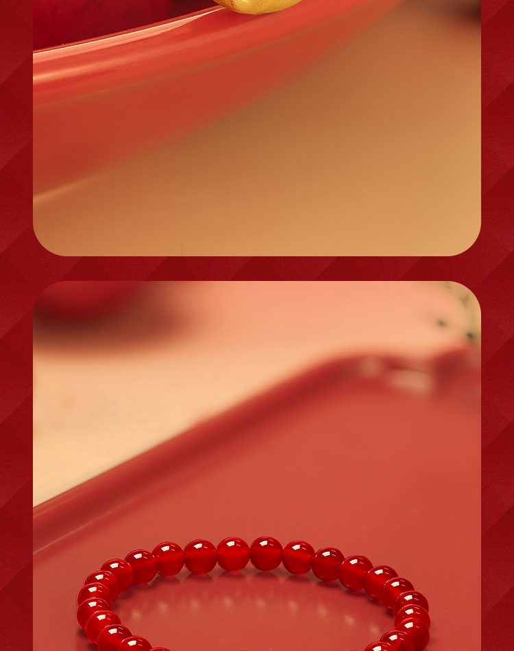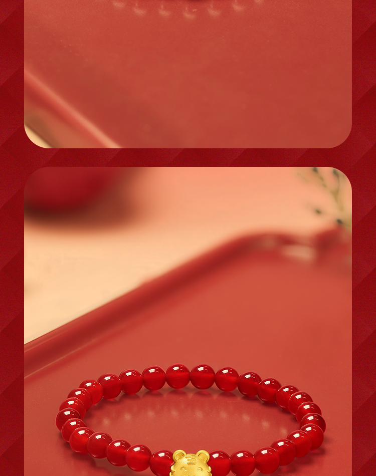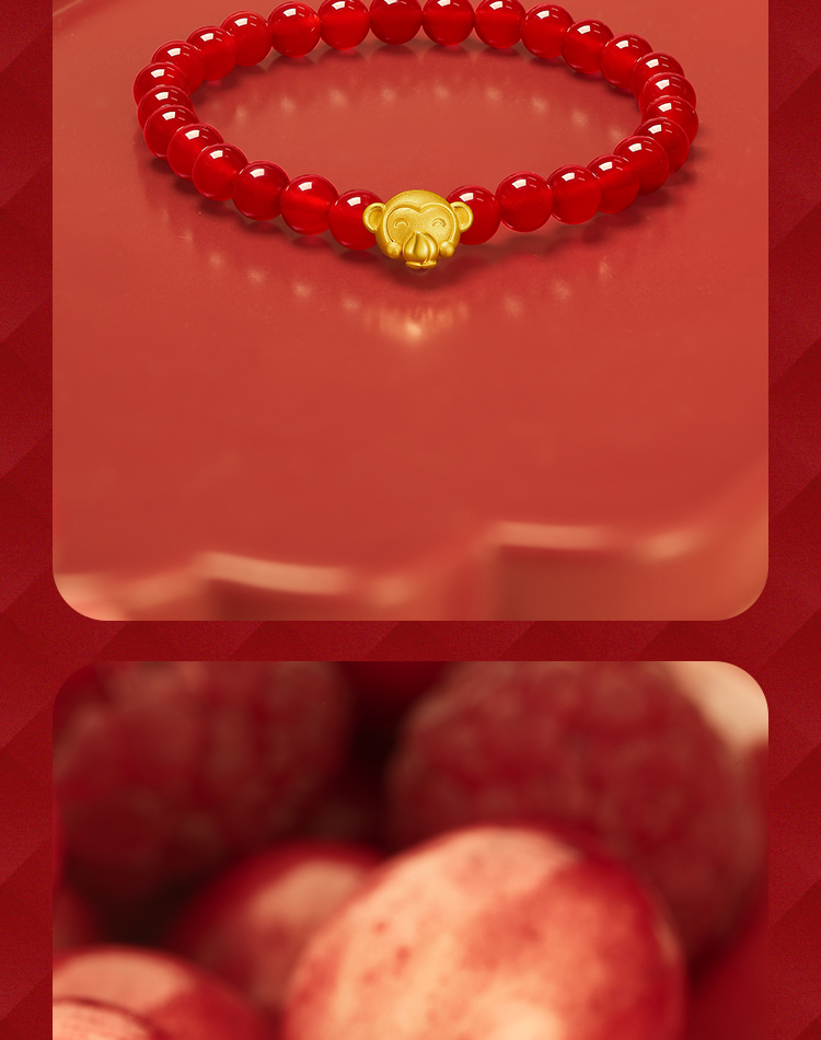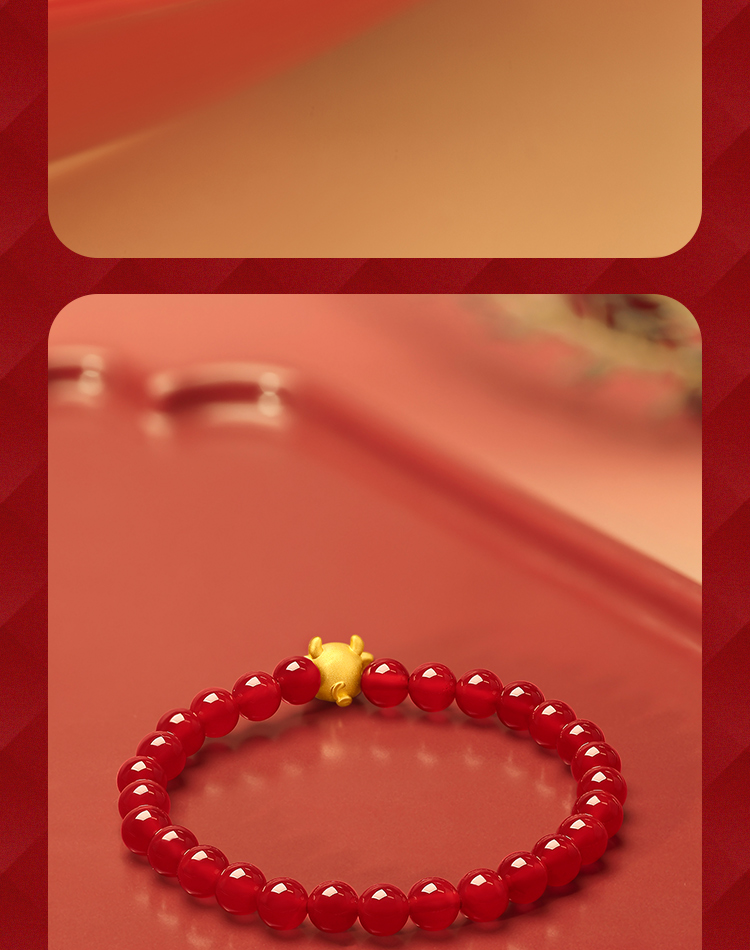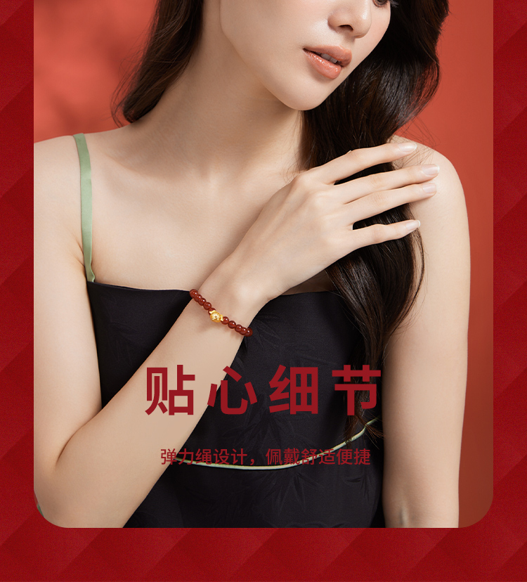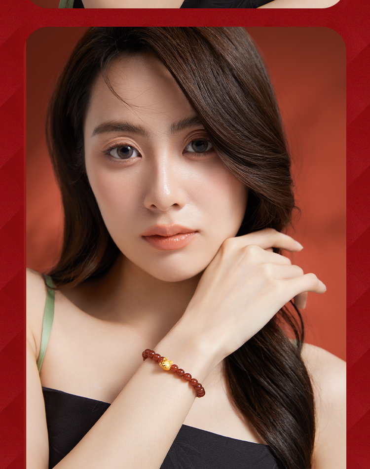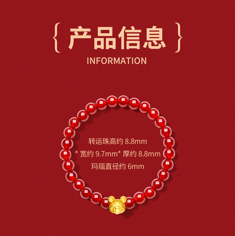 周六福珠宝黄金手链定价十二吉祥生肖兔年本命年玛瑙手串足金手饰