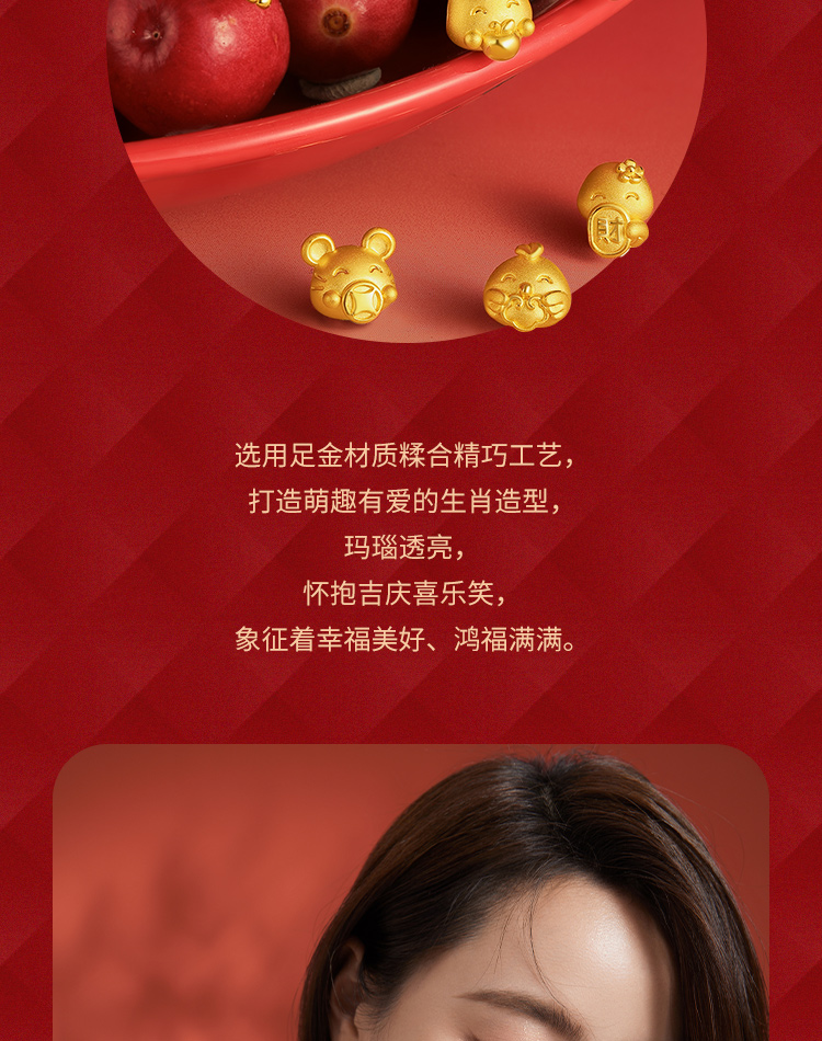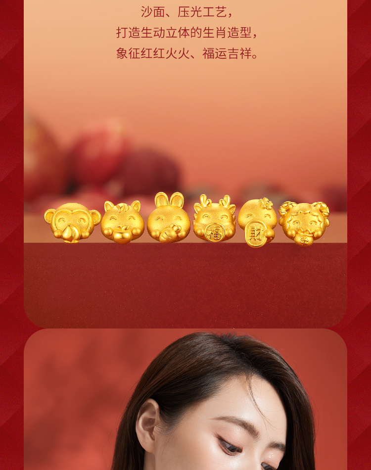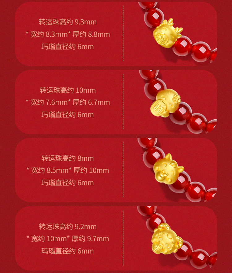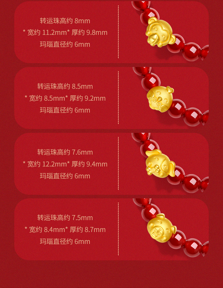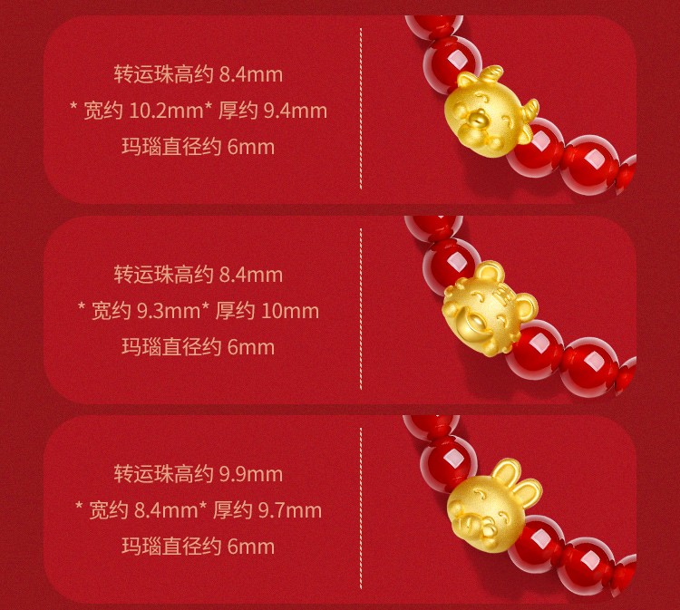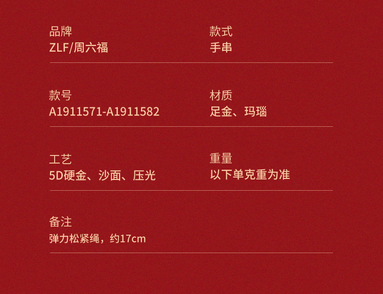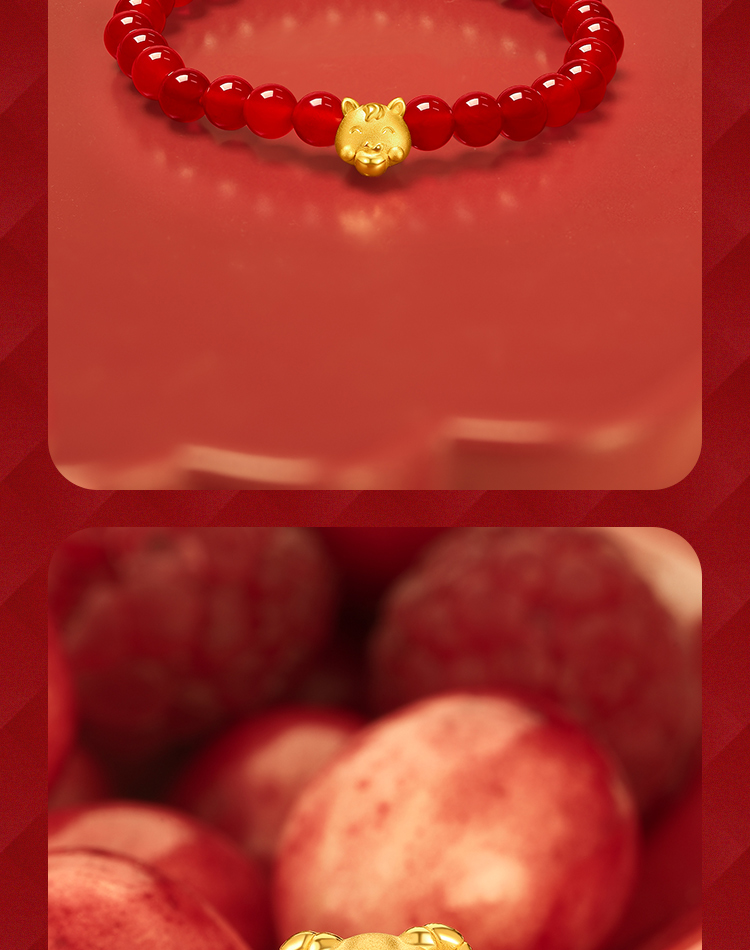 周六福珠宝黄金手链定价十二吉祥生肖兔年本命年玛瑙手串足金手饰