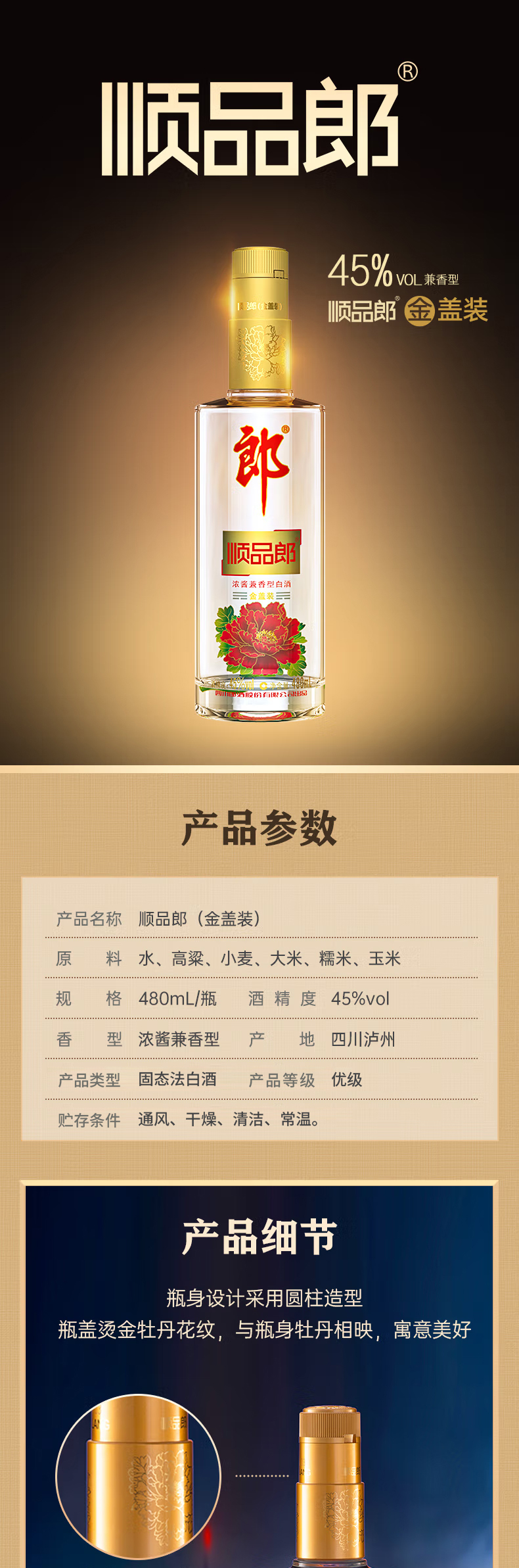【浓酱兼香型】郎牌顺品郎480ml 金盖装 45度