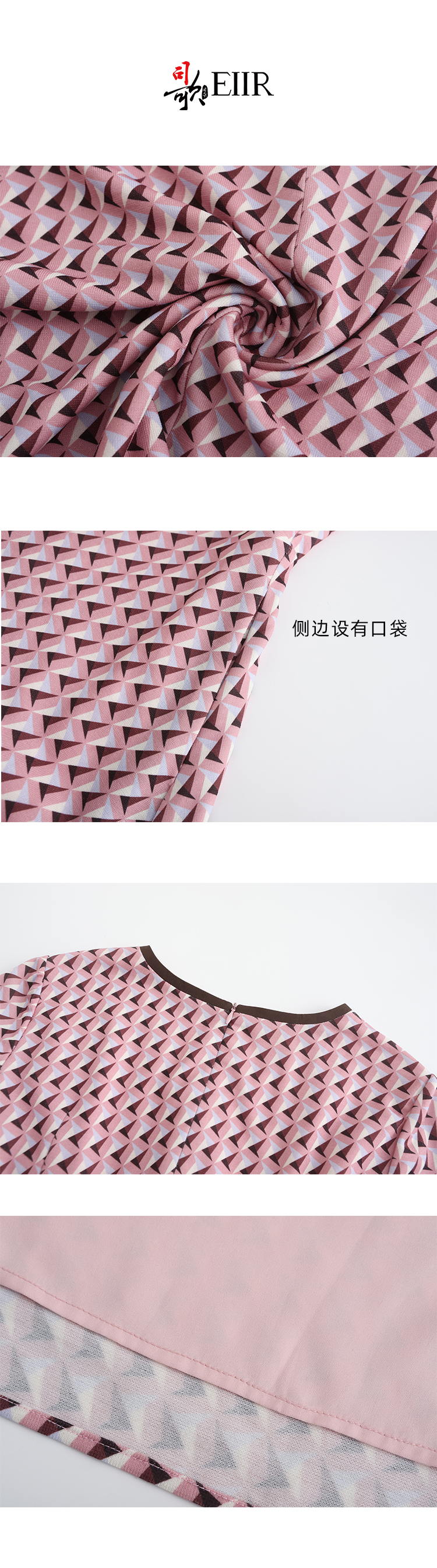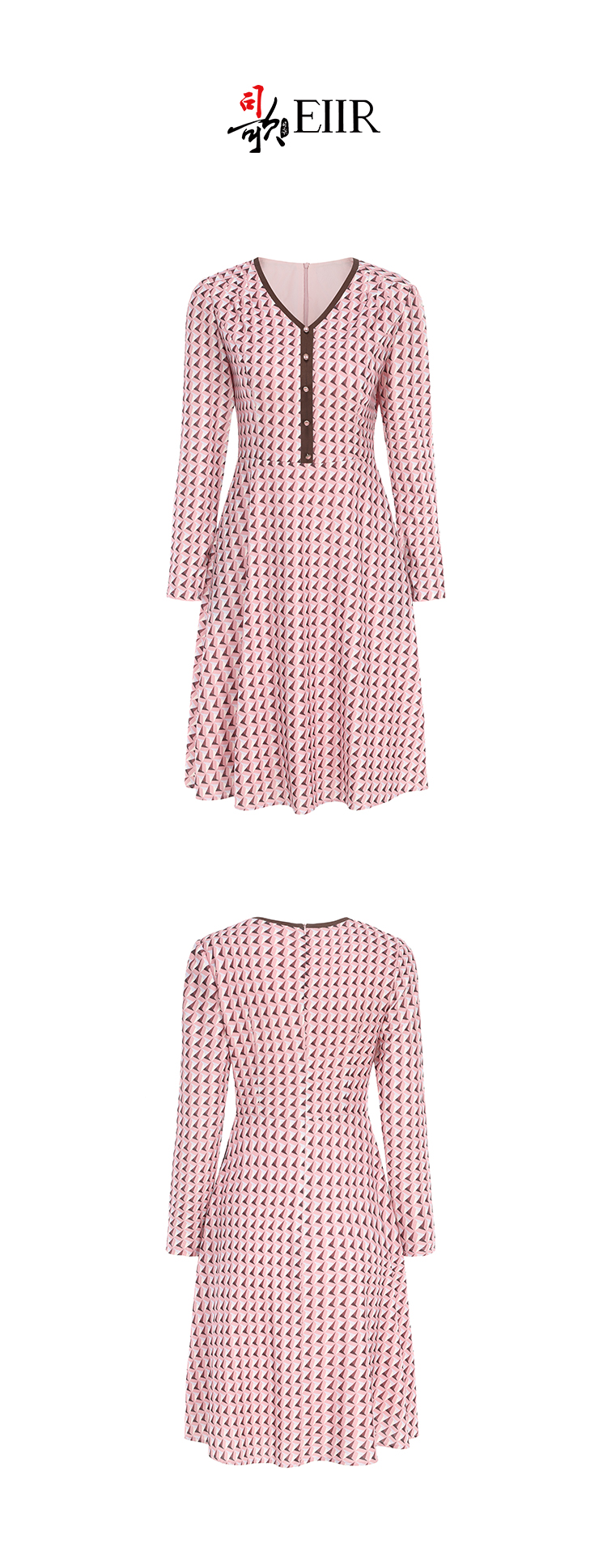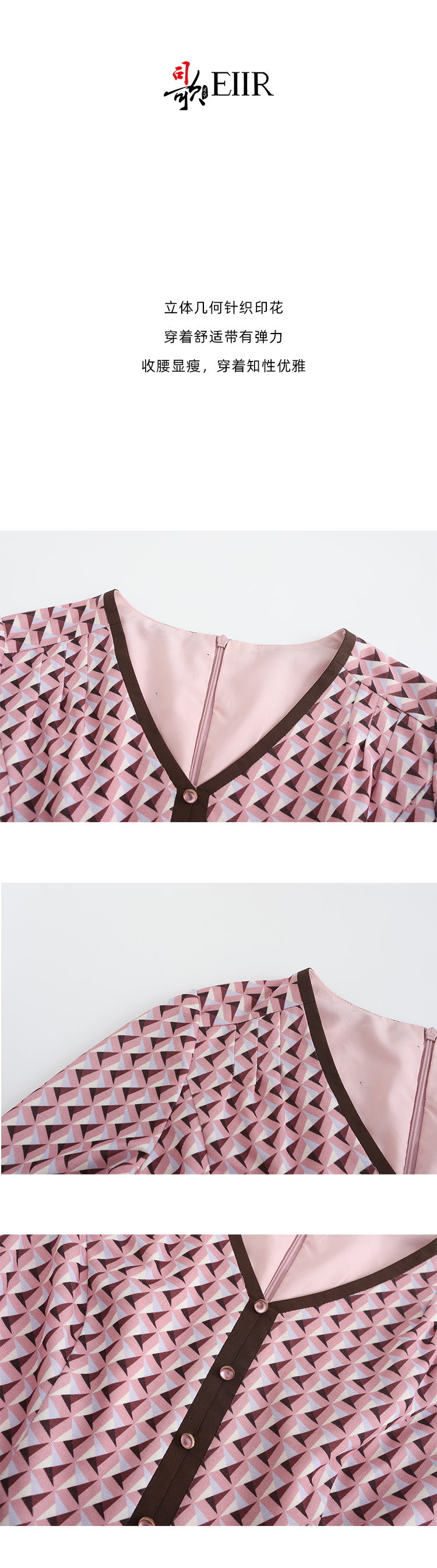 司歌V领端庄几何连衣裙印花气质优雅A881356