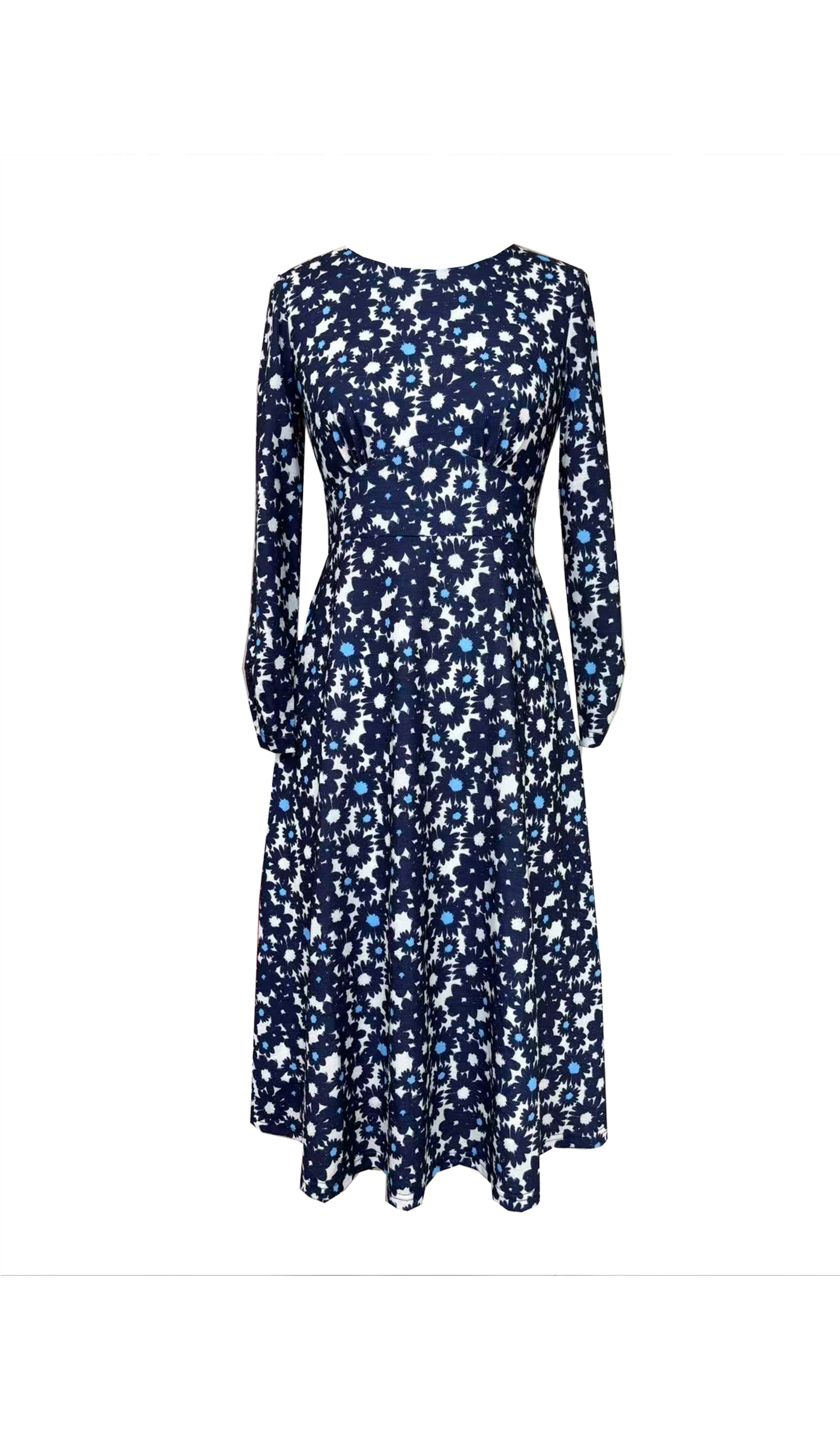 司歌印花灯芯绒连衣裙长袖显瘦端庄气质A881205