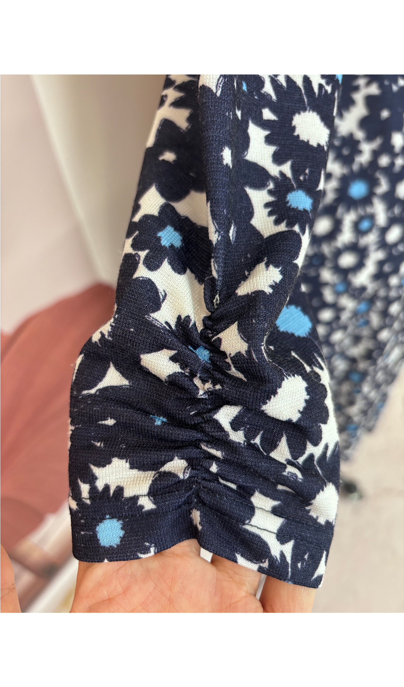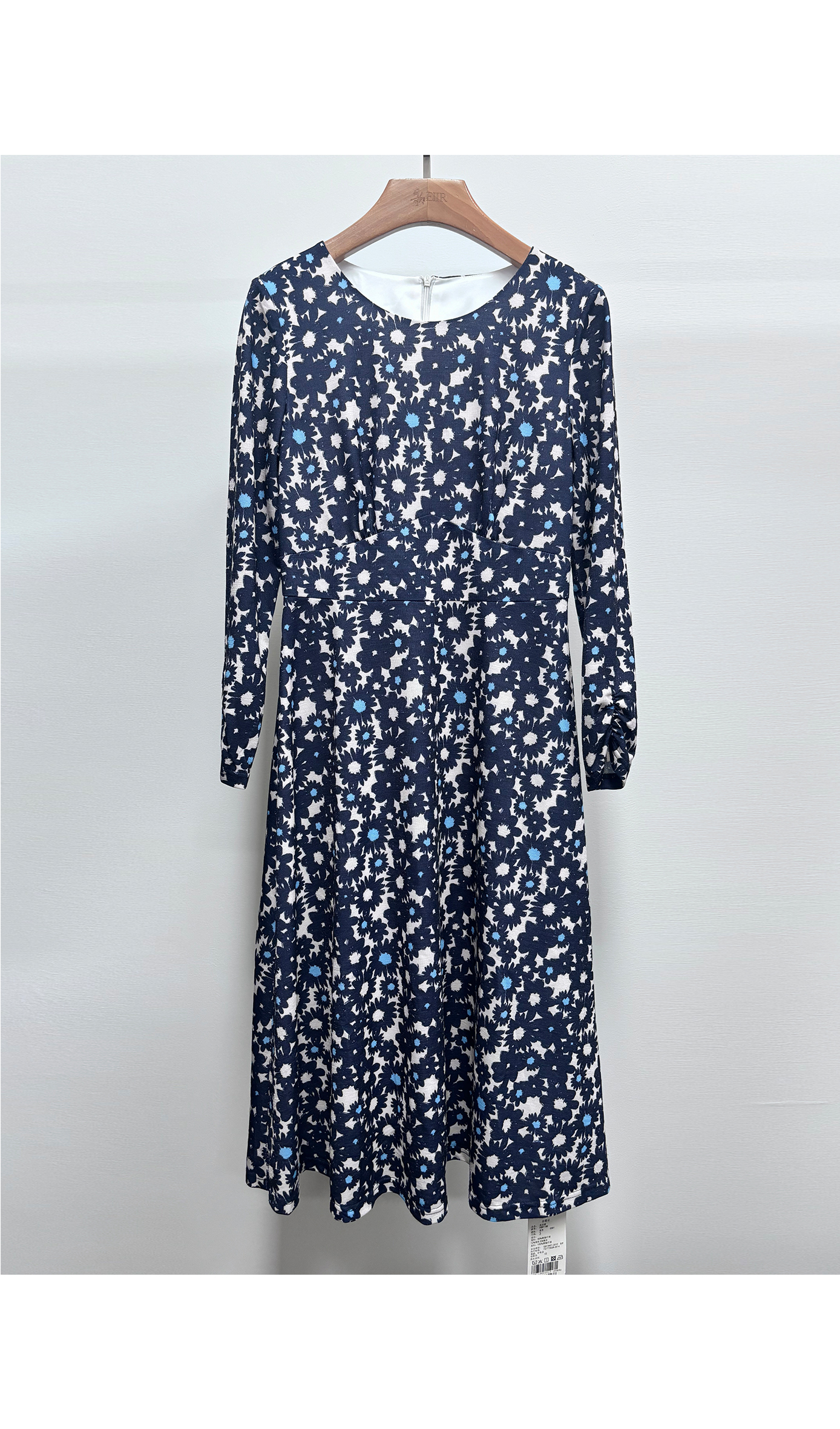 司歌针织弹力圆领长袖连衣裙收腰印花秋冬裙A881196
