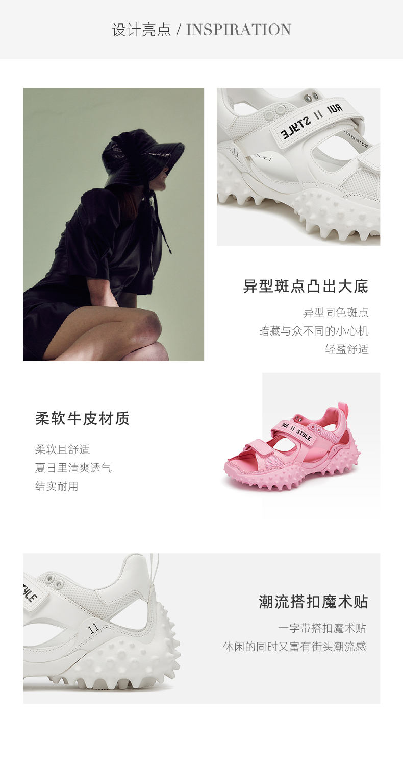 westory女鞋2021夏季新款漆皮仙女风运动凉鞋镂空沙滩W21BG61011