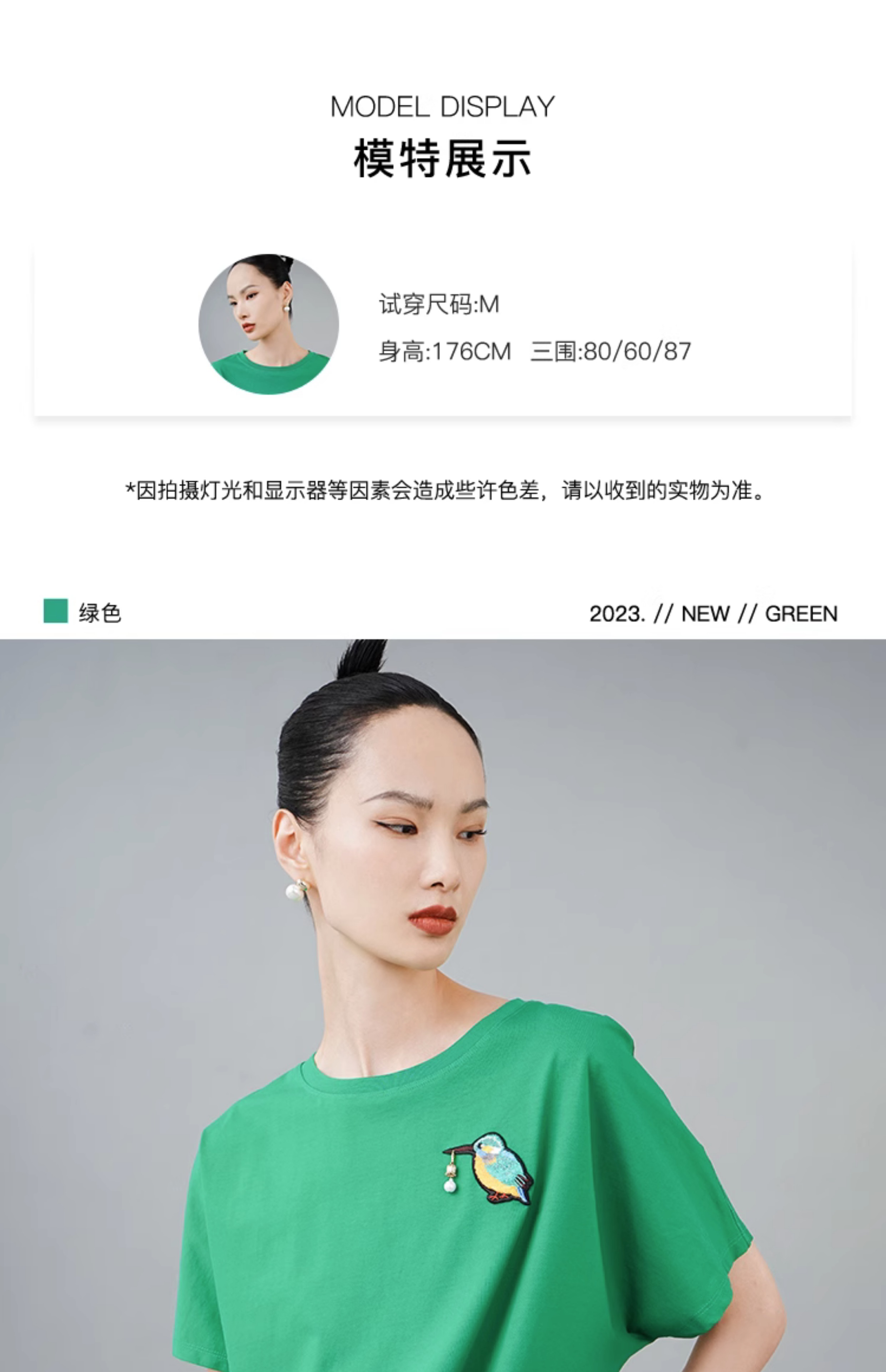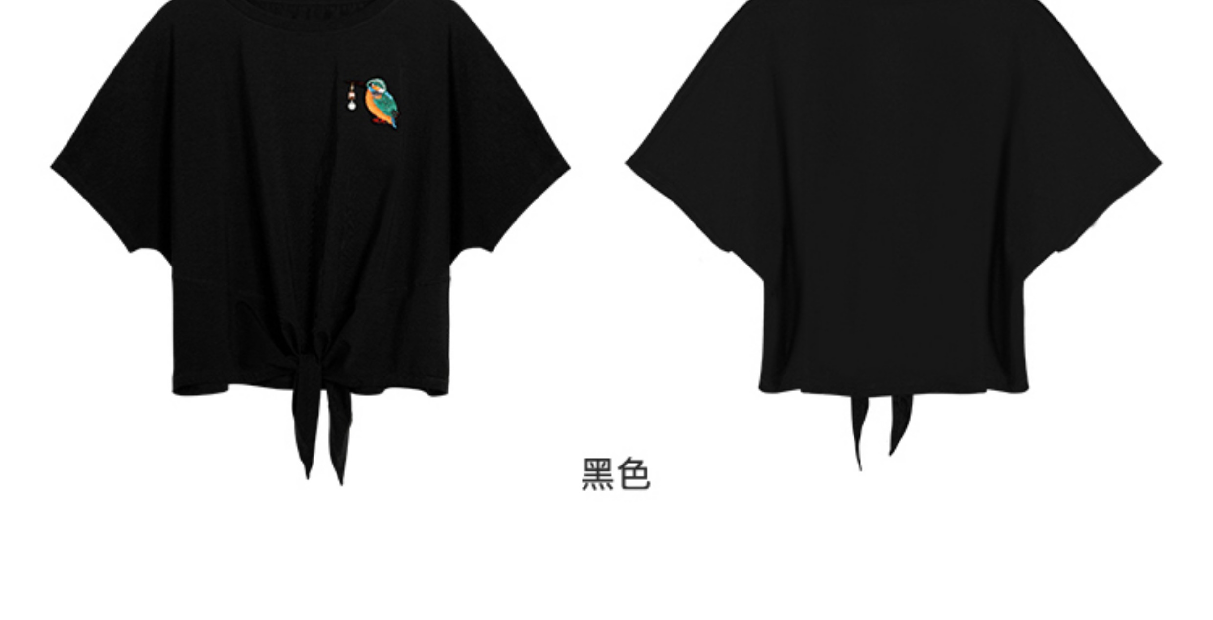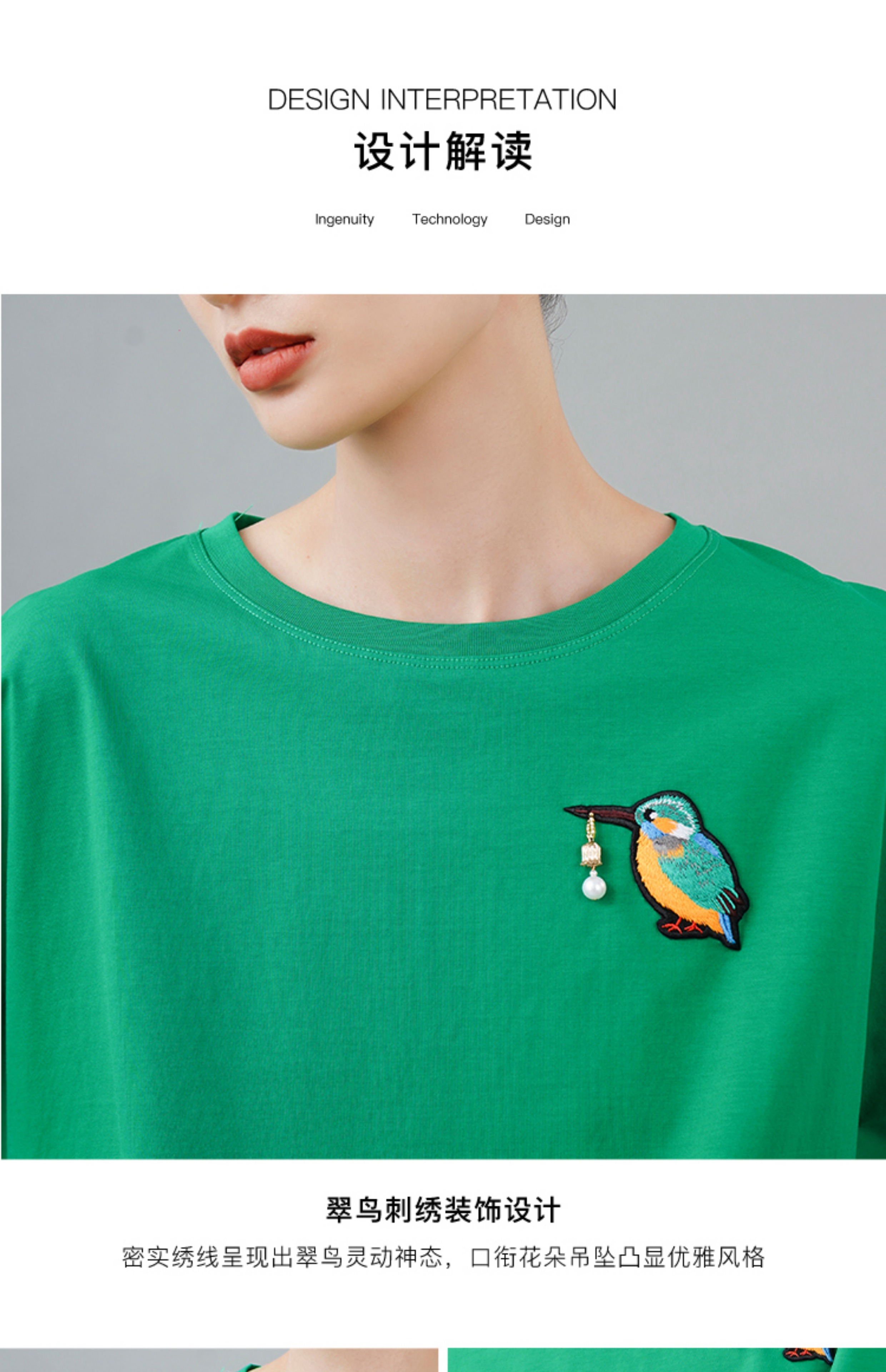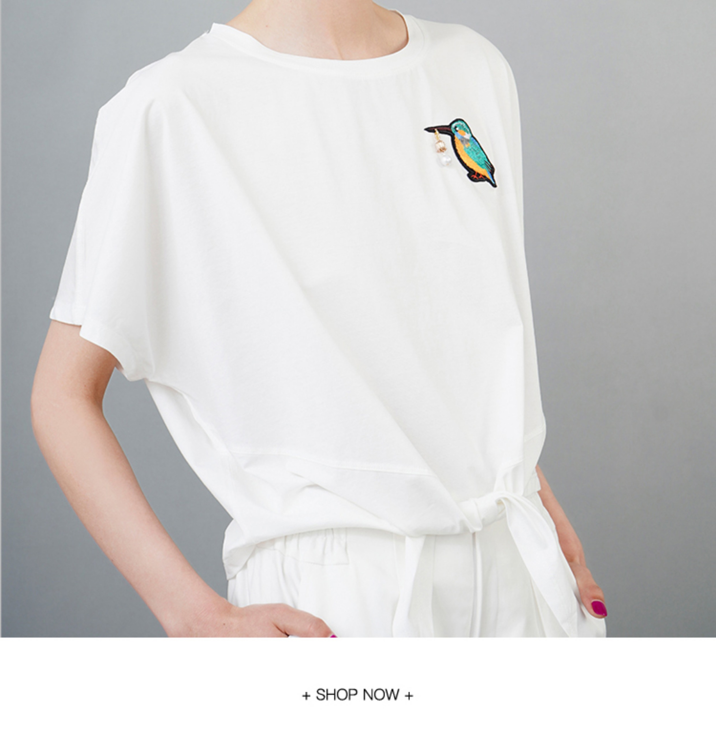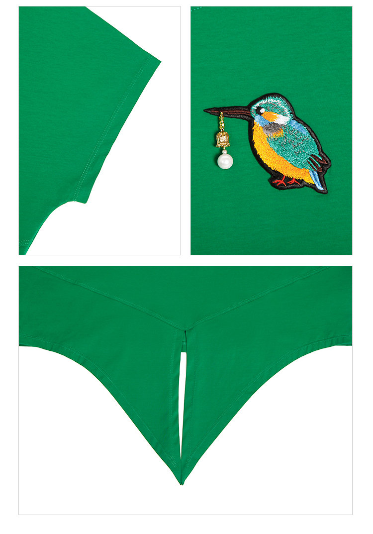 RSG郭培成衣品牌国风翠鸟刺绣下摆打结宽松T恤