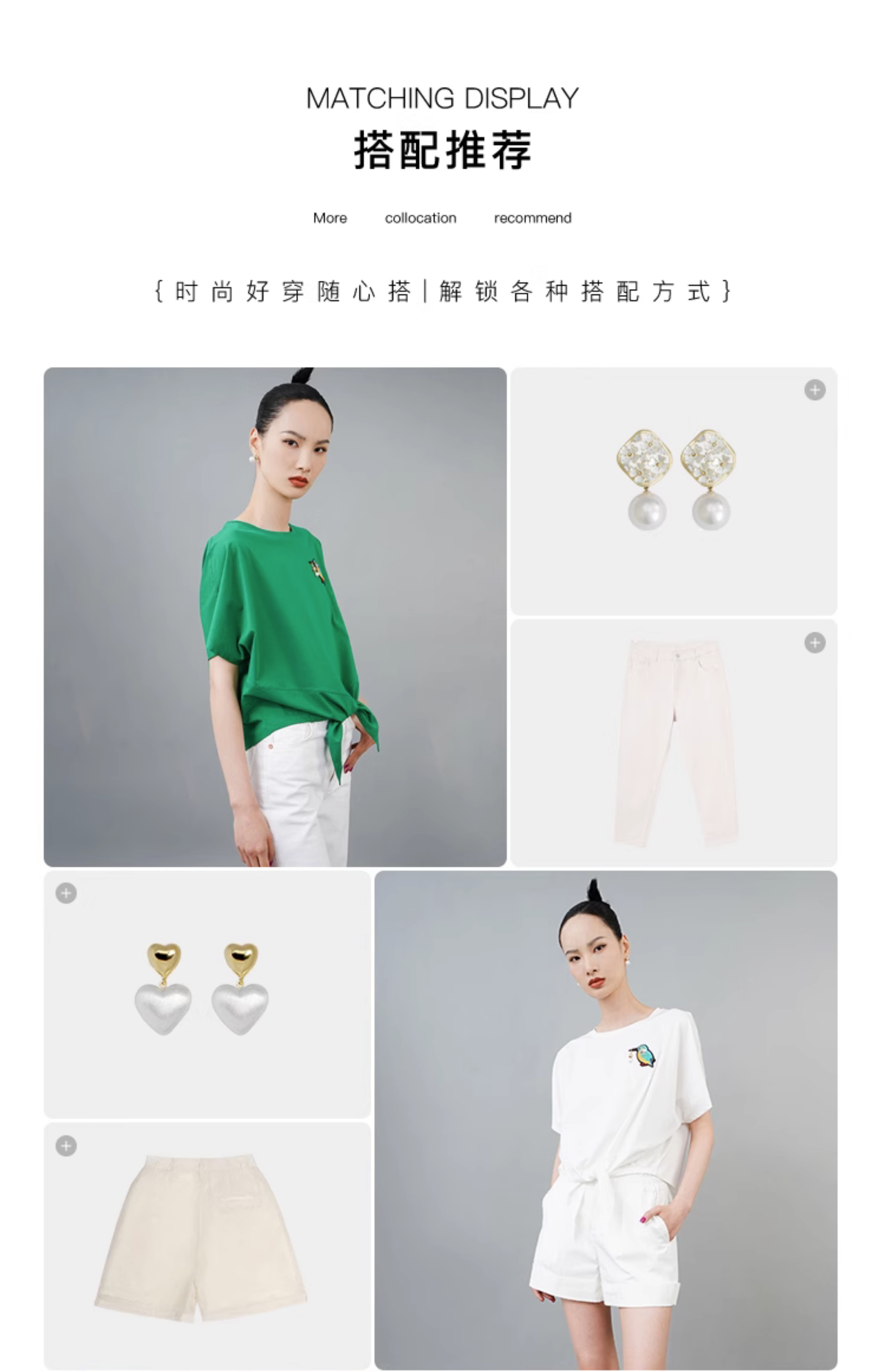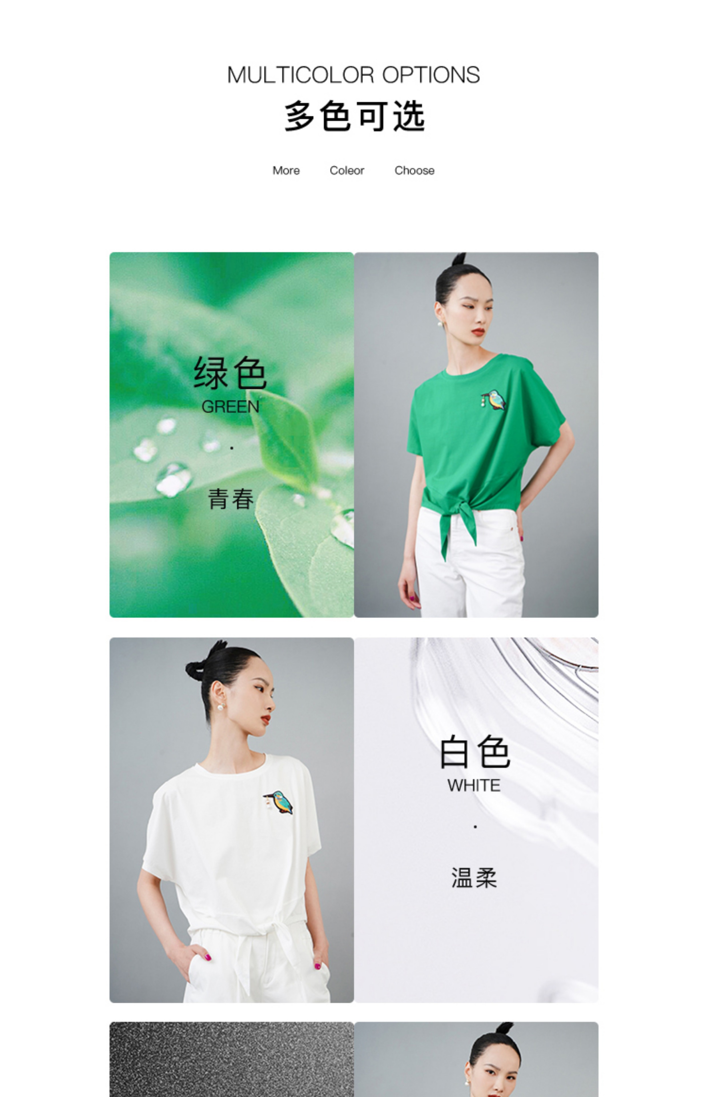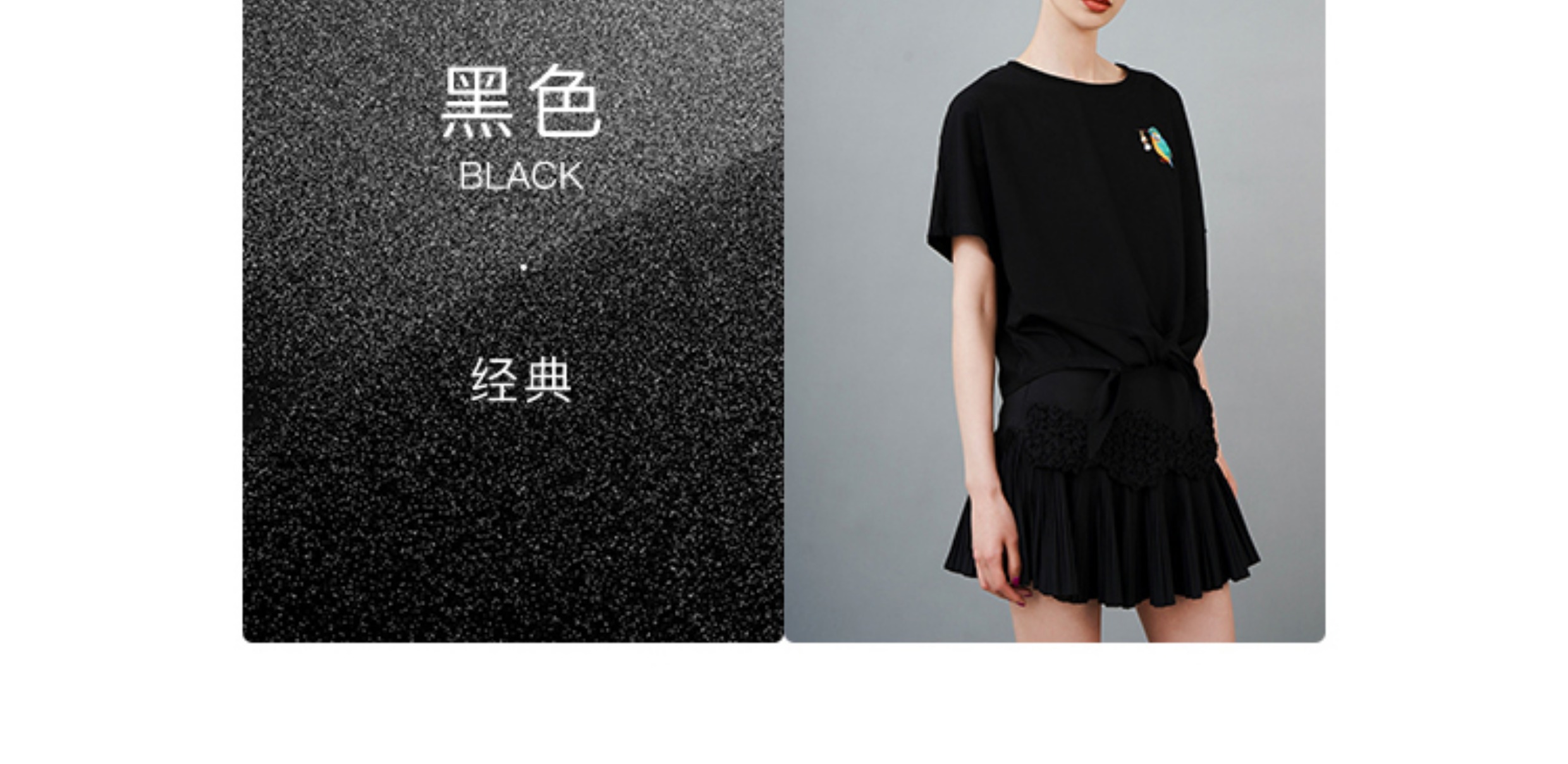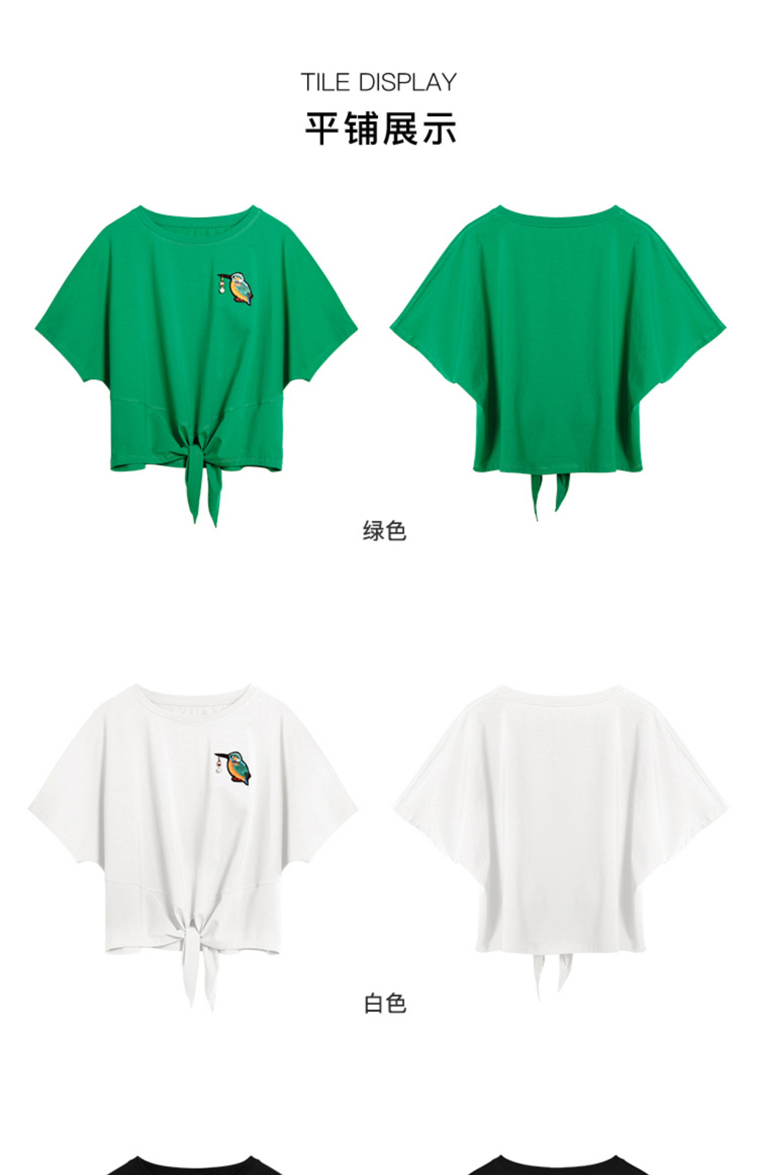 RSG郭培成衣品牌国风翠鸟刺绣下摆打结宽松T恤