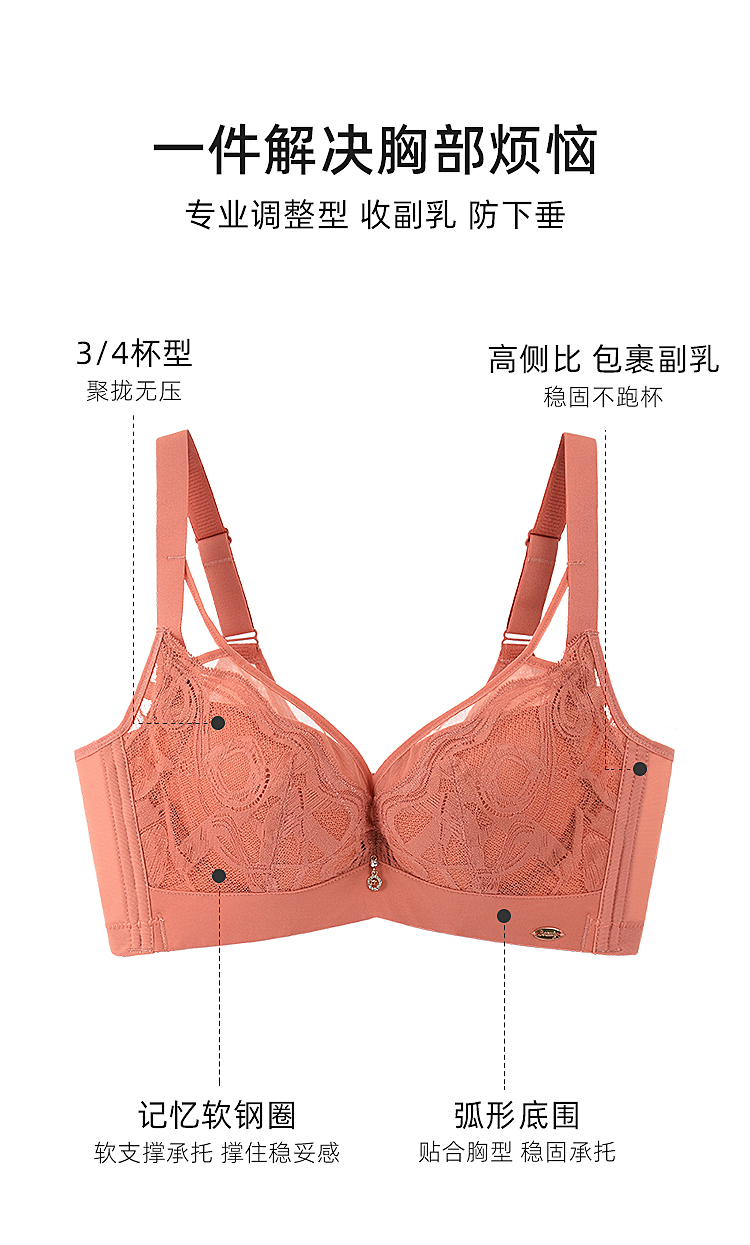 新款调整型文胸中厚款3/4杯型莫代尔内里记忆软圈收副乳女款内衣WJ2308-2
