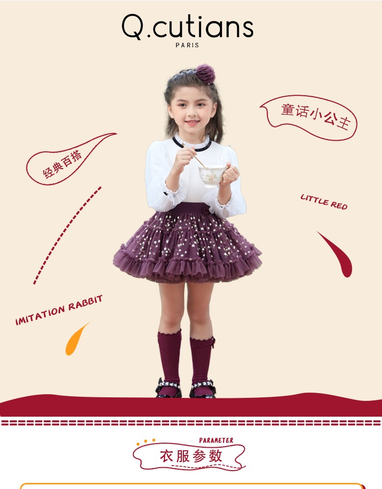 泡泡长袖 | 法国Q.cutians 泡泡长袖女孩舞蹈演出服装礼物 生日礼物
