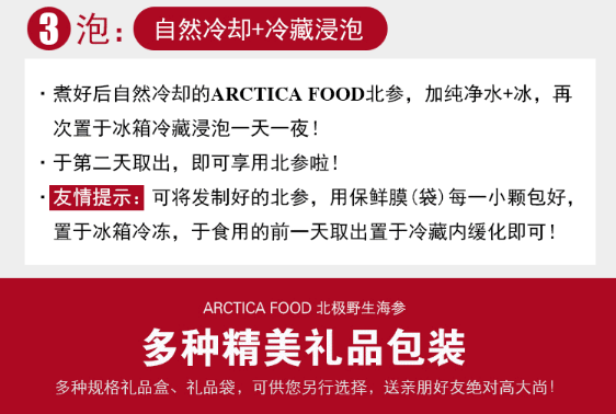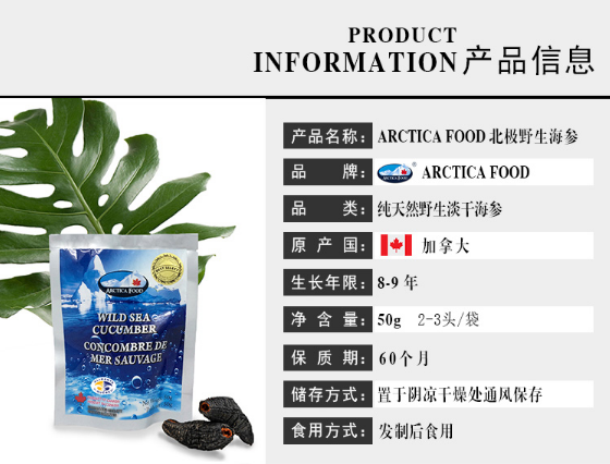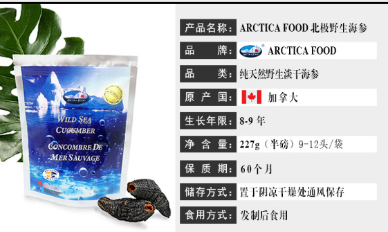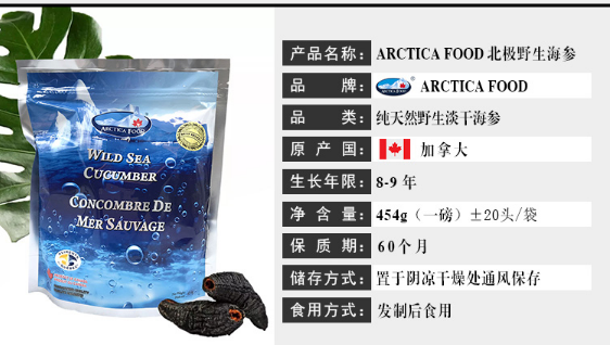 ARCTICA FOOD北极食品野生海参大金标454g 18头左右