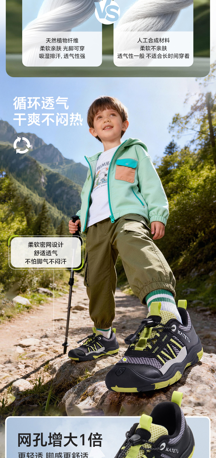 卡特兔童鞋户外儿童运动鞋2026年春季新品溯溪鞋防滑透气登山鞋