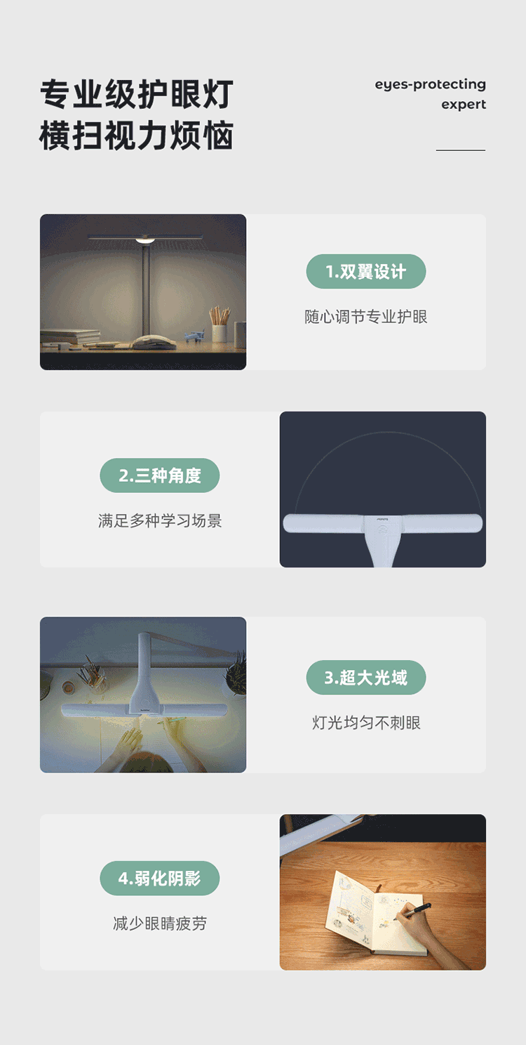 2平米护眼灯 蜻蜓灯 减蓝光无频闪触摸调光儿童学生学习写字阅读台灯 蜻蜓灯