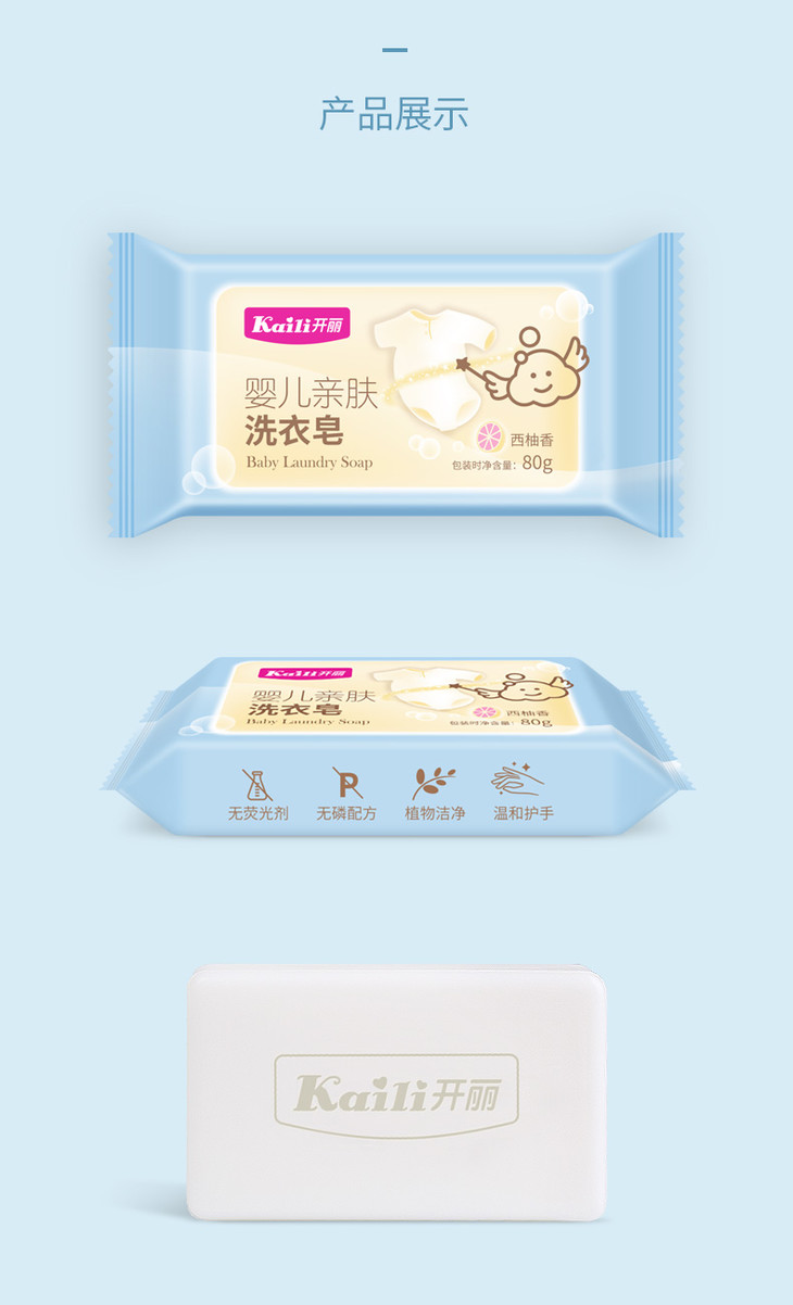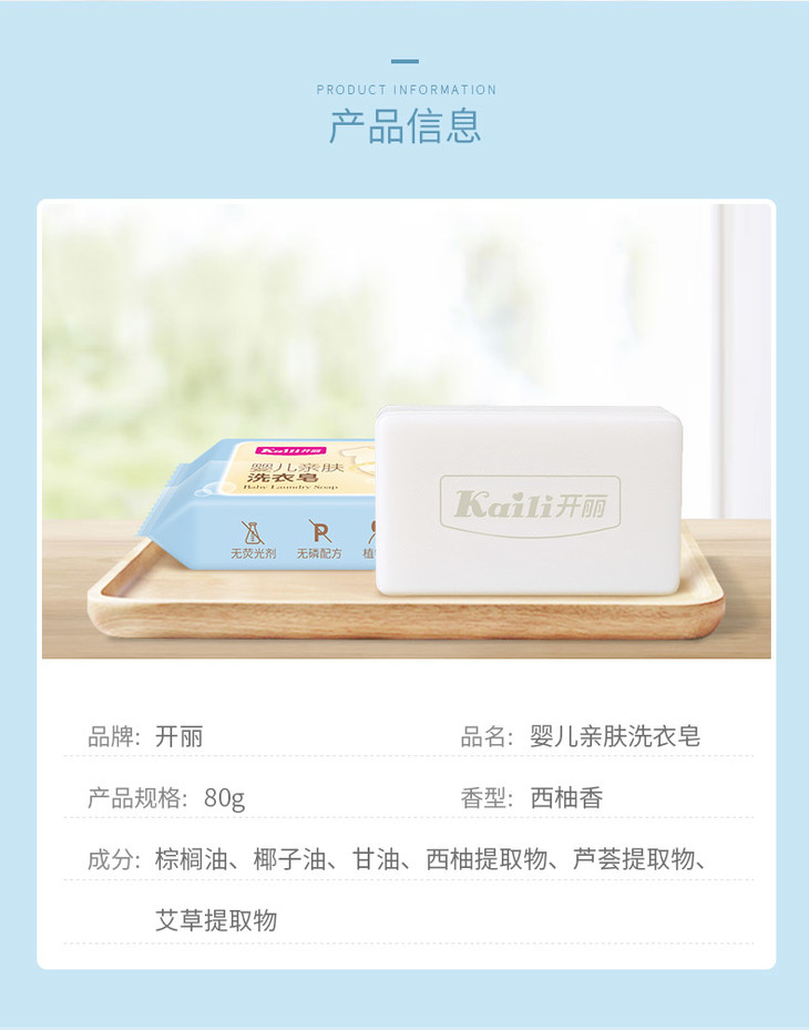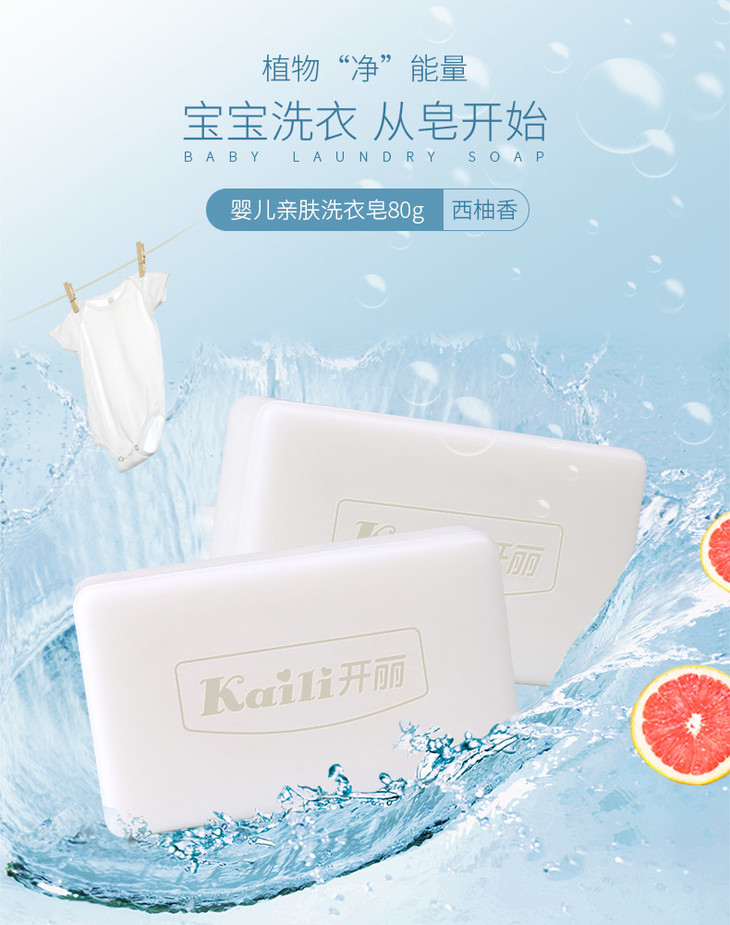 【开丽】婴儿亲肤洗衣皂80g(8块装)西柚味植物皂